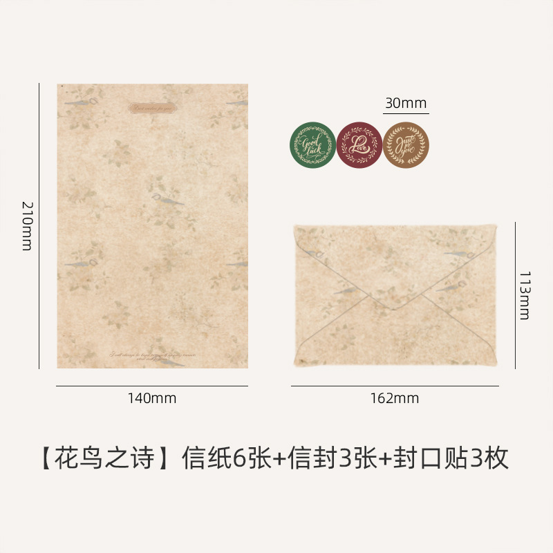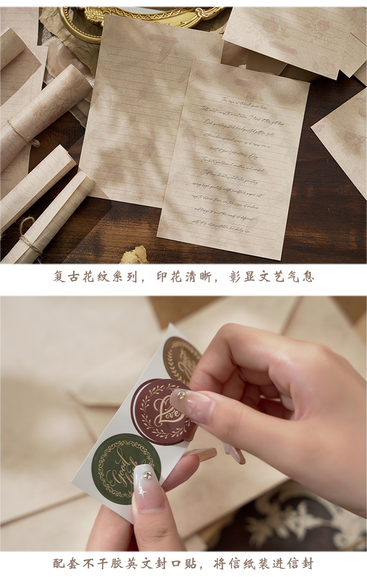 빈티지 꽃 레터 헤드 편지 종이 엽서 봉투 인감 스티커 표현 사랑 편지 쓰기 소가죽 빈티지 아트 세트