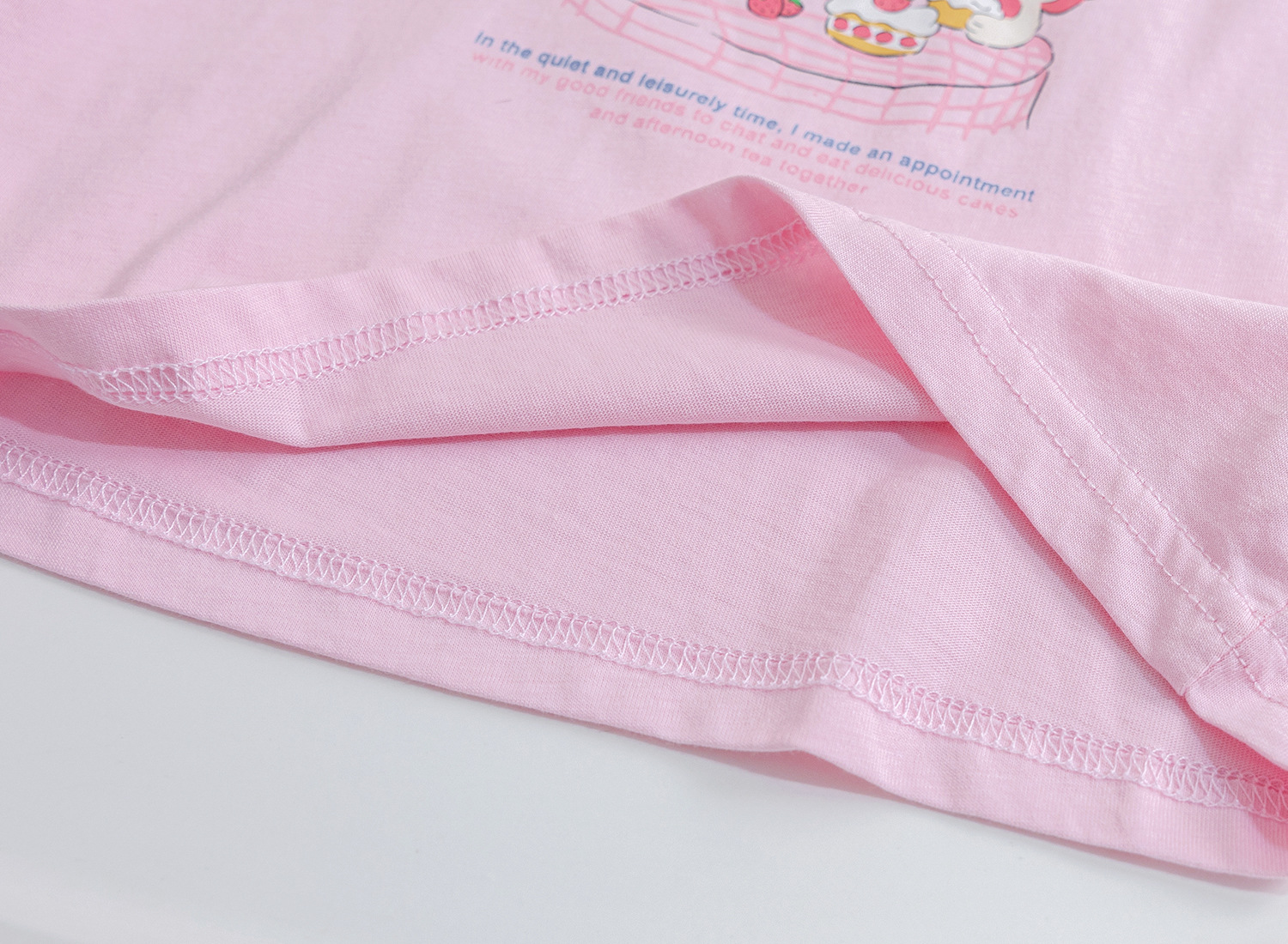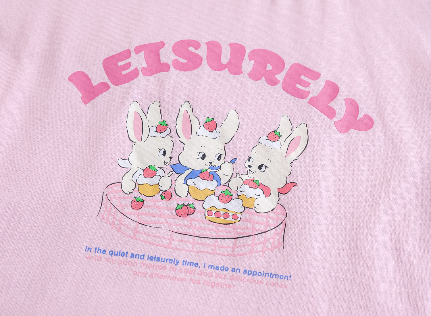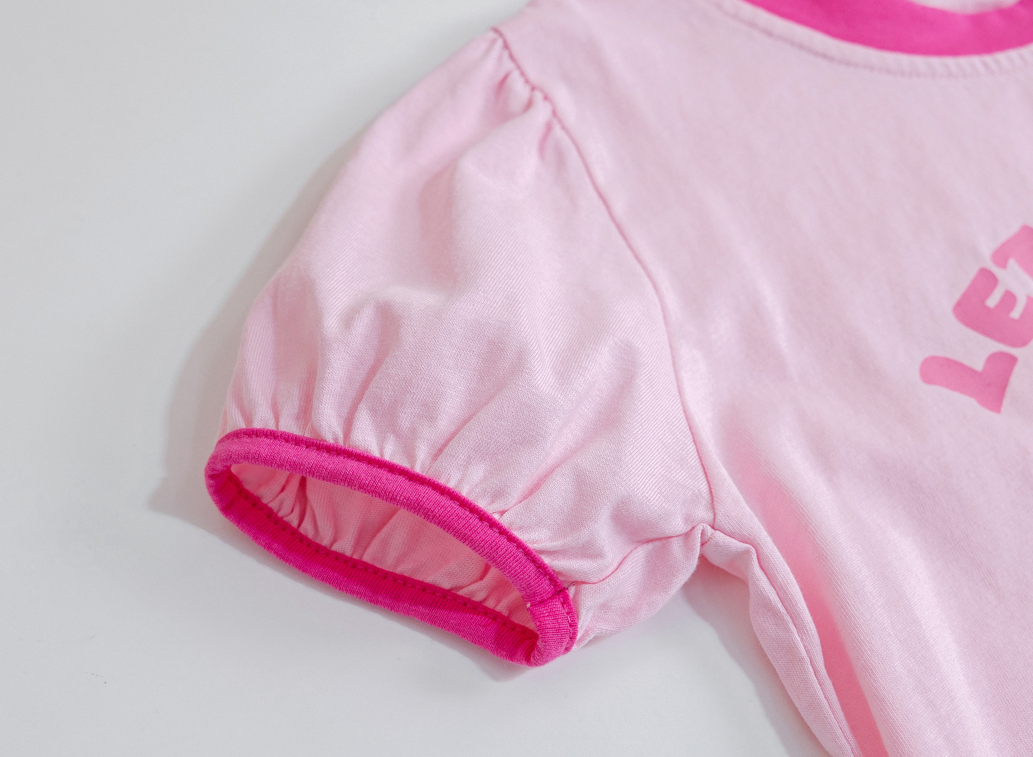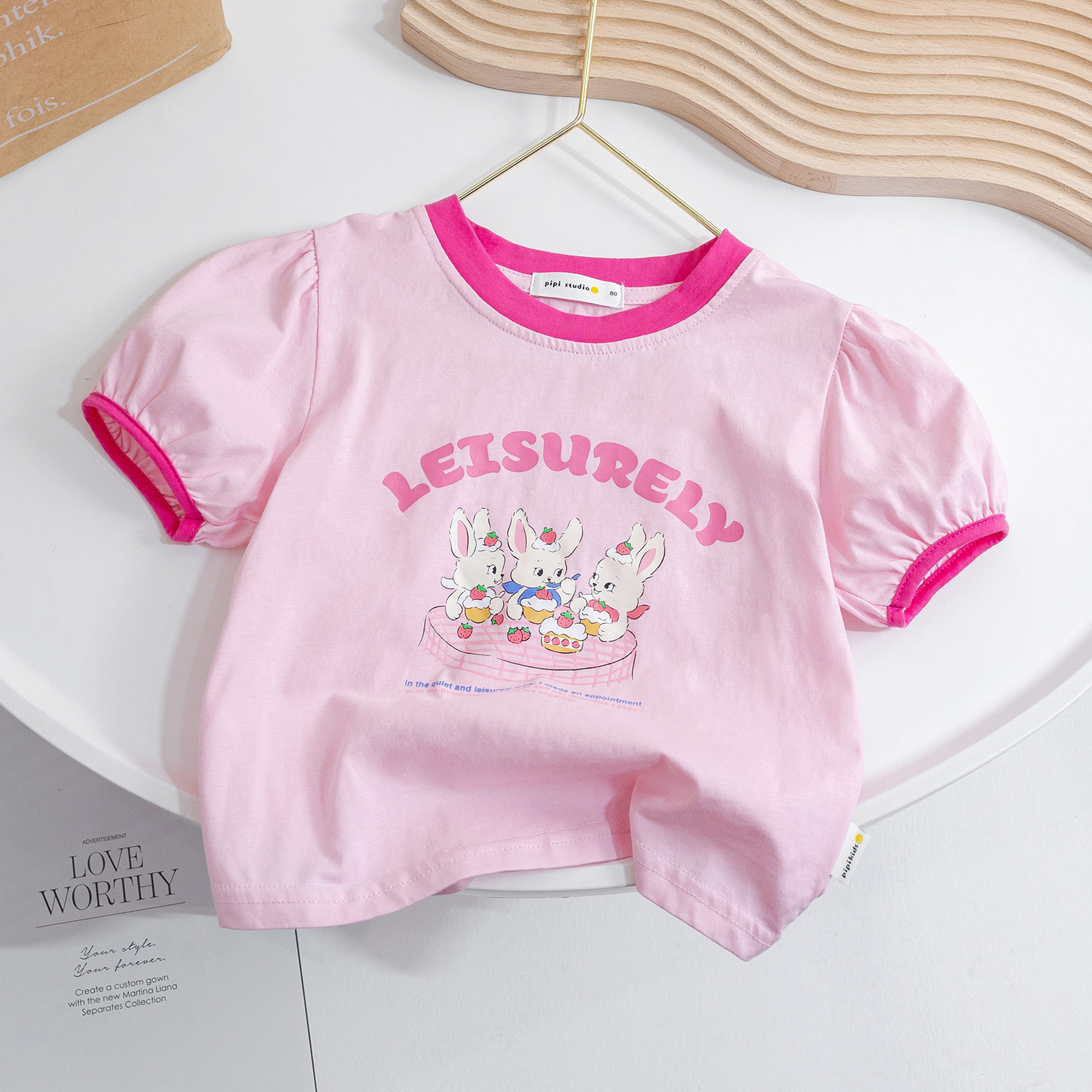 女童夏季韩版卡通小兔子新品2023圆领简约百搭褶皱泡泡袖短袖T恤
