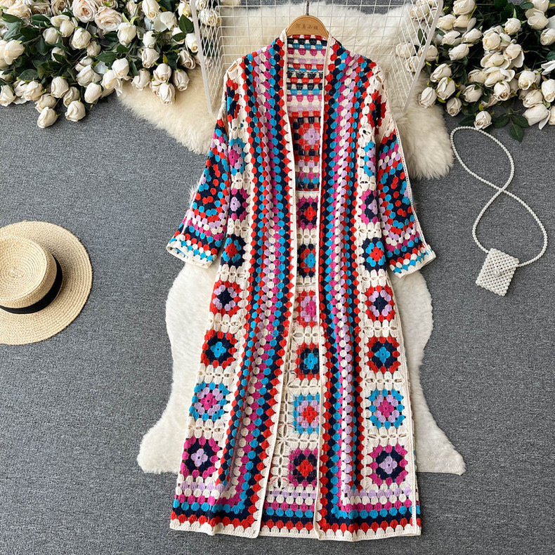 봄과 가을 보헤미안 휴가 에스닉 스타일 인쇄 레트로 긴 우아한 자카드 중공 긴 소매 숄 가디건 유행스토어 가기