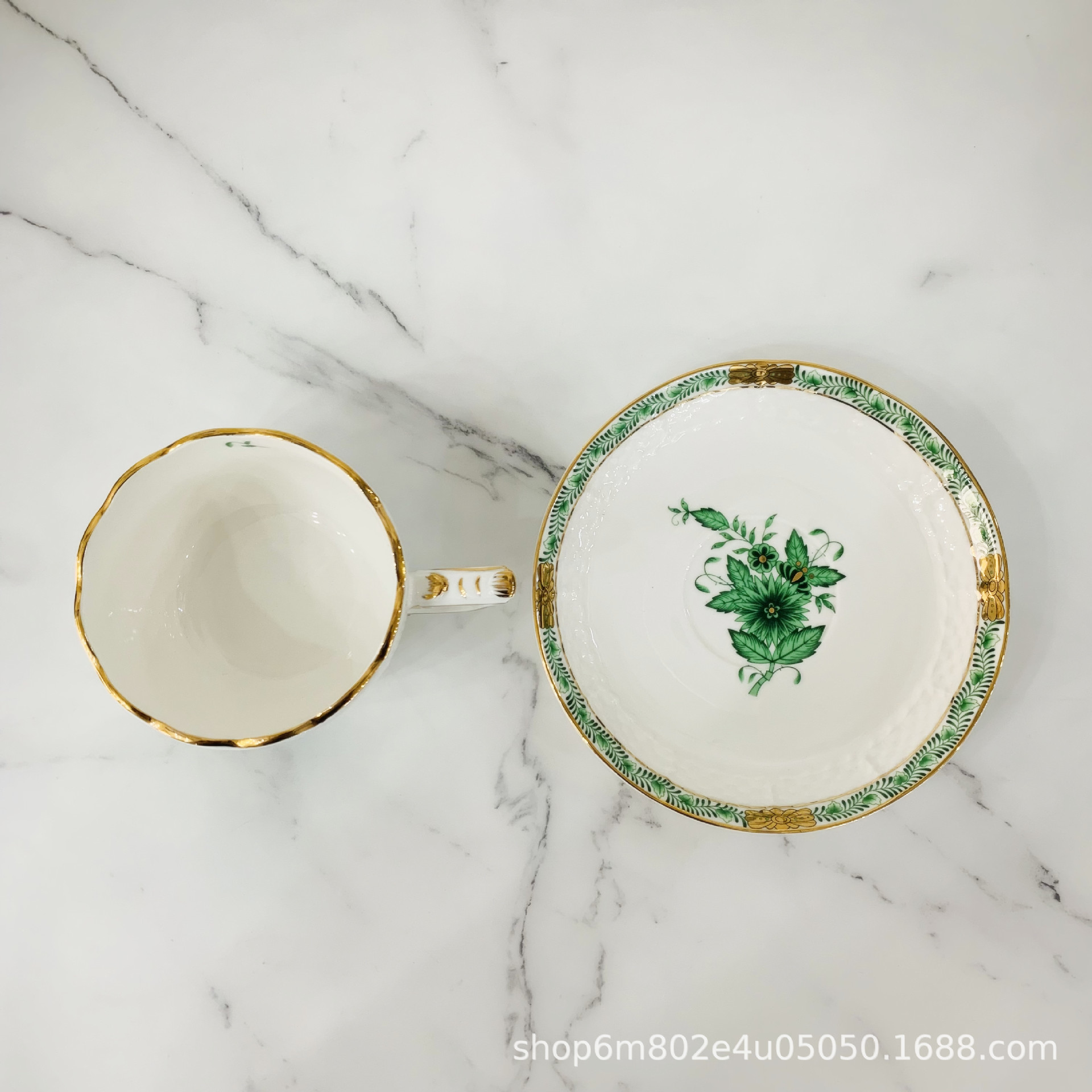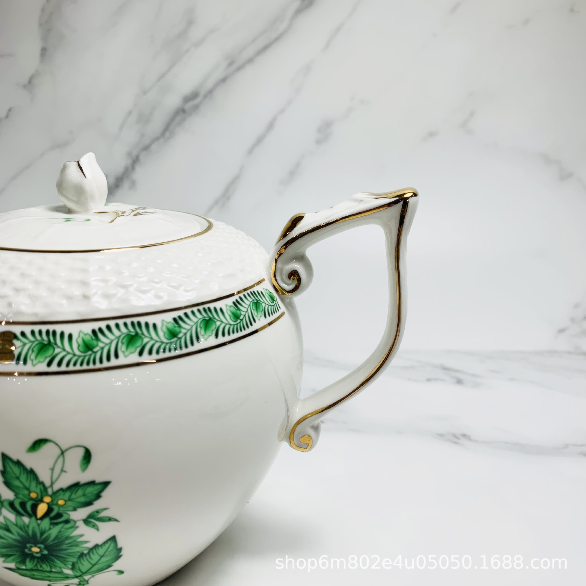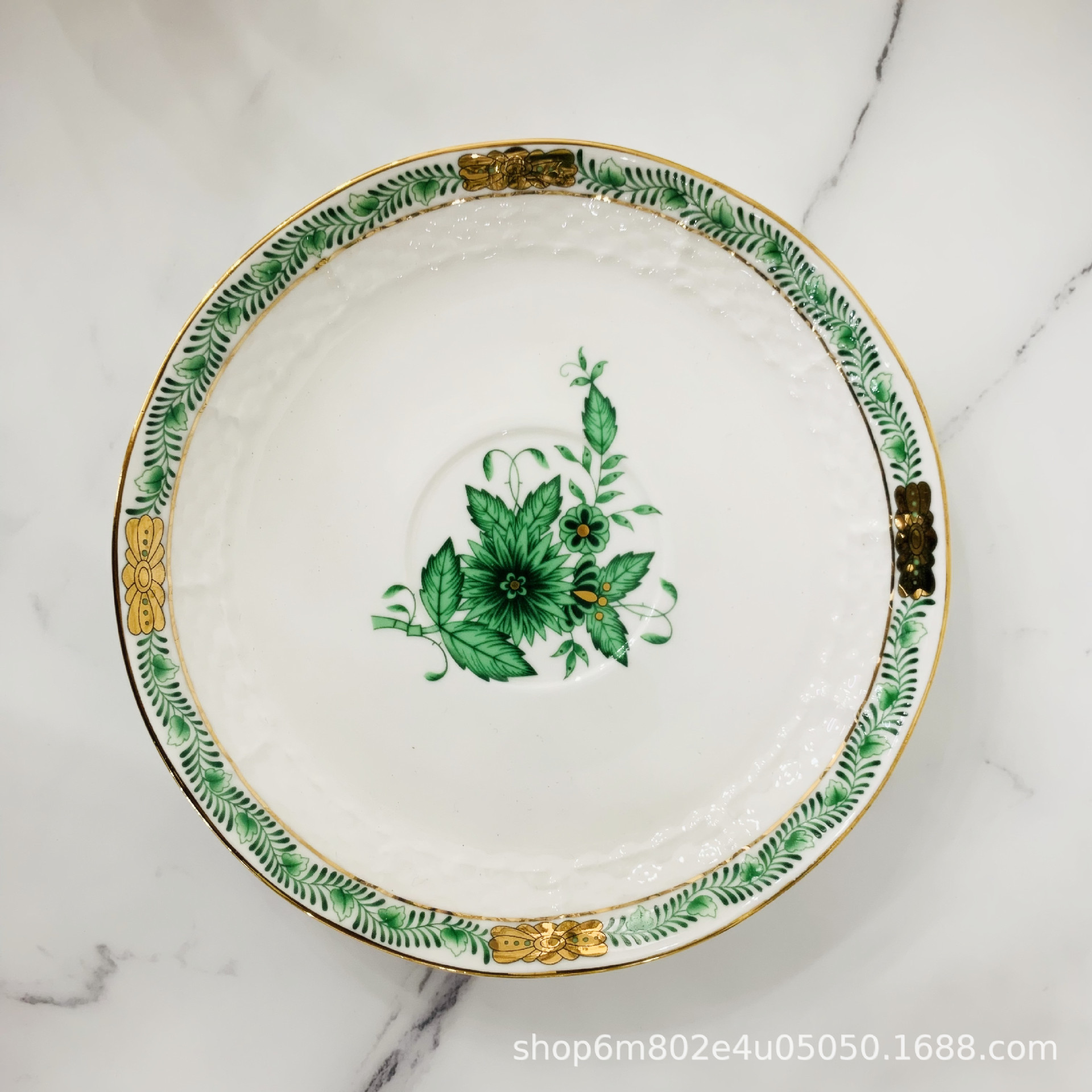 고급 유럽식 럭셔리 그린 리프 짠 질감 금도금 페인트 가정용 접시 커피 컵 접시 주전자 손으로 그린 식기스토어 가기
