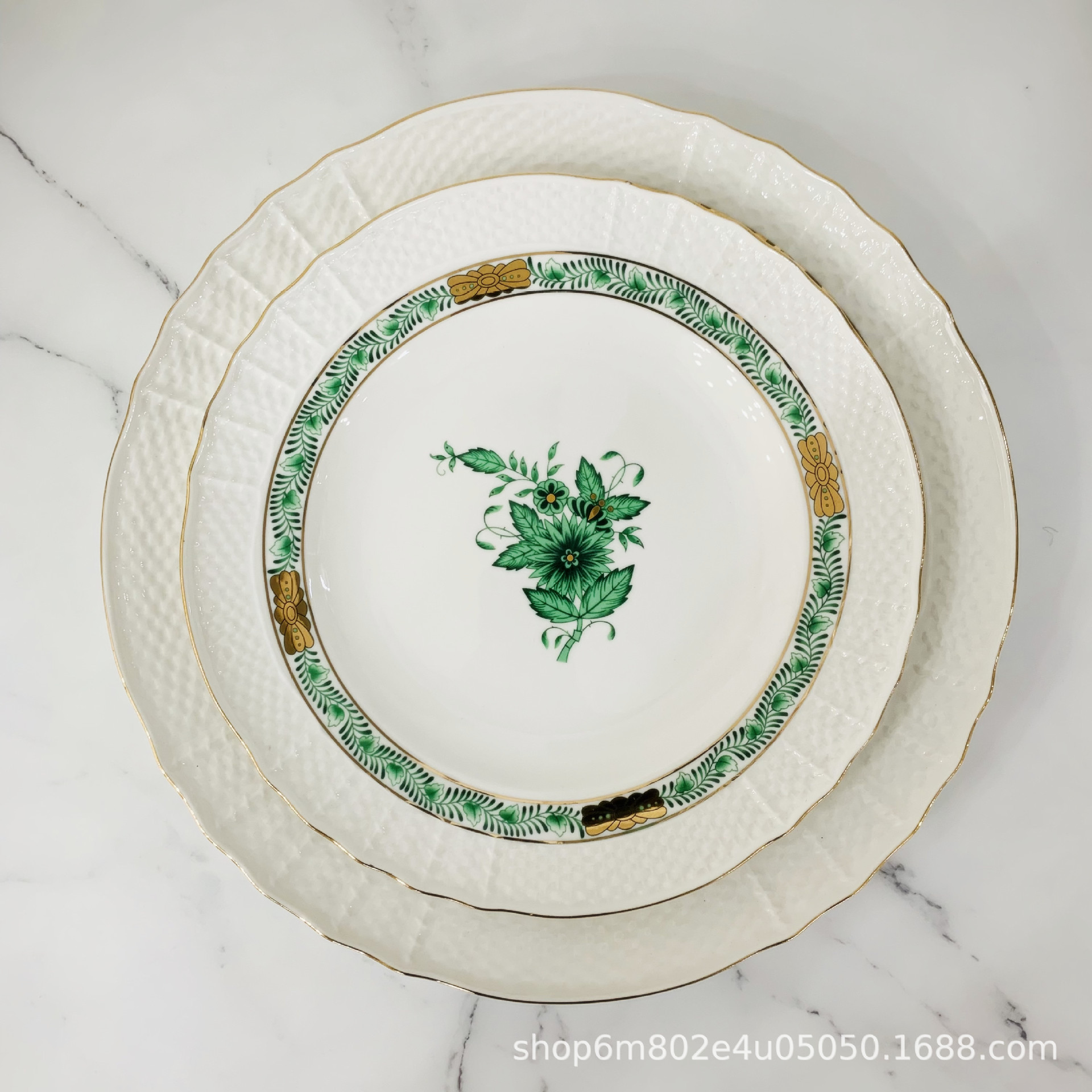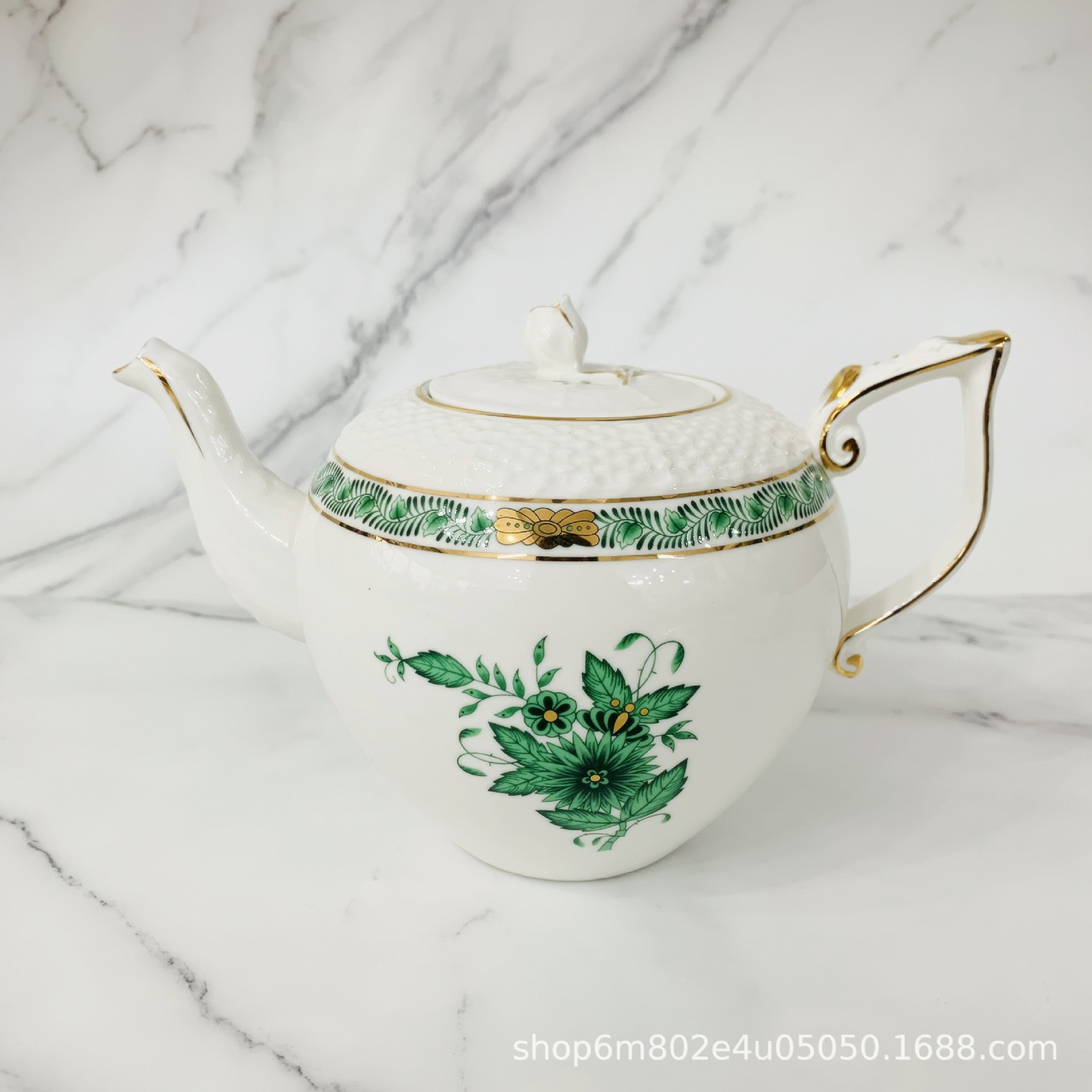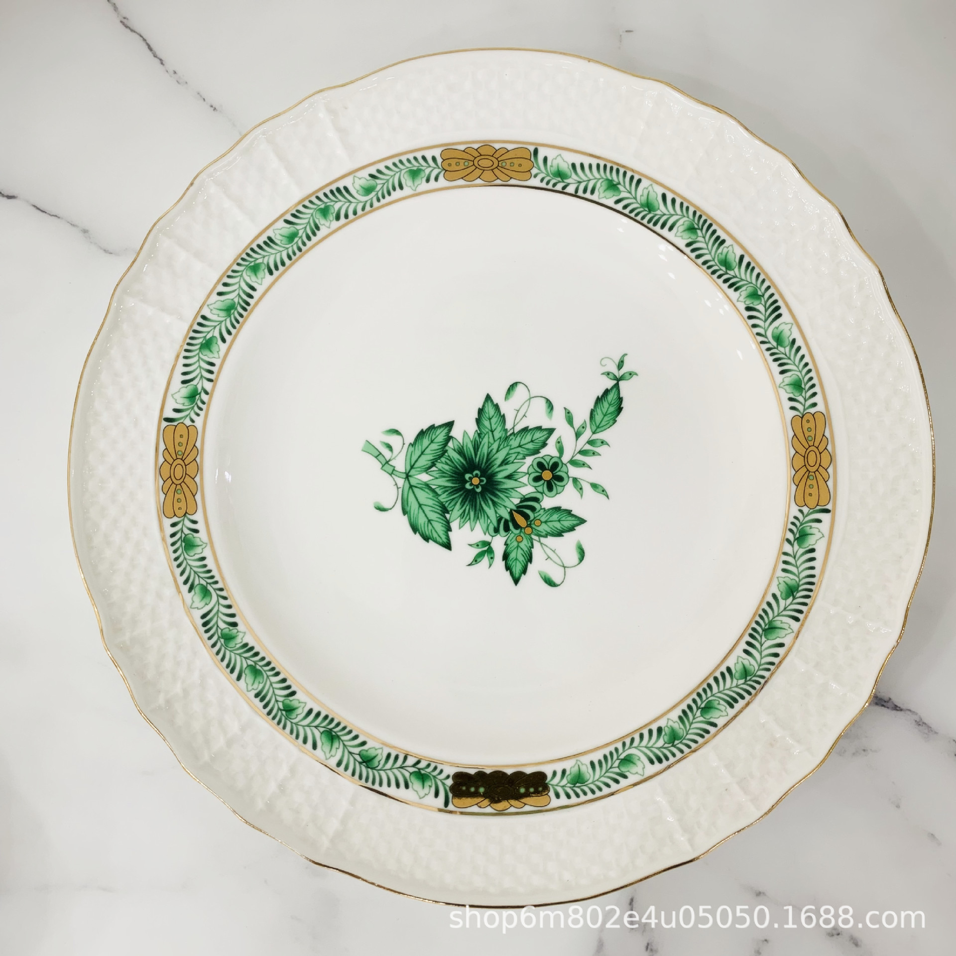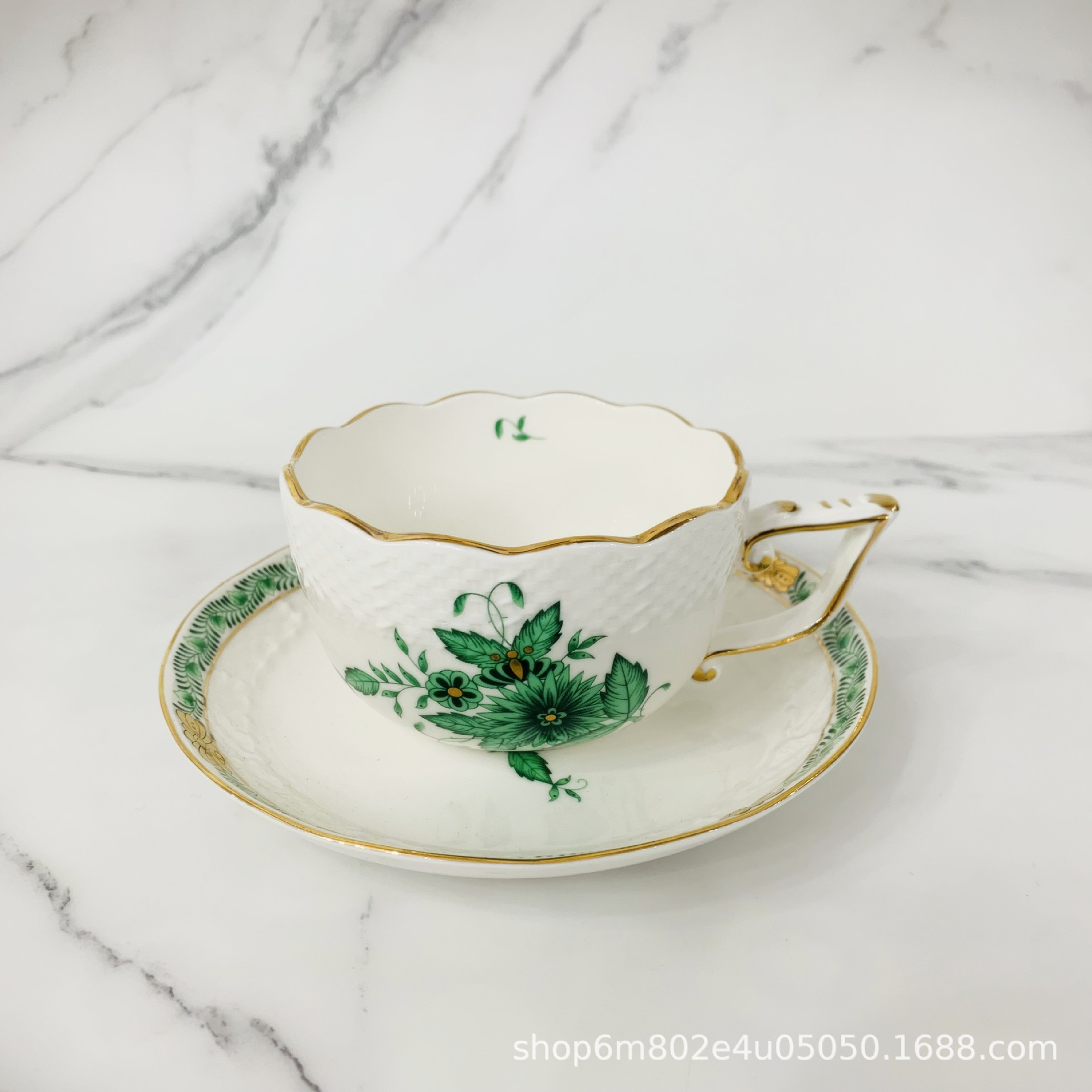 고급 유럽식 럭셔리 그린 리프 짠 질감 금도금 페인트 가정용 접시 커피 컵 접시 주전자 손으로 그린 식기스토어 가기