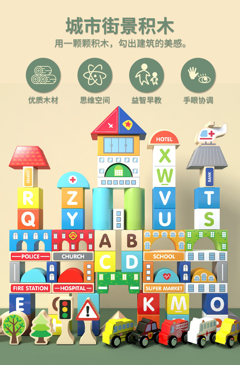 Danizi 140 어린이 나무 빌딩 블록 조립 장난감 큰 곡물 아기 유아 교육 교육 빌딩 블록스토어 가기
