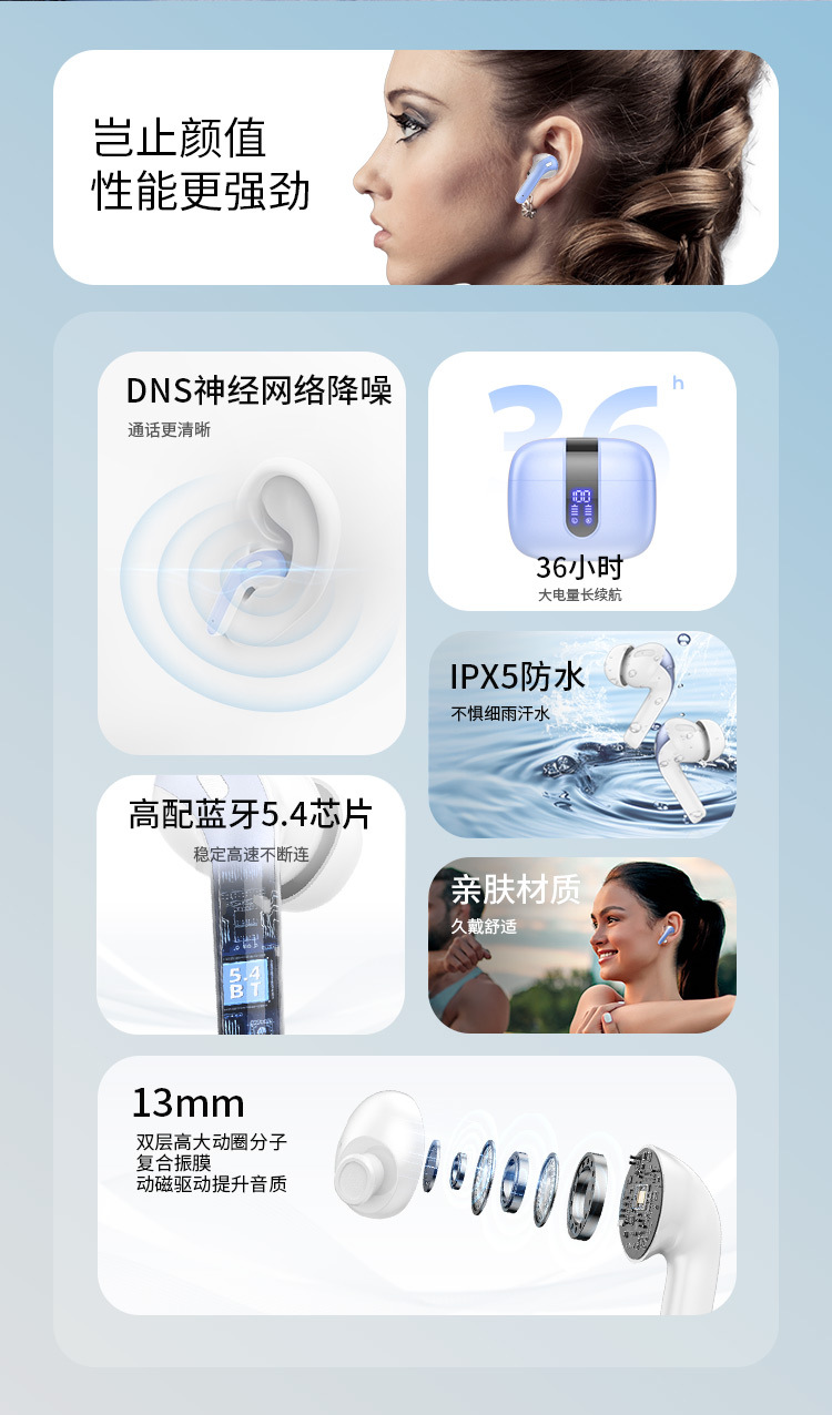 스마트 신기술 소음 감소 헤드셋 무통 스포츠 헤드셋 대용량 내구성 Huaqiang 노스 블루투스 무선 헤드셋
