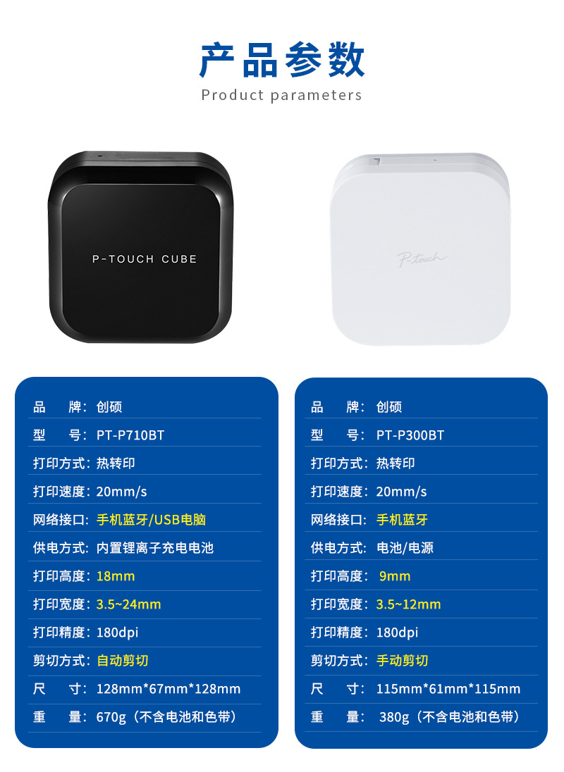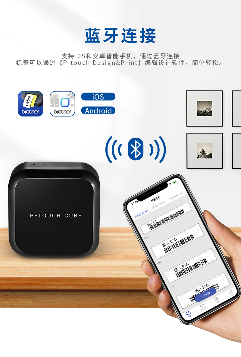 형제 작은 흰색 PT-P300BT 라벨 프린터 작은 검은 색 PT-P710BT 블루투스 미니 휴대용 작은 가구스토어 가기
