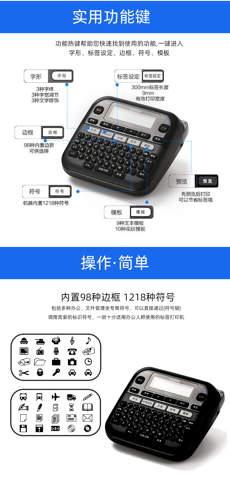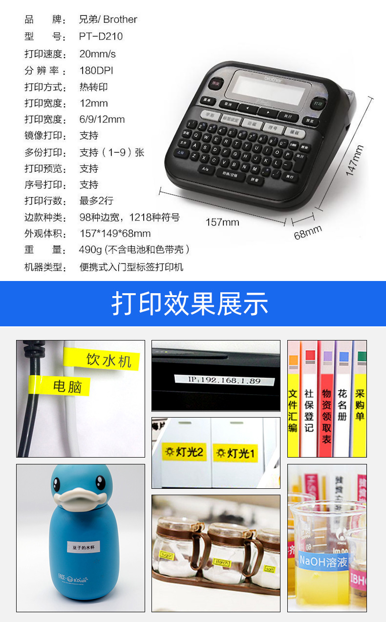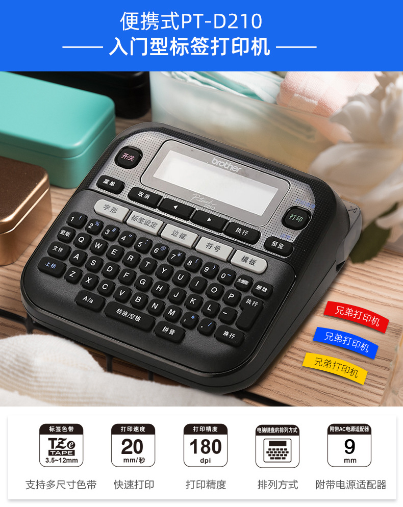 휴대용 네트워크 배선 라벨 프린터 1280/D200 업그레이드: PT-D210 브라더 라벨 프린터(정품 포함)스토어 가기