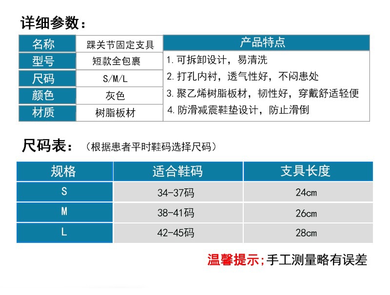 발목 고정 중족골 경골 발목 수술 후 재활 브래킷 측면 발목 골절 석고 신발 보호대 지골스토어 가기