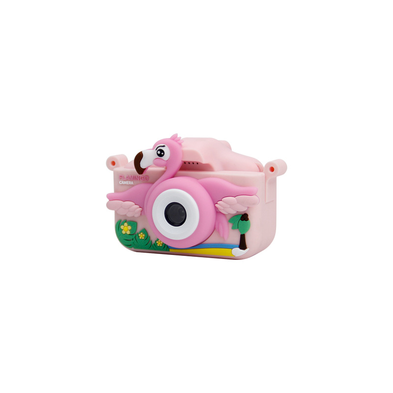 새로운 고화질 더블 카메라 어린이용 디지털 미니 촬영 가능 플라밍고 모양의 실리콘 케이스 개인 금형 교육 완구스토어 가기