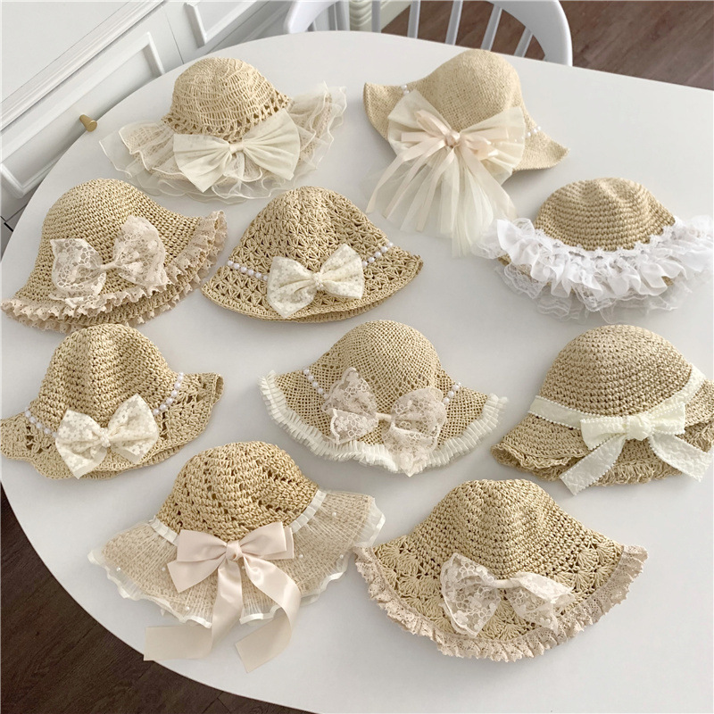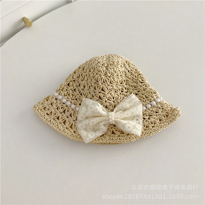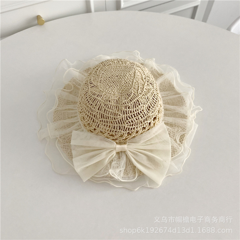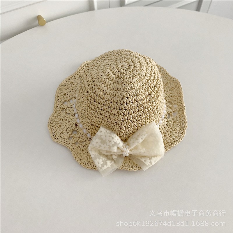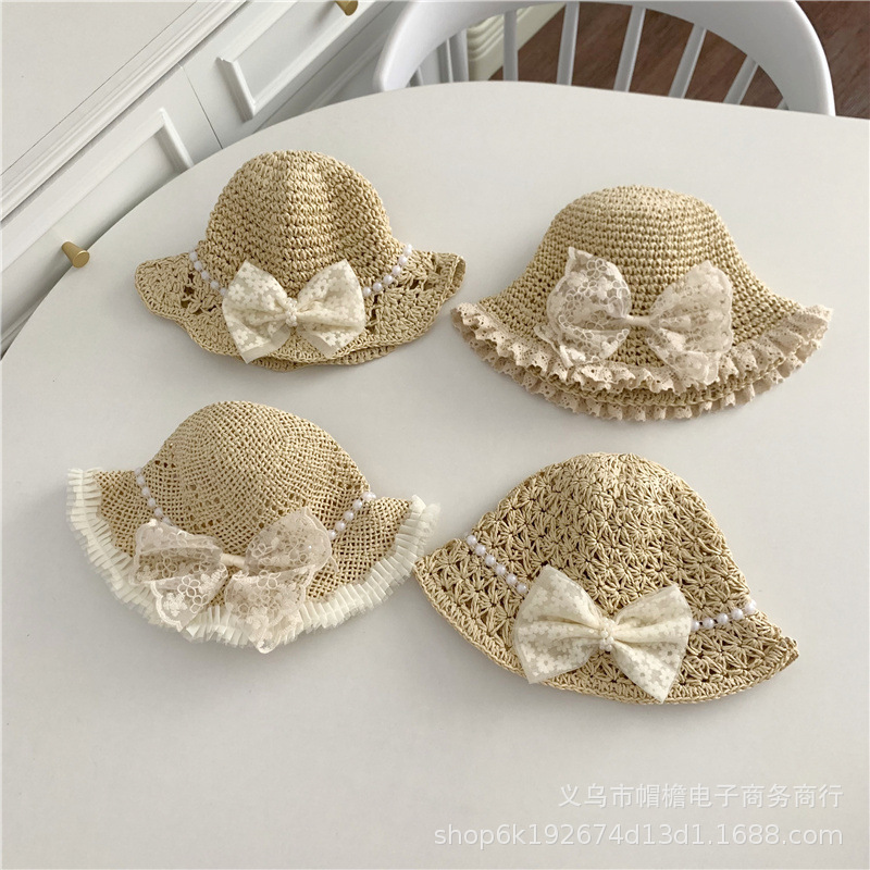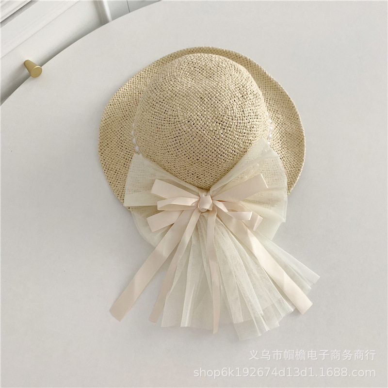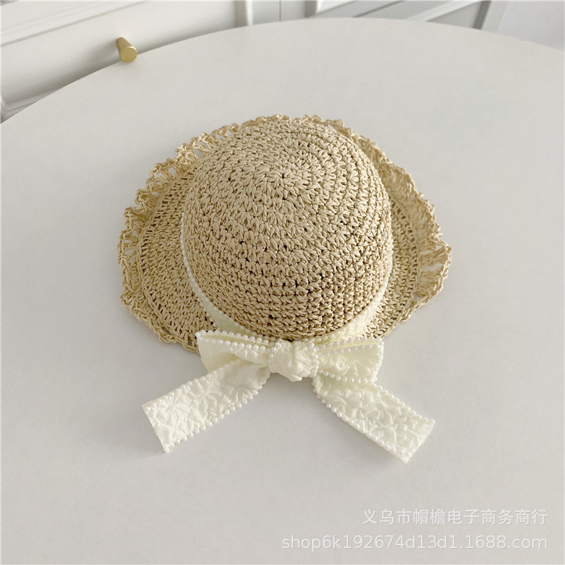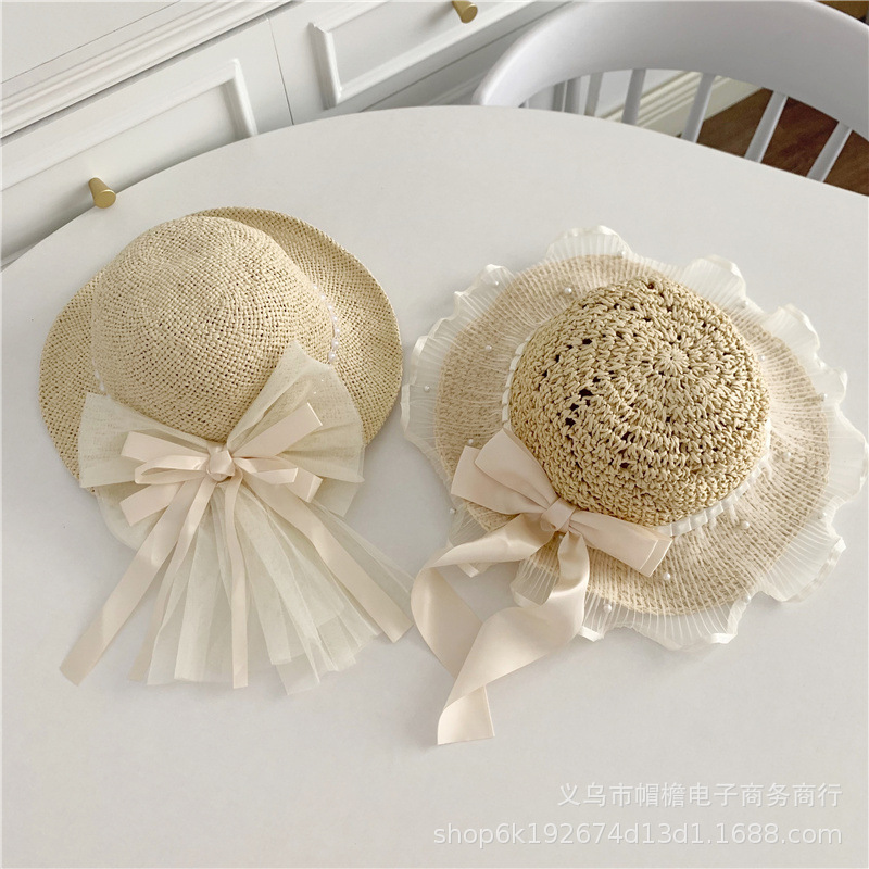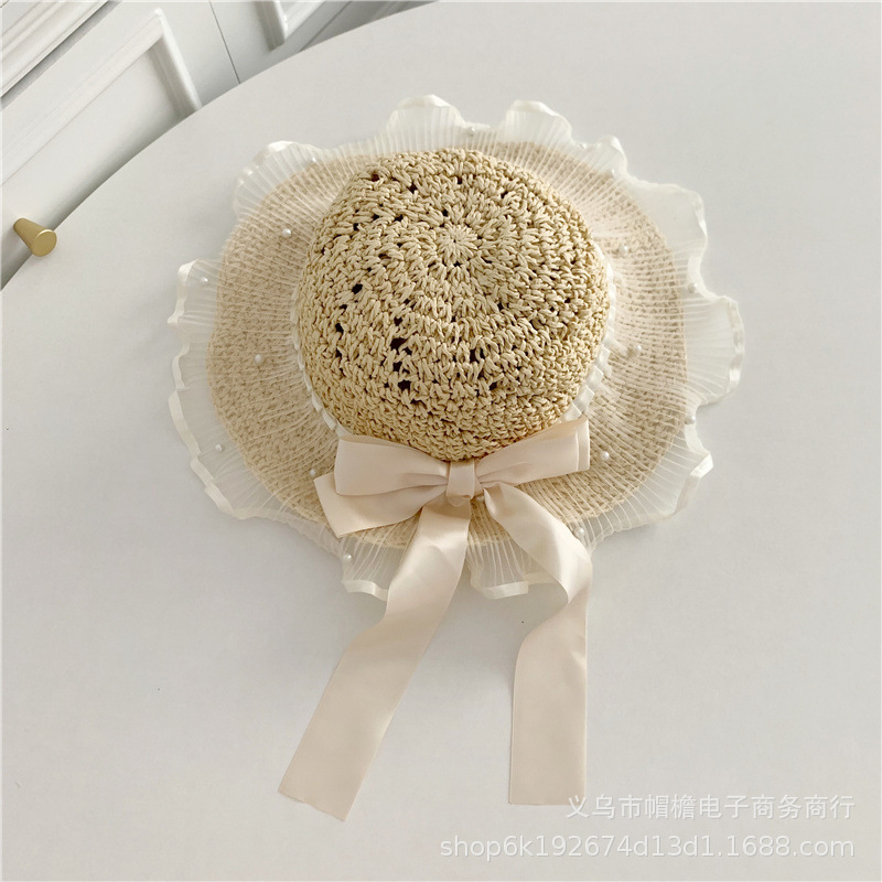 세련된 메쉬 진주 소녀 여름 슈퍼 요정 밀짚 모자 어린이 패션 모든 매치 대형 챙 그늘 통기성 비치 모자스토어 가기