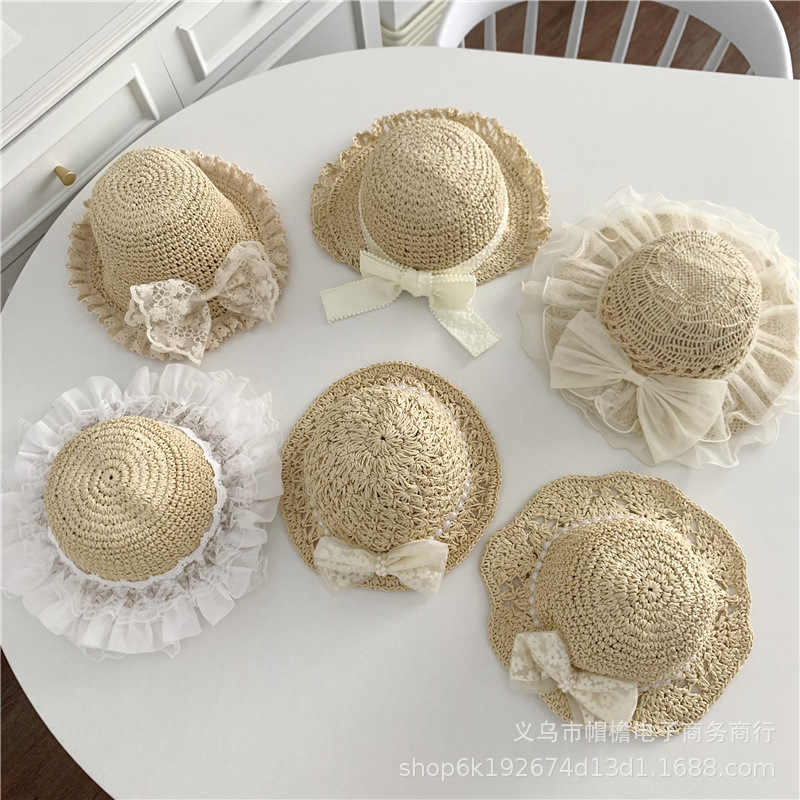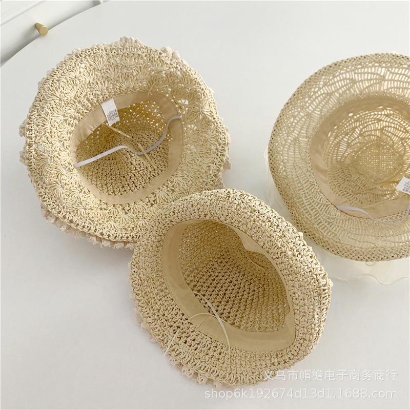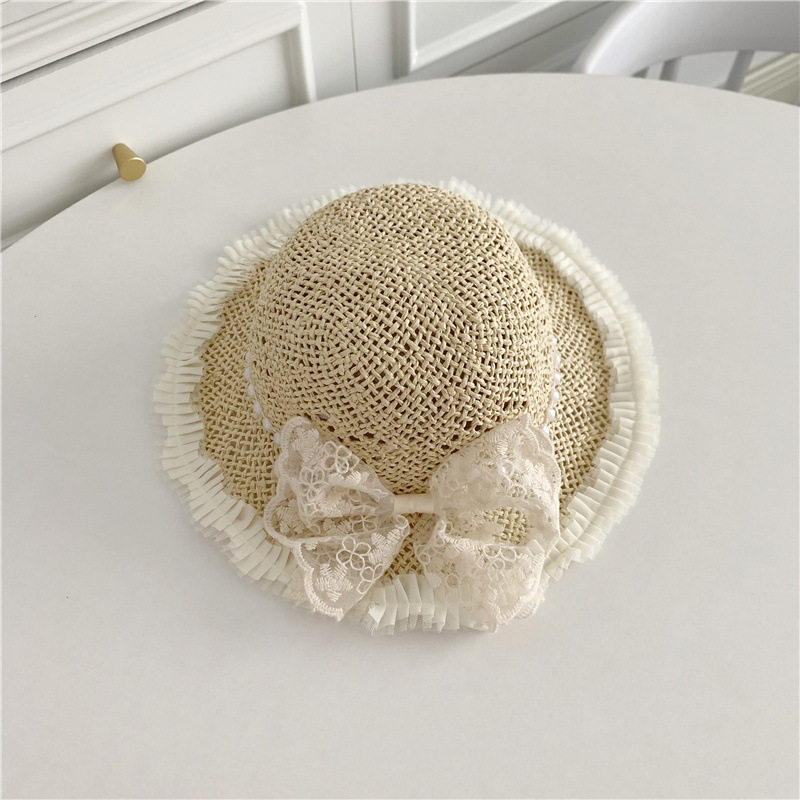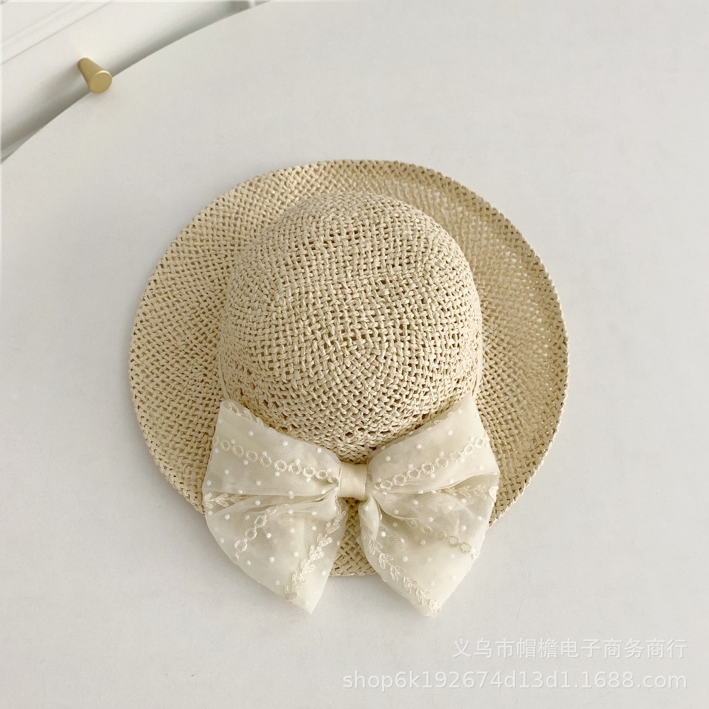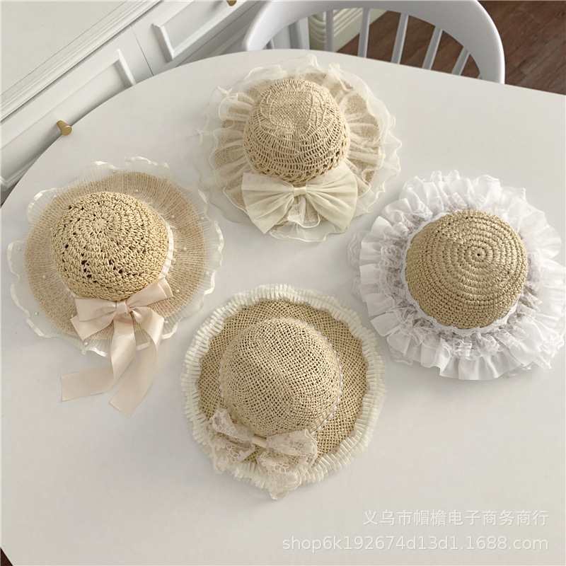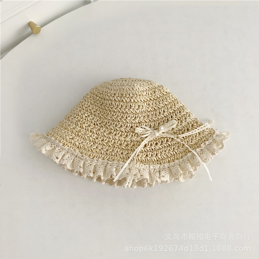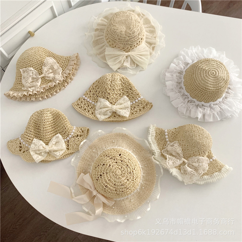세련된 메쉬 진주 소녀 여름 슈퍼 요정 밀짚 모자 어린이 패션 모든 매치 대형 챙 그늘 통기성 비치 모자스토어 가기