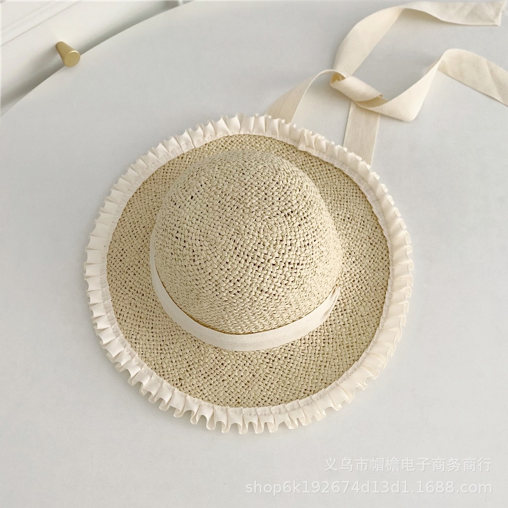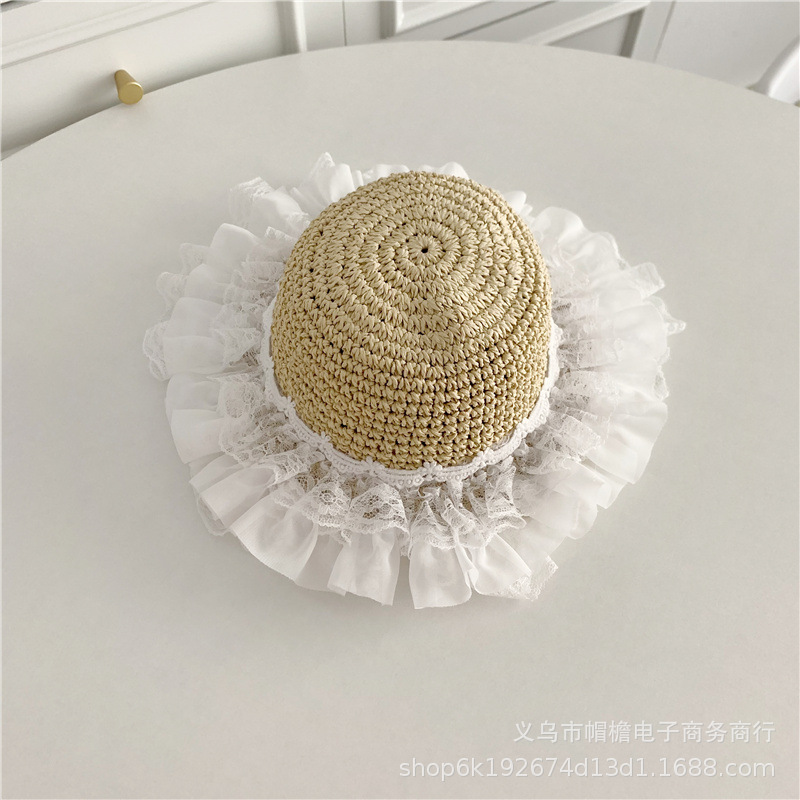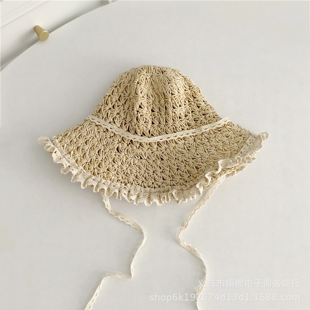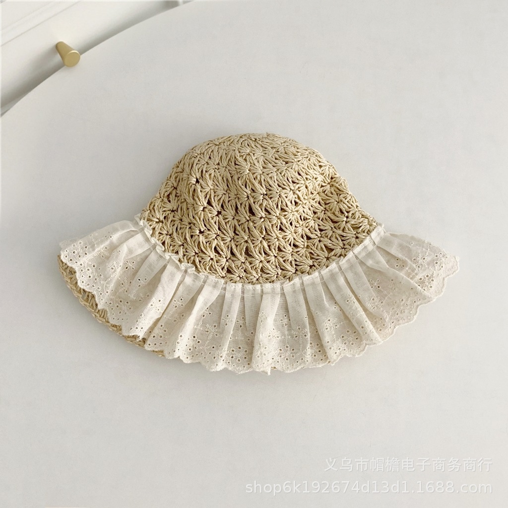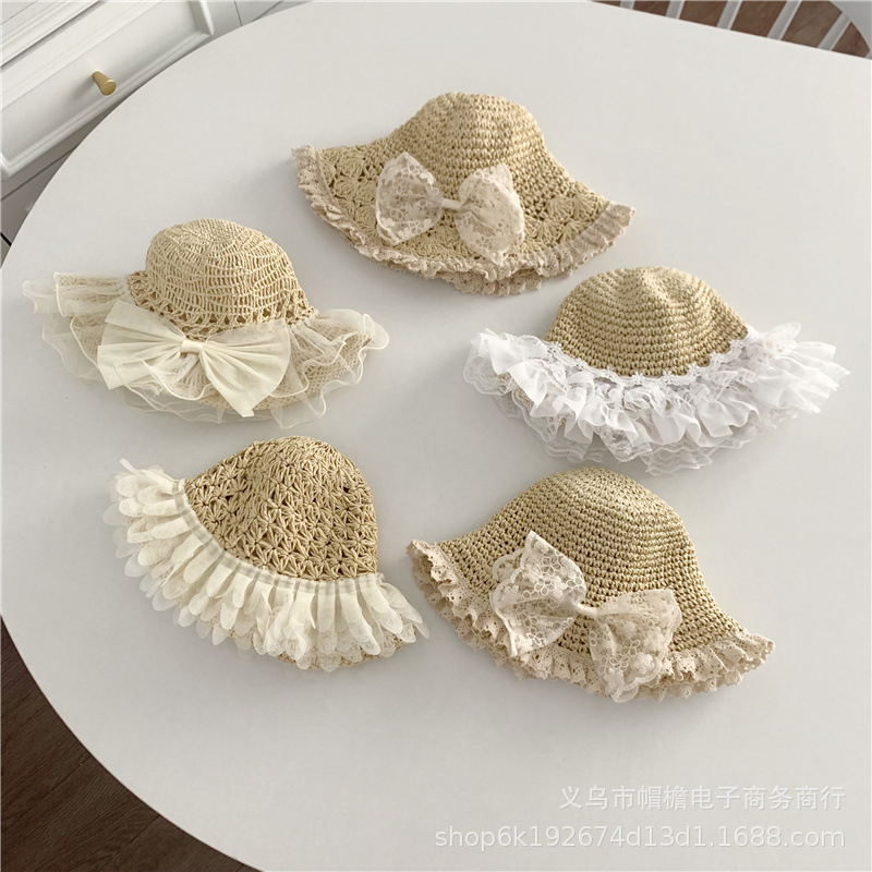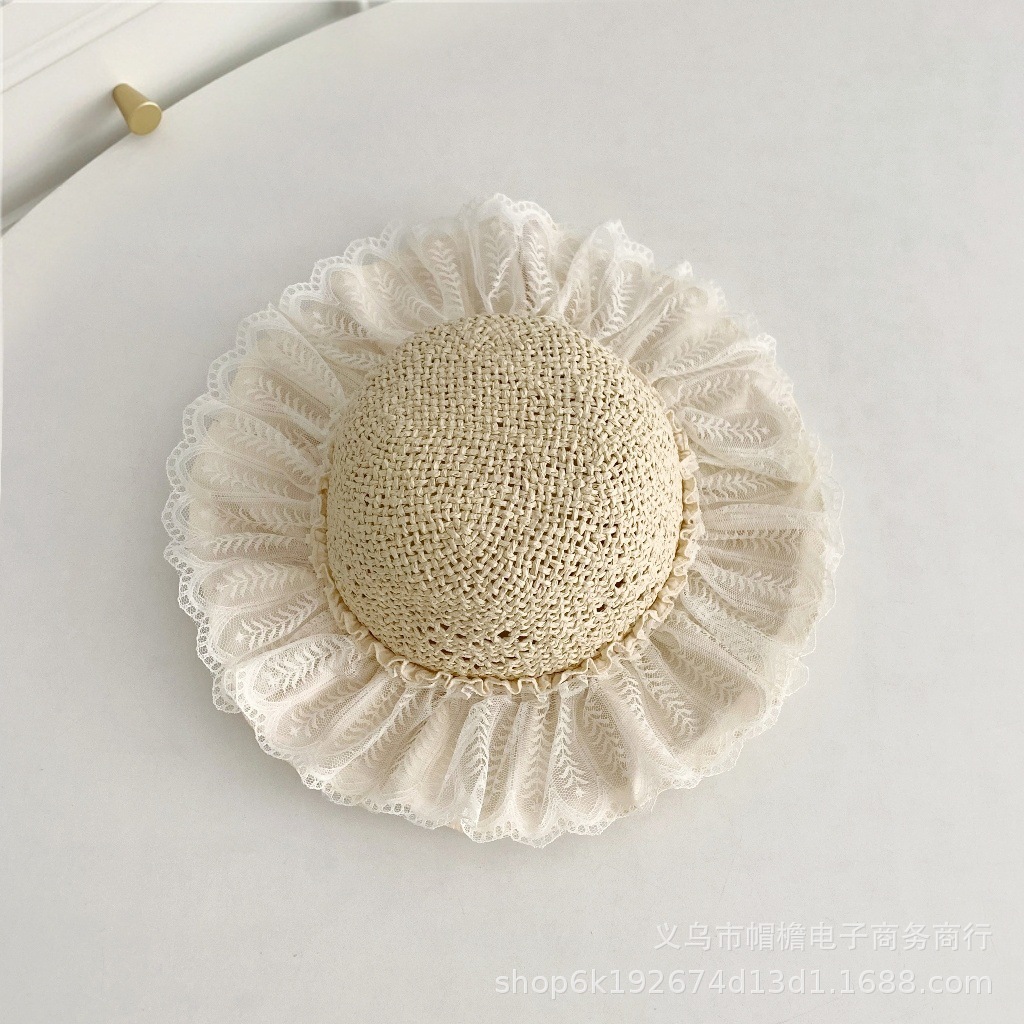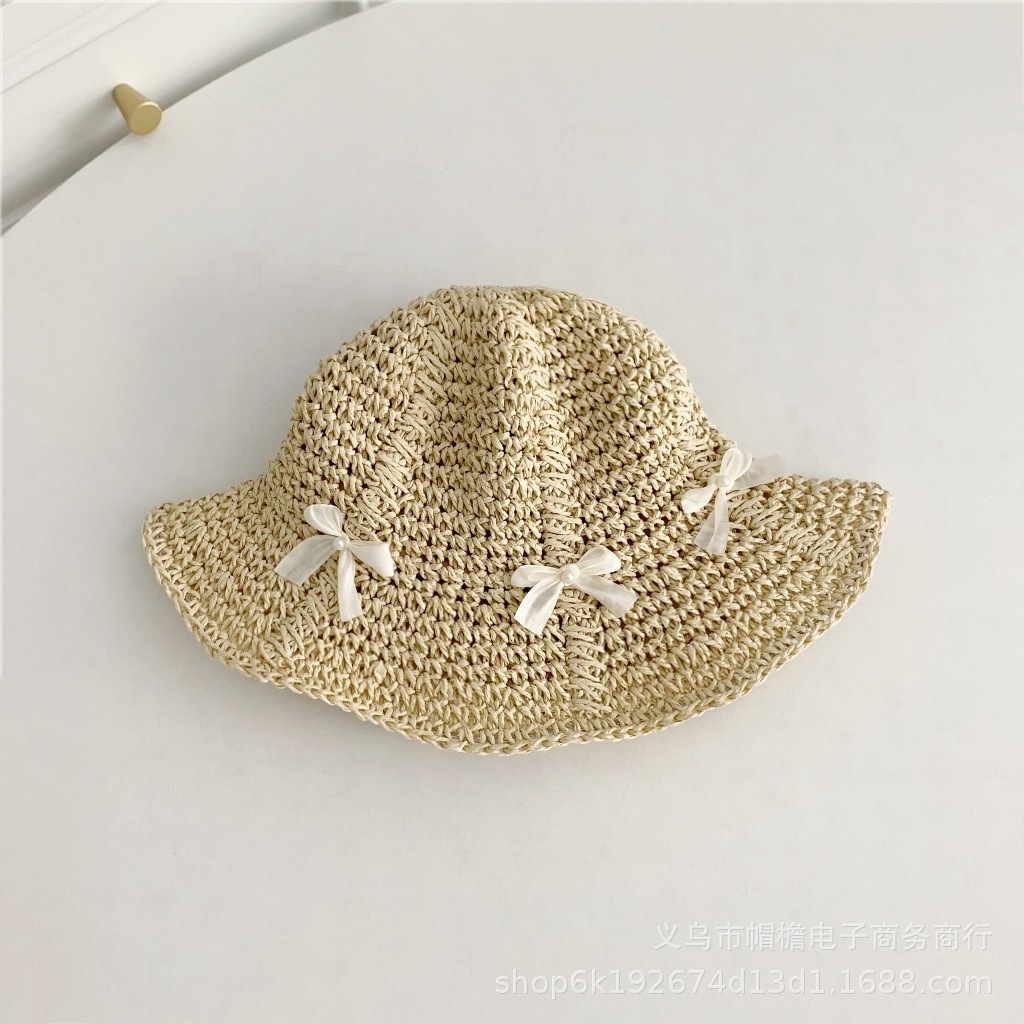 세련된 메쉬 진주 소녀 여름 슈퍼 요정 밀짚 모자 어린이 패션 모든 매치 대형 챙 그늘 통기성 비치 모자스토어 가기