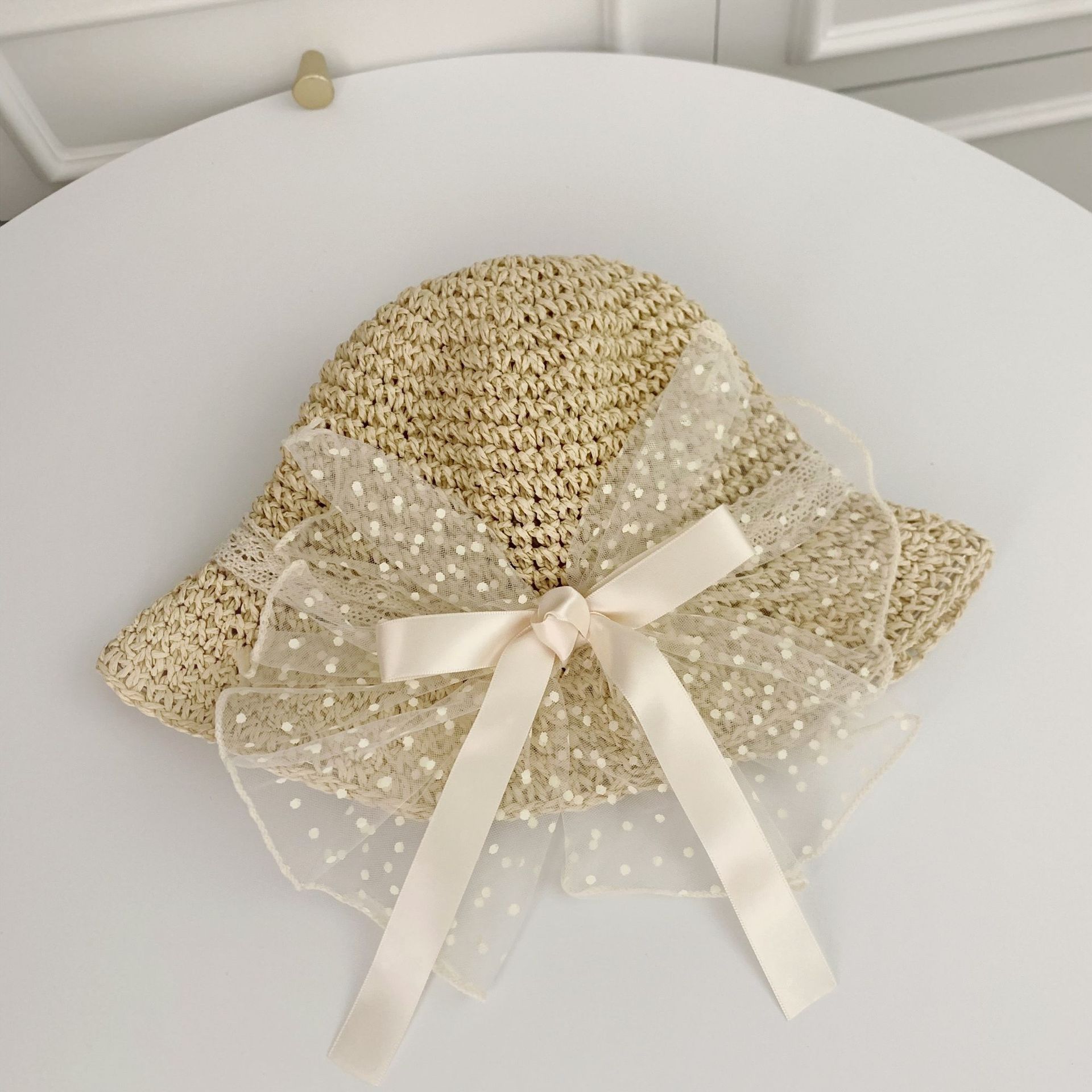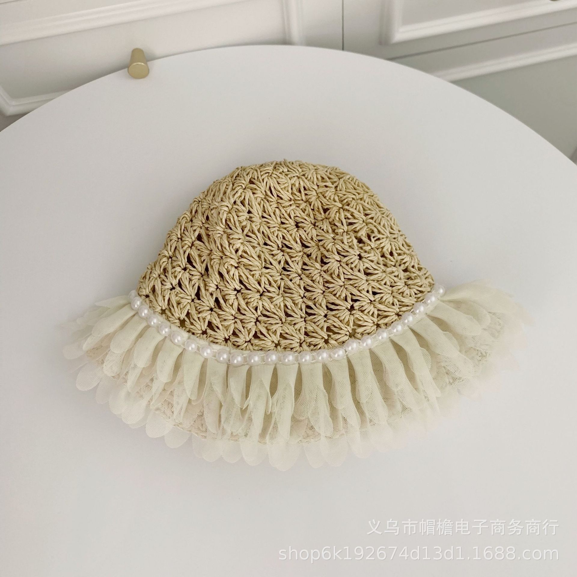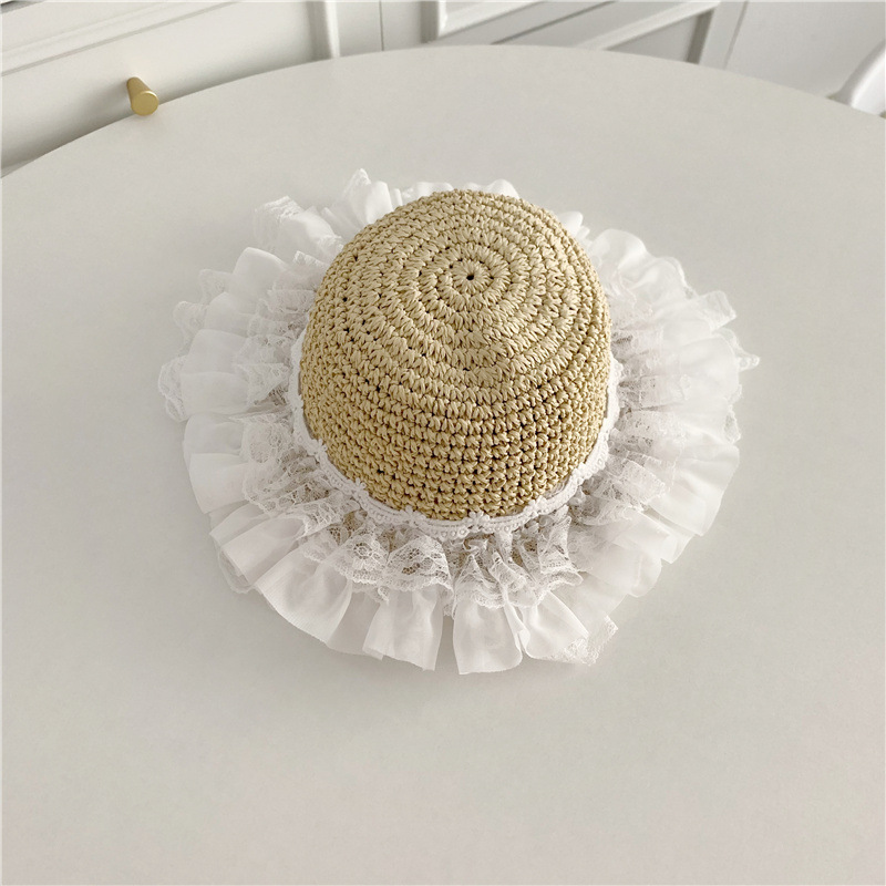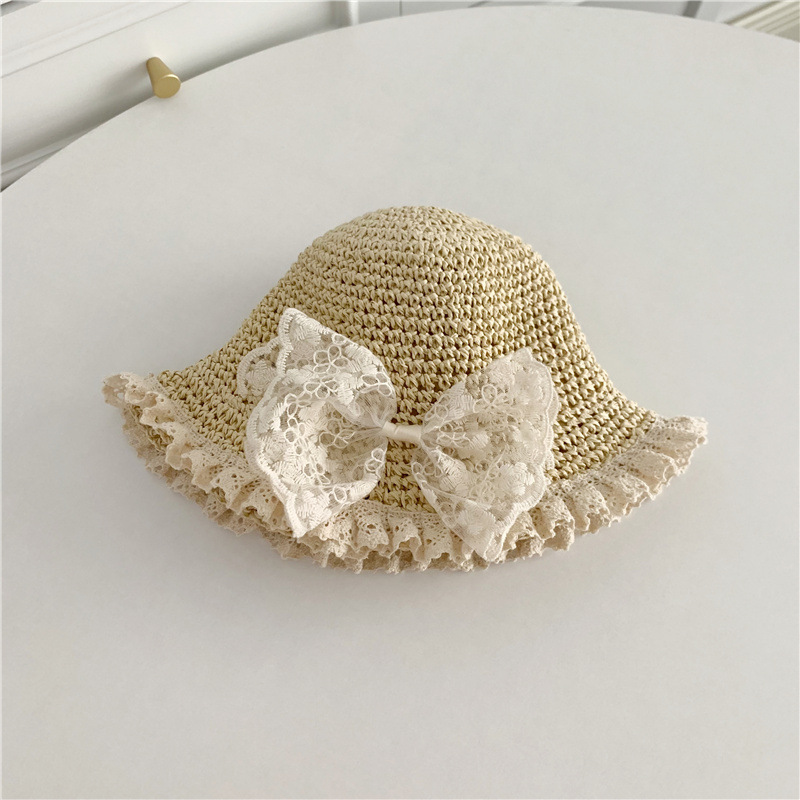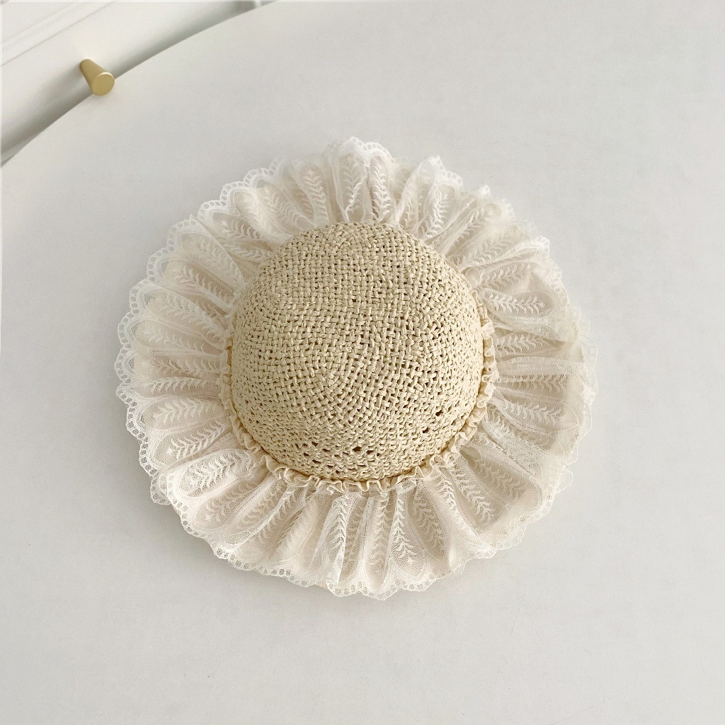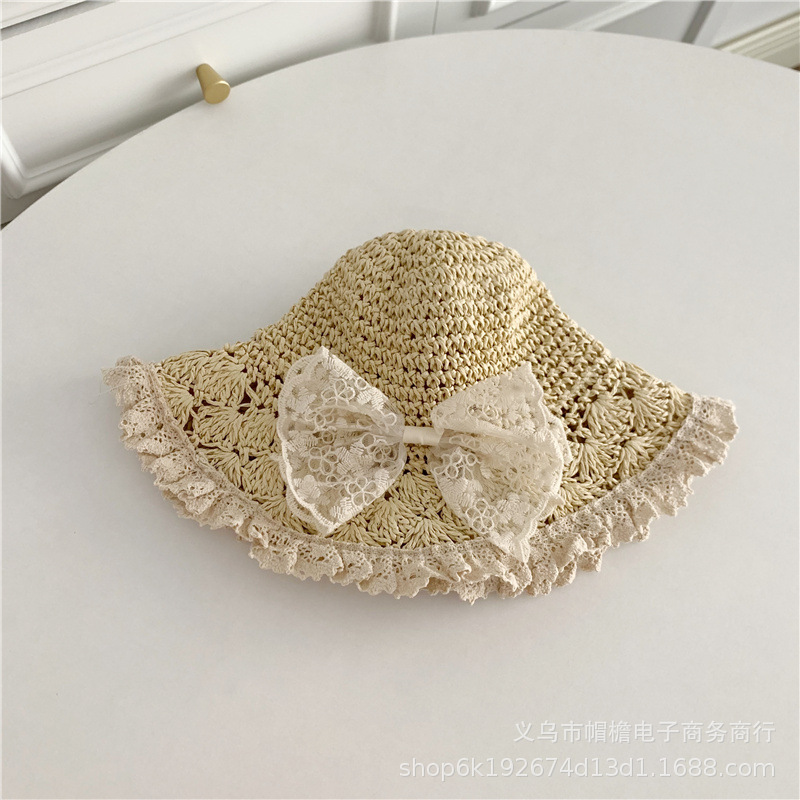 세련된 메쉬 진주 소녀 여름 슈퍼 요정 밀짚 모자 어린이 패션 모든 매치 대형 챙 그늘 통기성 비치 모자스토어 가기