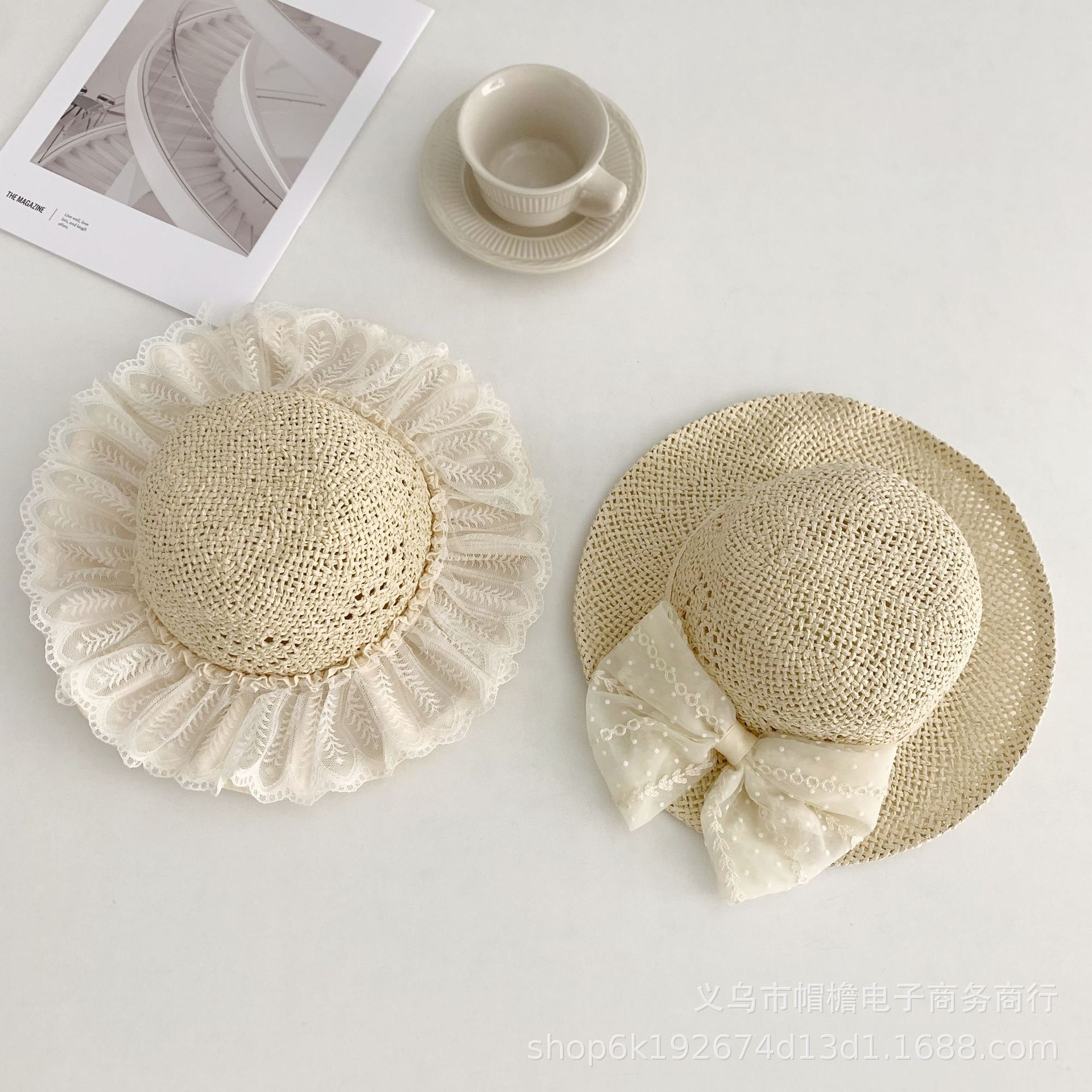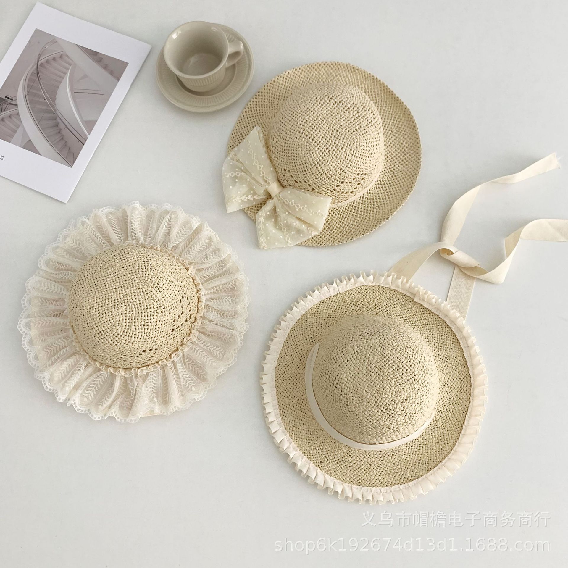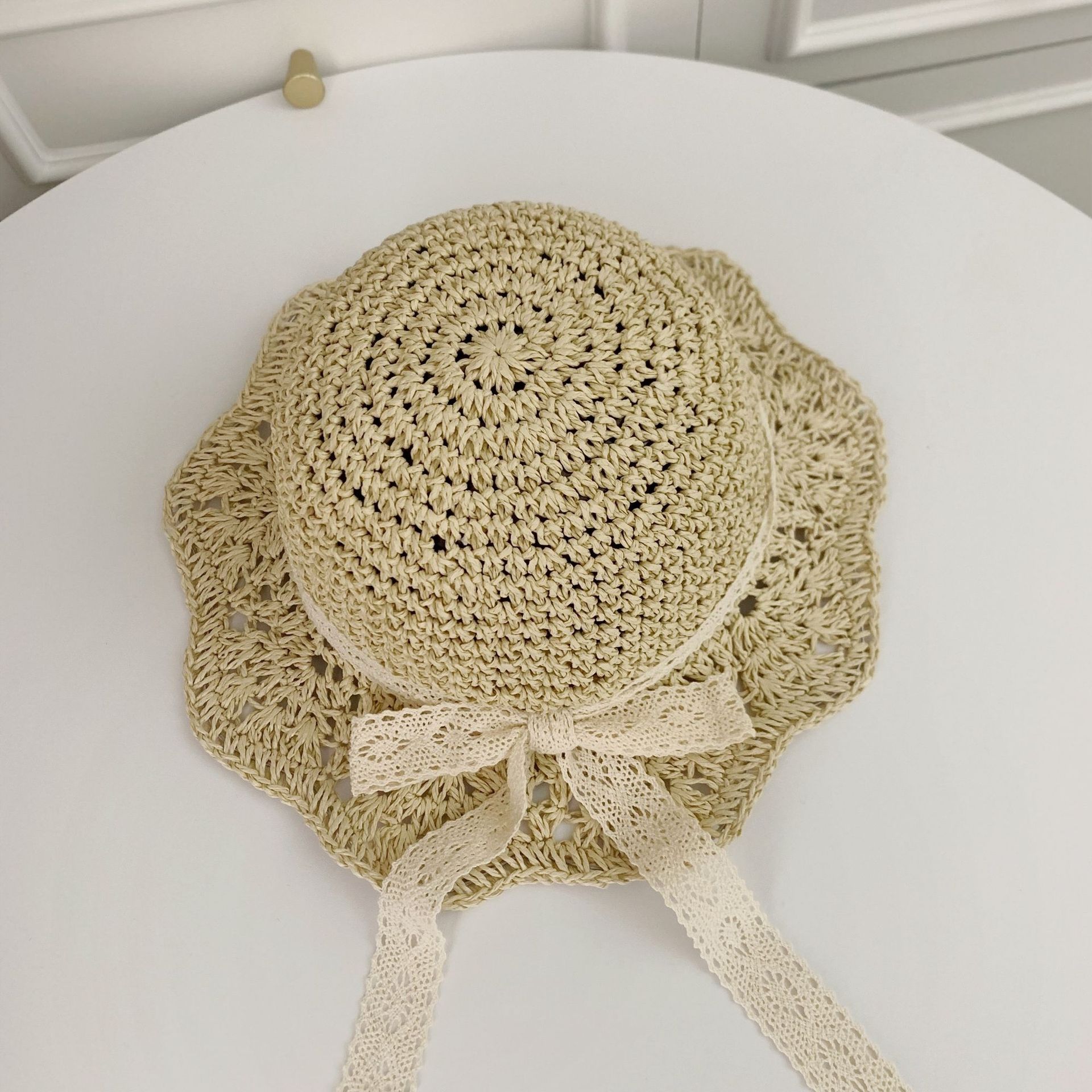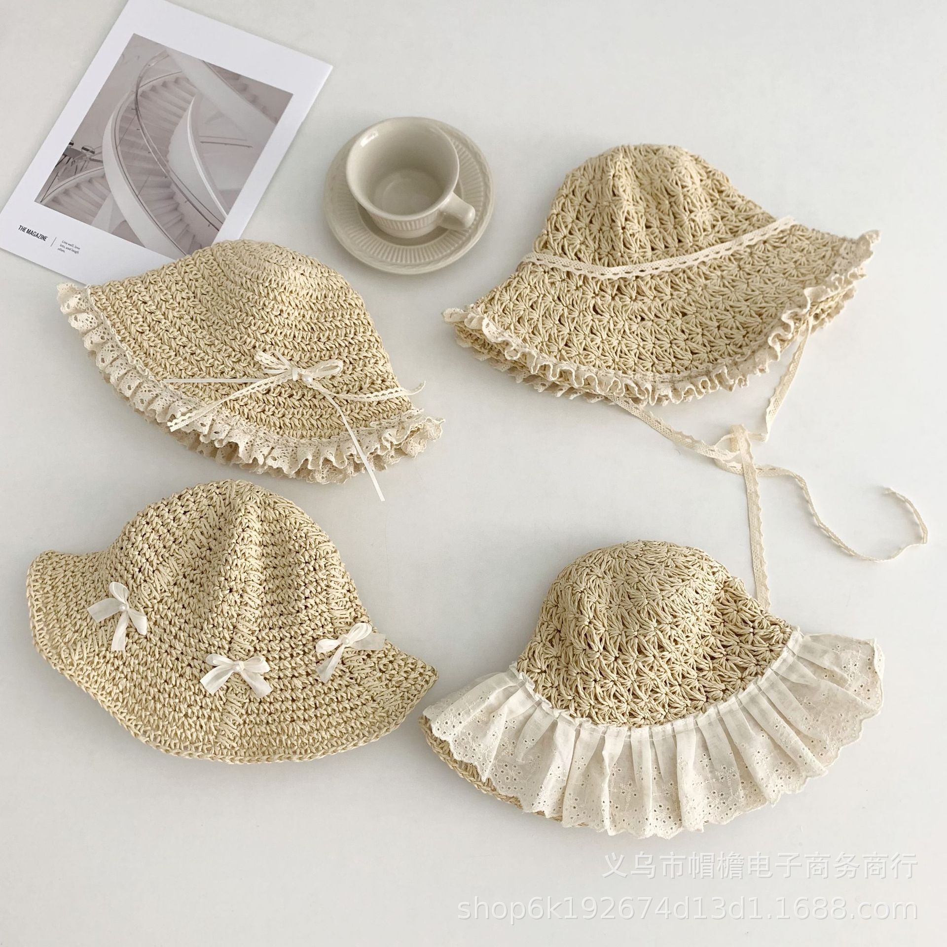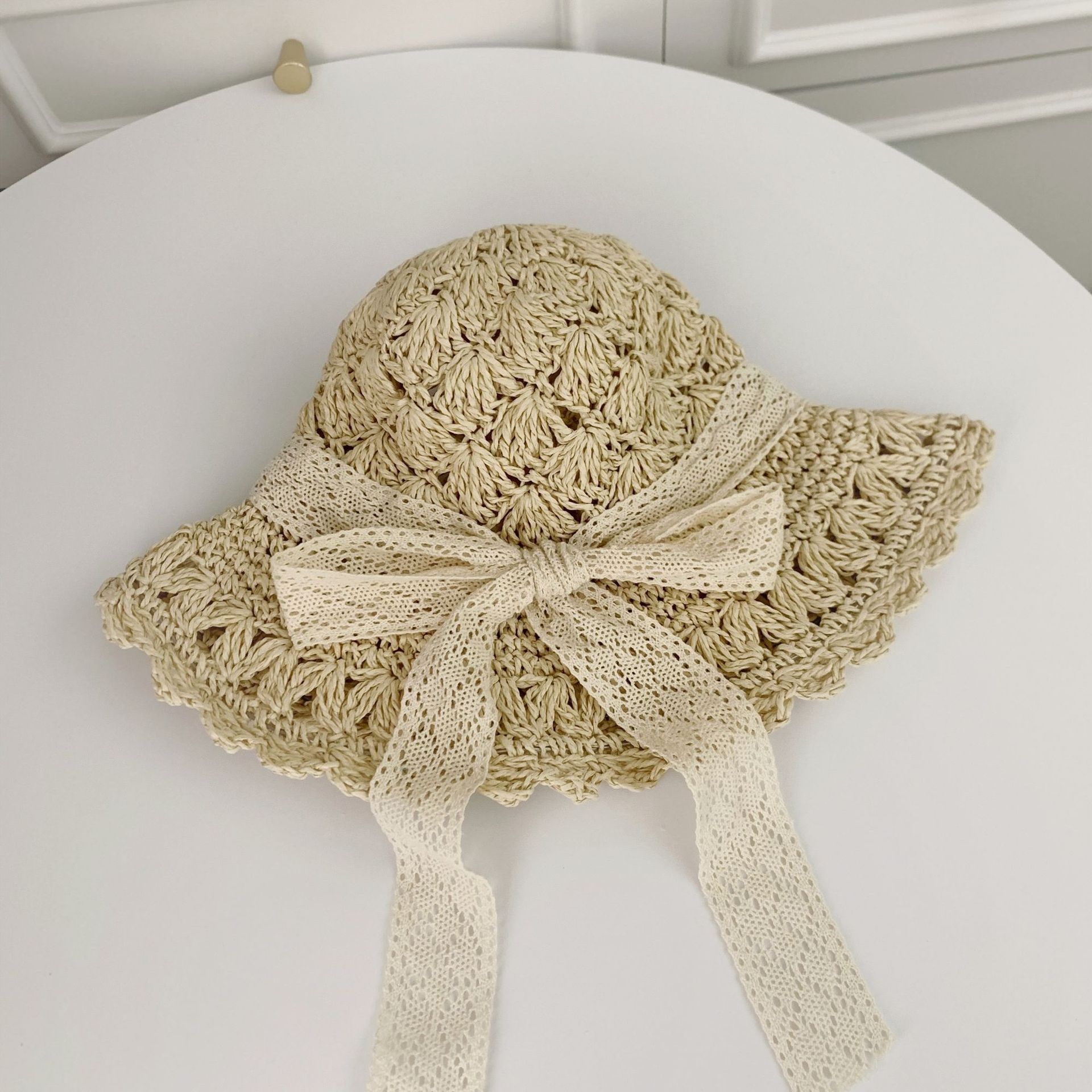 세련된 메쉬 진주 소녀 여름 슈퍼 요정 밀짚 모자 어린이 패션 모든 매치 대형 챙 그늘 통기성 비치 모자스토어 가기