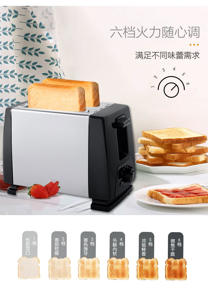가정용 스테인레스 스틸 토스터 더블 슬롯 토스터 자동 미니 아침 식사 지구 토스트 2 조각 가열 유물