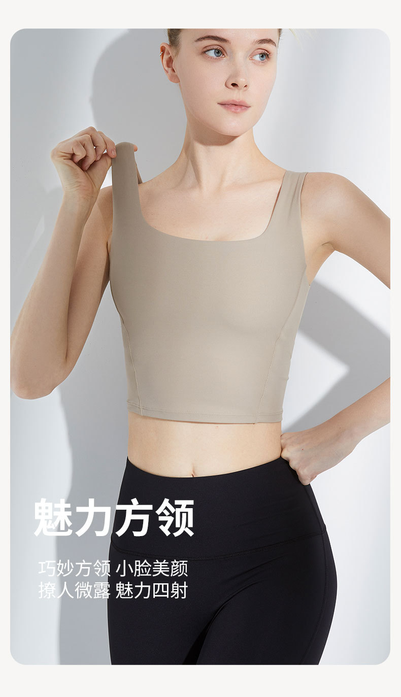 루루 통합 고정 컵 스포츠 속옷 스퀘어 칼라 스포츠 브라 여성용 가슴 패드가있는 알몸 요가 조끼