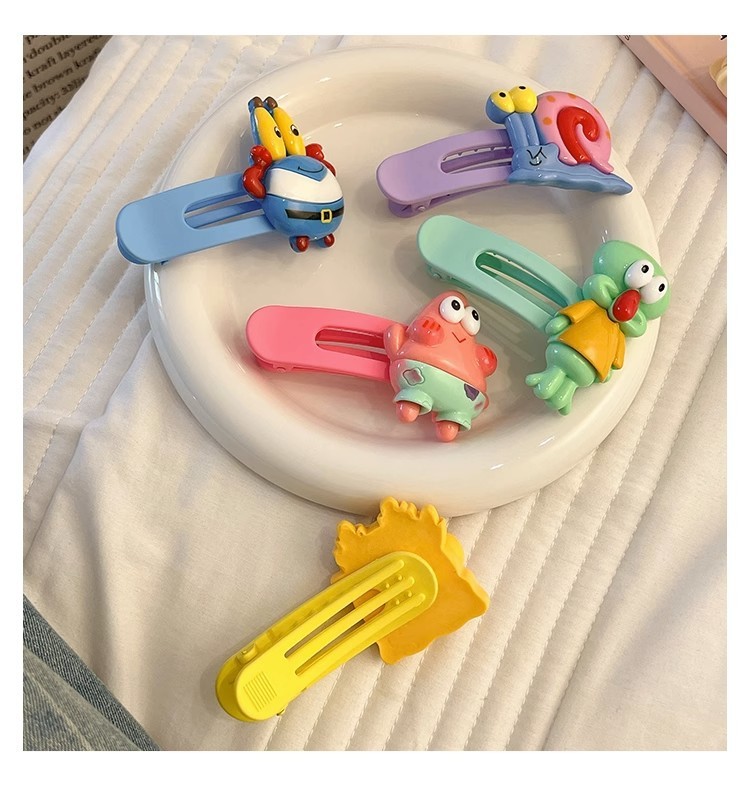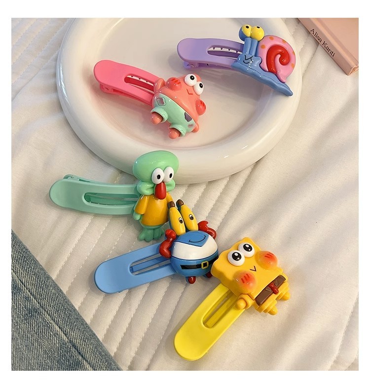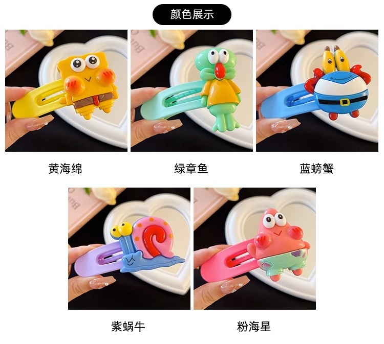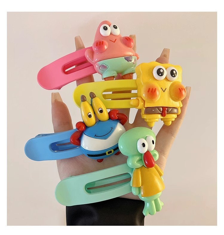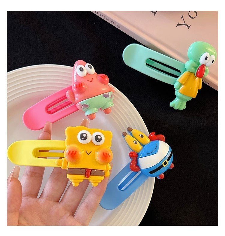 고가의 스폰지 밥 스퀘어 팬츠 박 스타 머리핀 귀여운 만화 수지 클립 소녀 헤어 액세서리 달콤한 선물스토어 가기