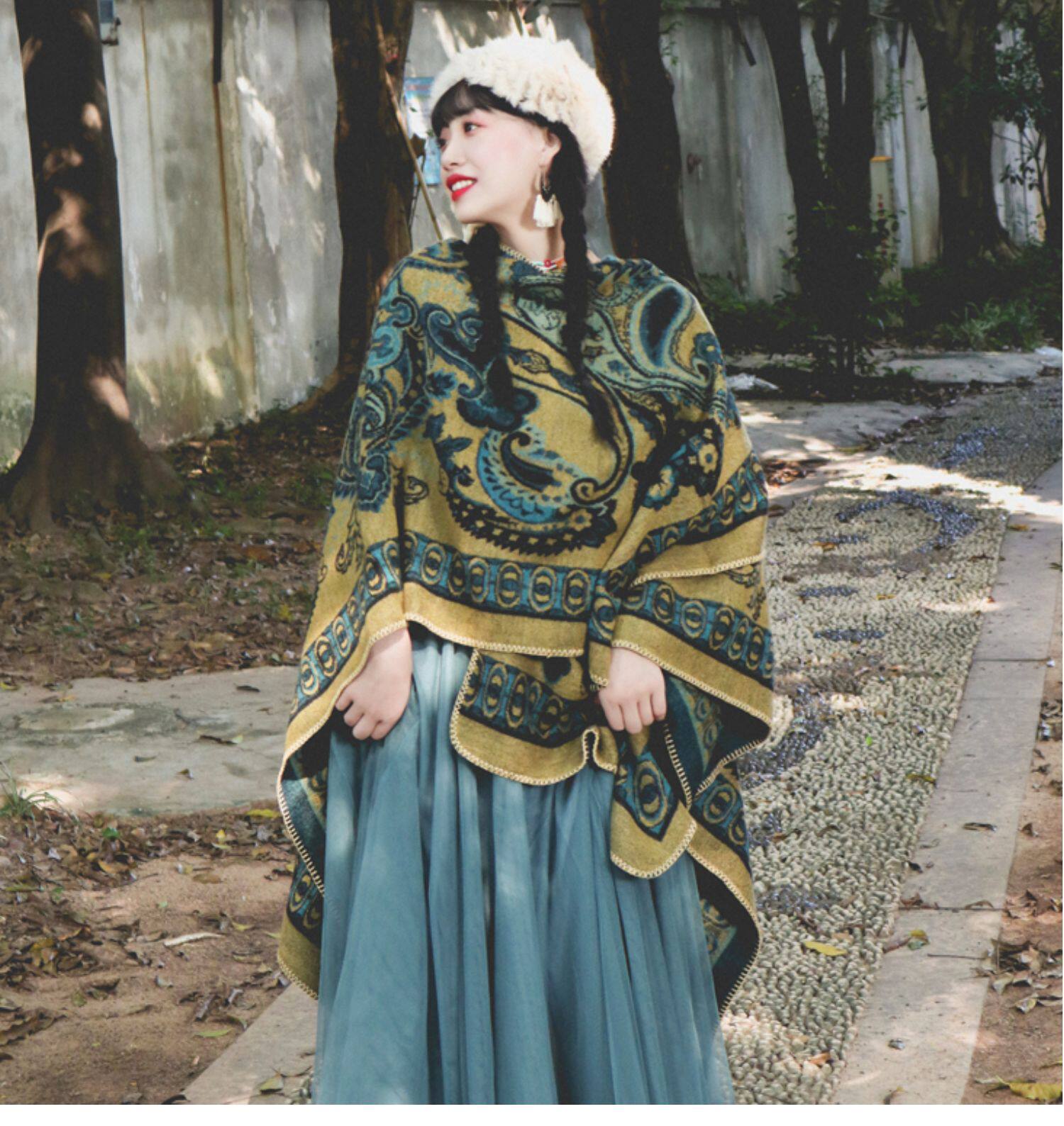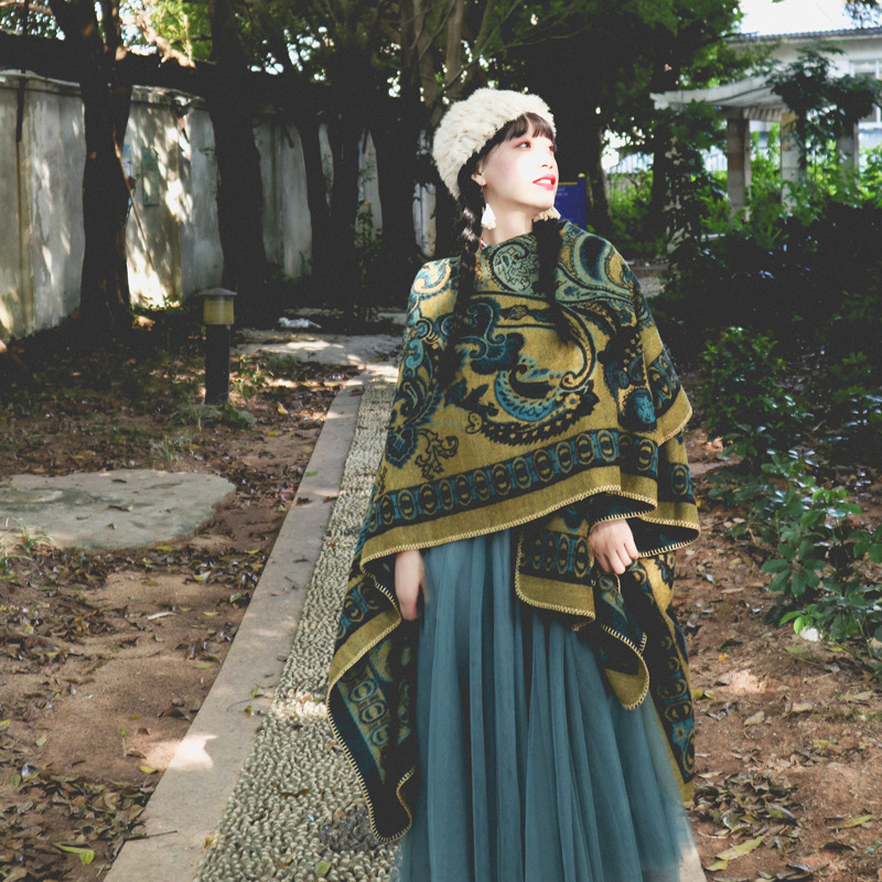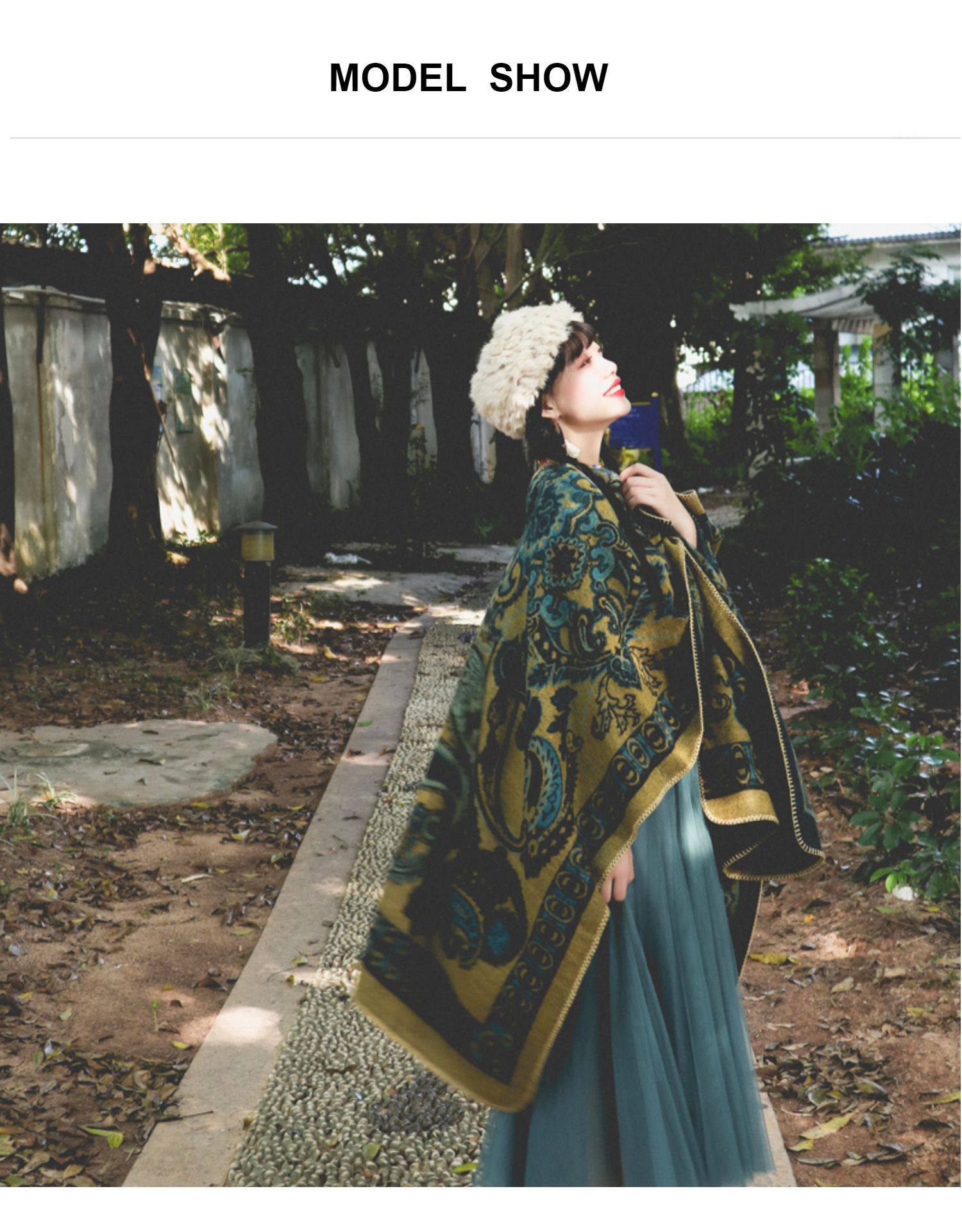 2024 가을, 겨울 새로운 복고풍 패턴 민족 스타일 휴가 따뜻한 목도리 망토 스카프 티베트 운남 여행스토어 가기