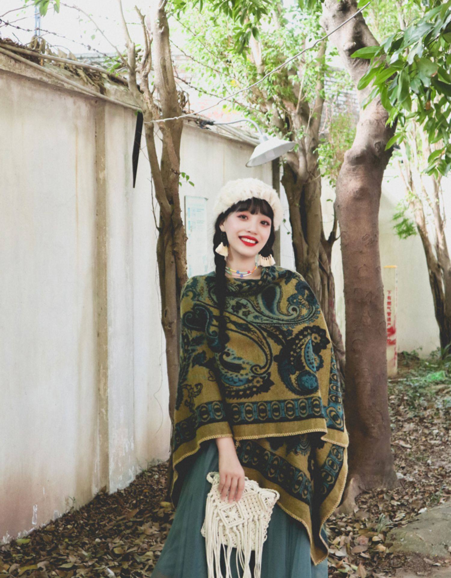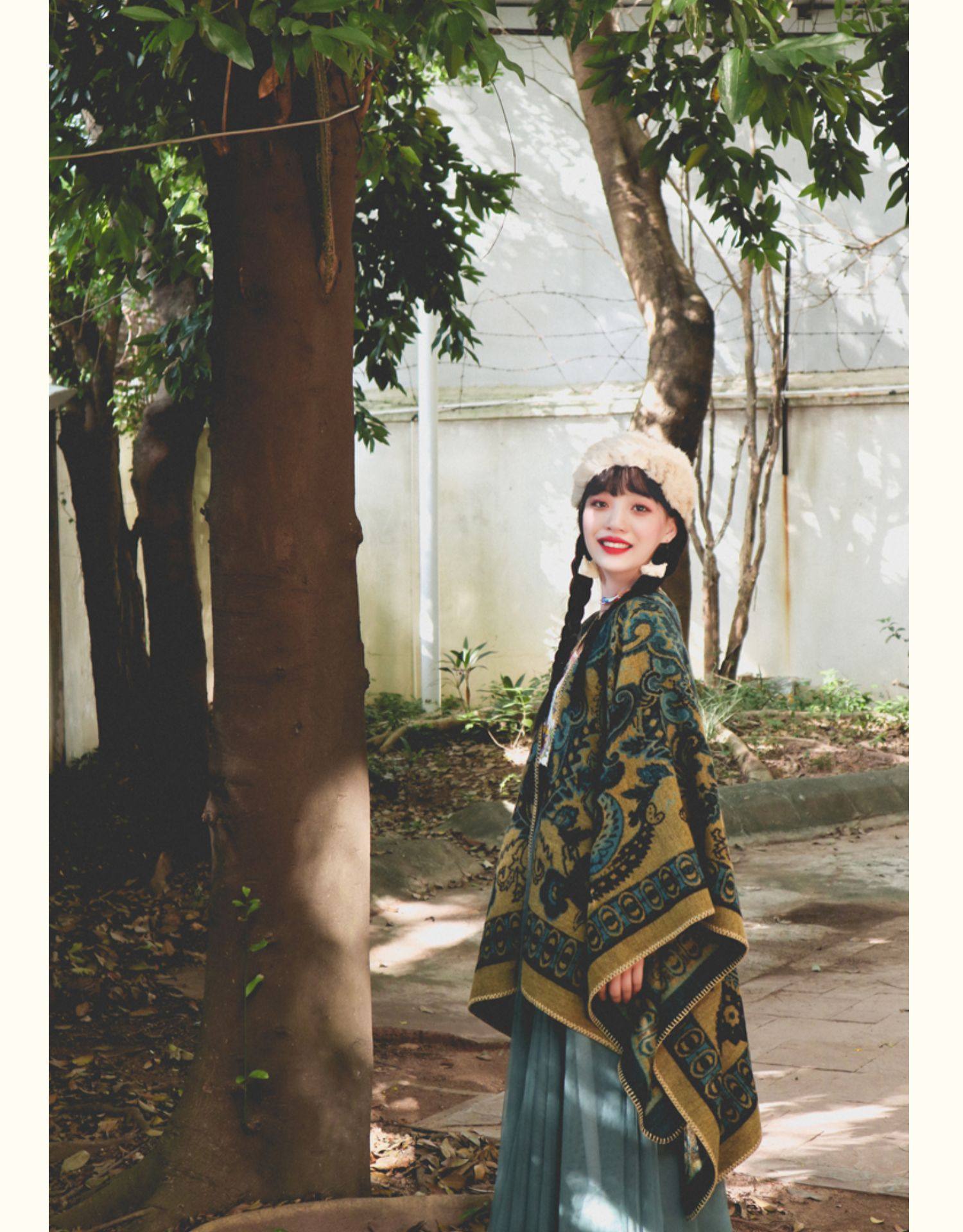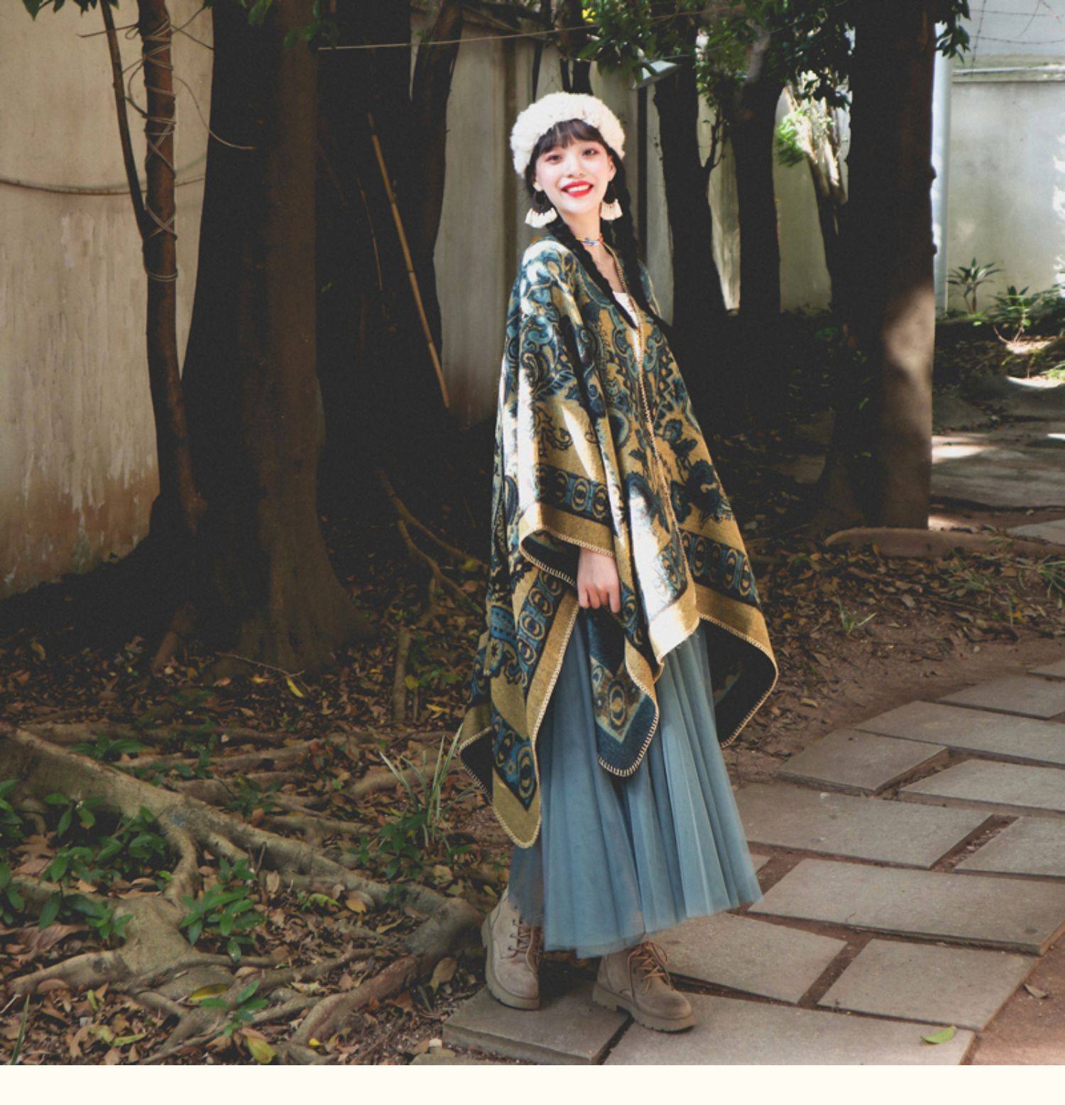 2024 가을, 겨울 새로운 복고풍 패턴 민족 스타일 휴가 따뜻한 목도리 망토 스카프 티베트 운남 여행