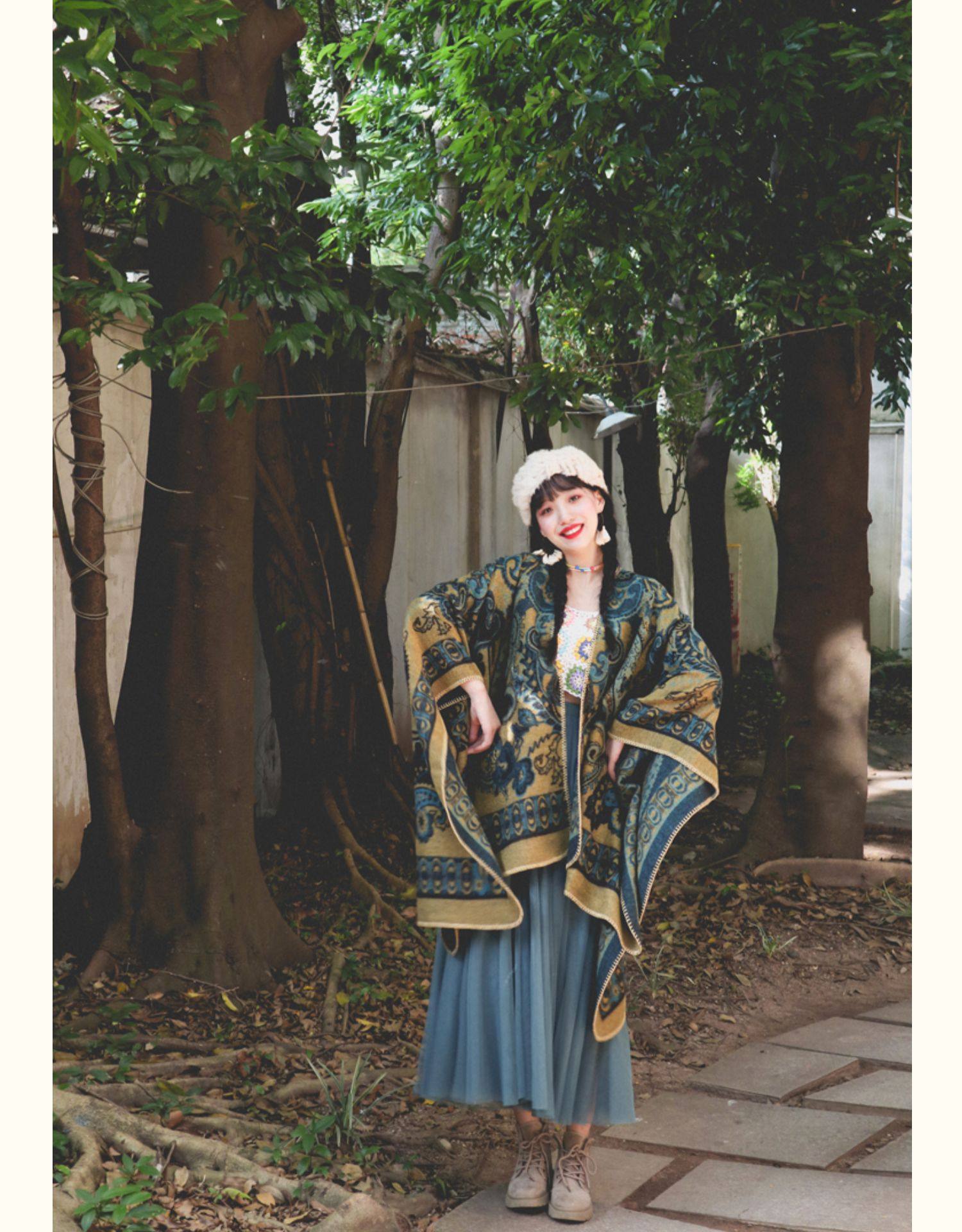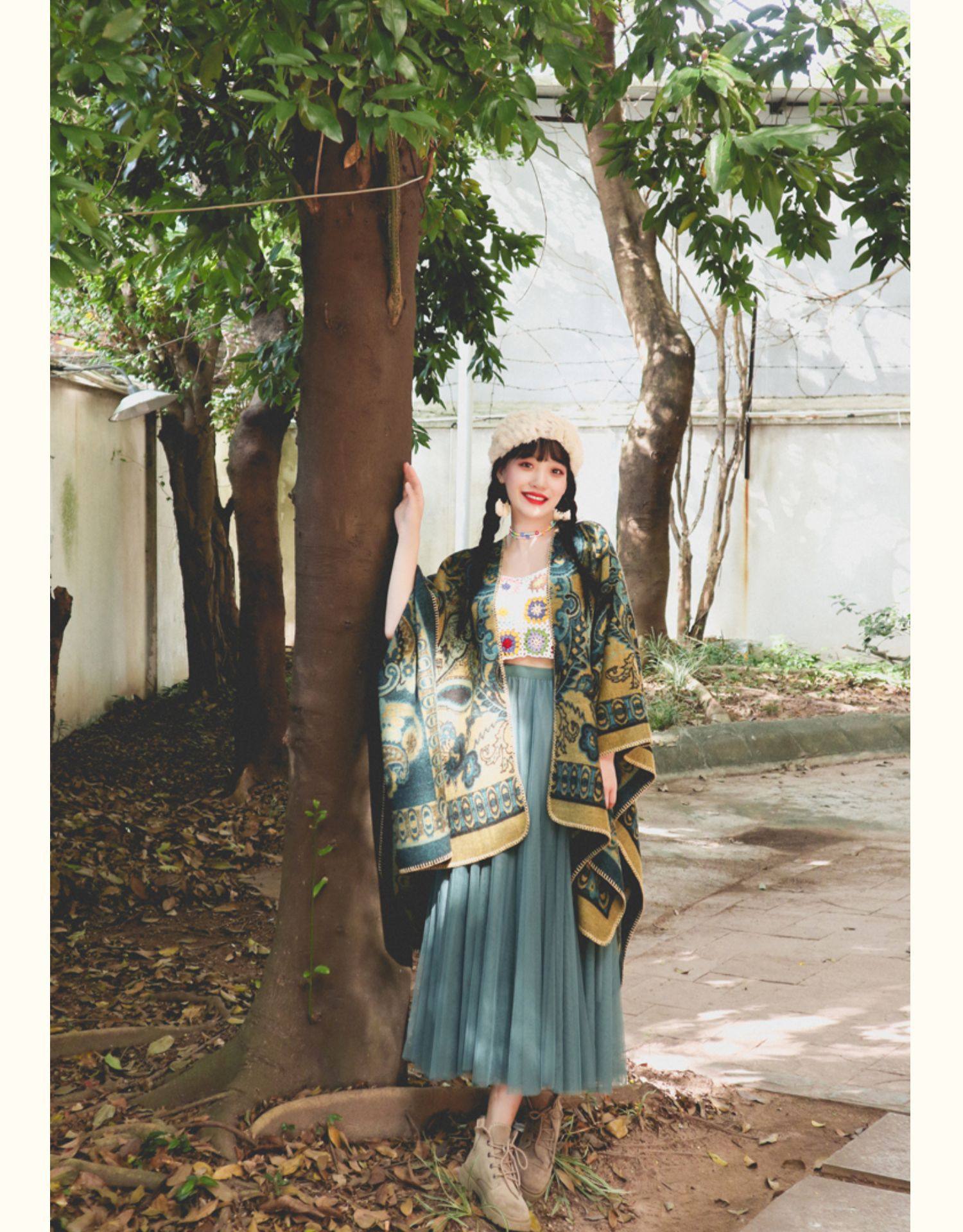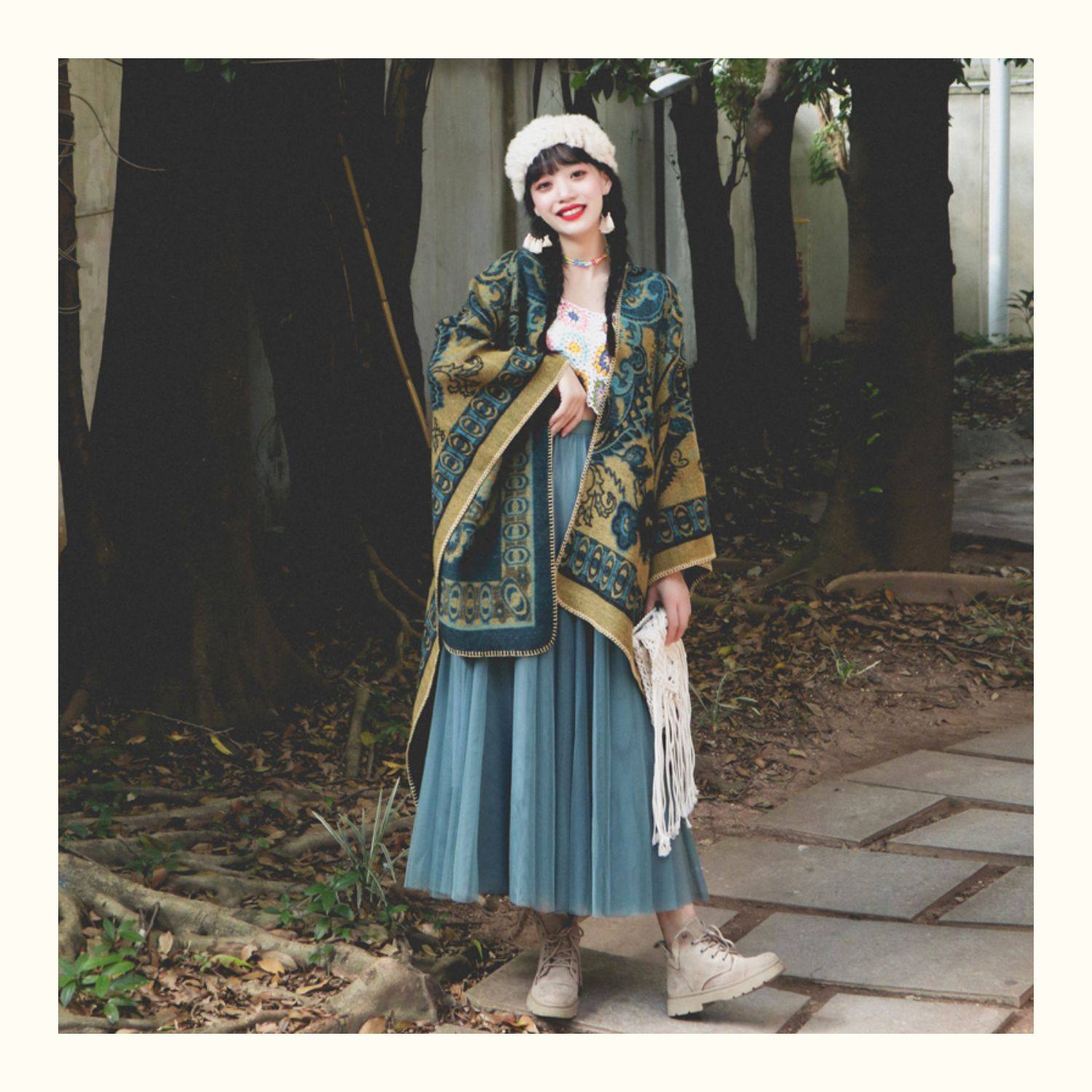 2024 가을, 겨울 새로운 복고풍 패턴 민족 스타일 휴가 따뜻한 목도리 망토 스카프 티베트 운남 여행