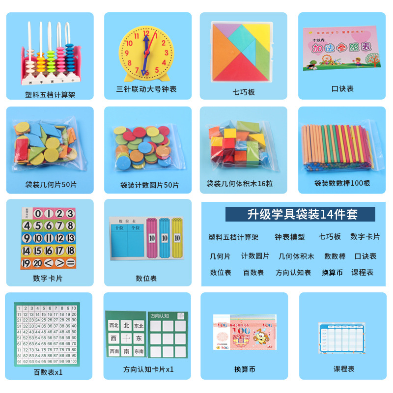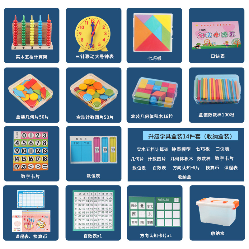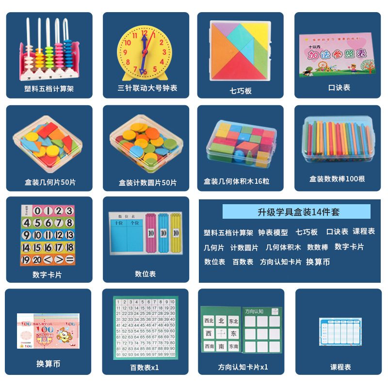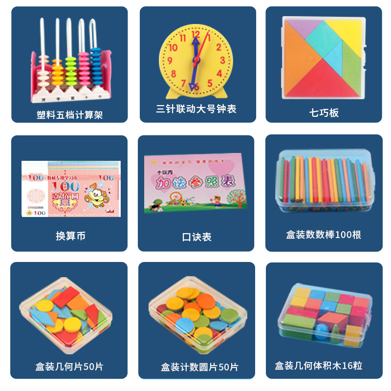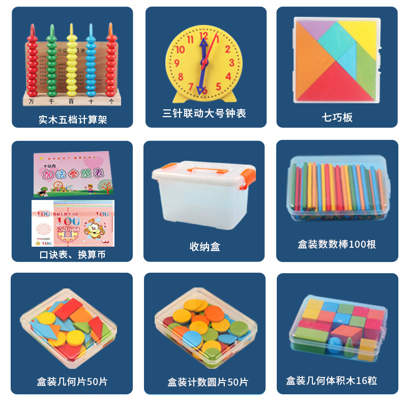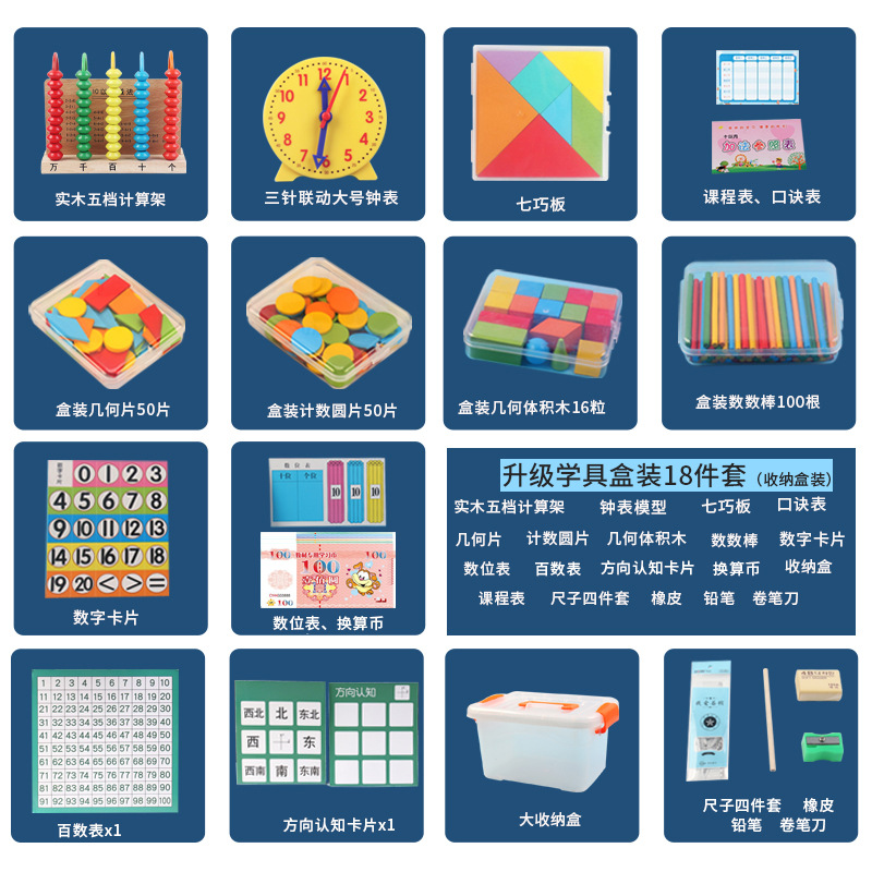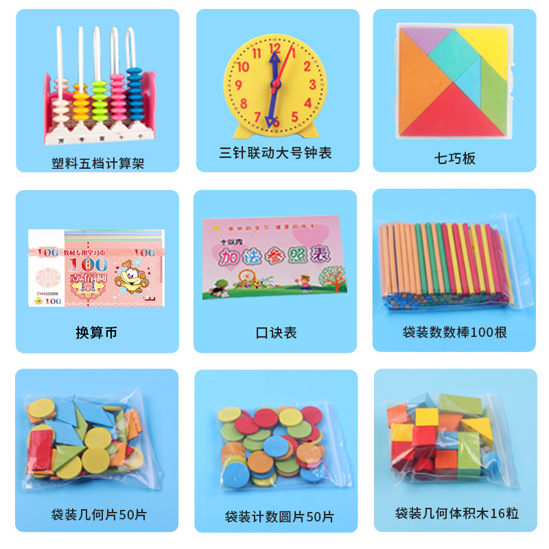 1 학년 수학 교습 보조 초등학교 기하학 입체 그림 작은 막대기 시계 직소 퍼즐 카운터 학습 도구 상자 전체 세트
