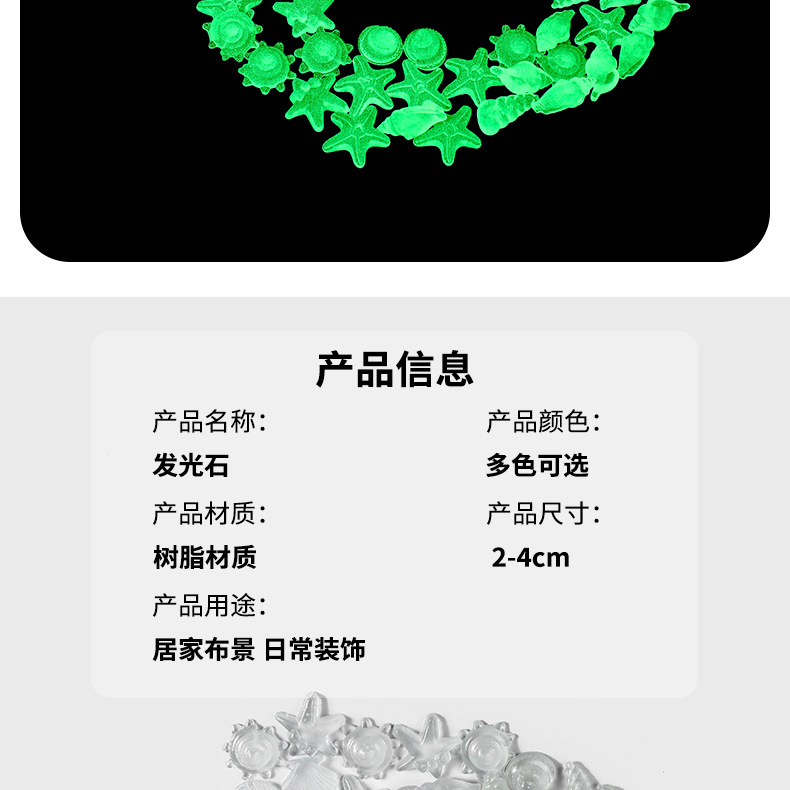 새로운 작은 해양 동물 빛나는 돌 어항 수족관 풍경 빛나는 돌 소라 쉘 형광 자갈스토어 가기