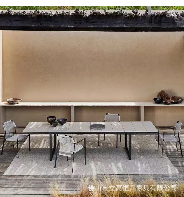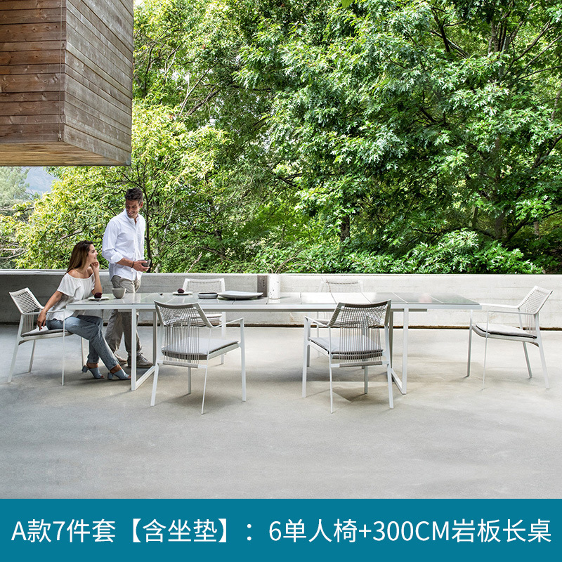 북유럽 스타일 야외 라탄 테이블과 의자, 거실 테라스 식탁, 야외 1인용 소파 의자, 빌라 정원용 긴 테이블스토어 가기