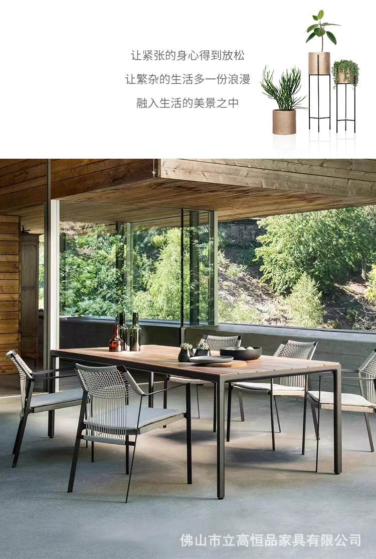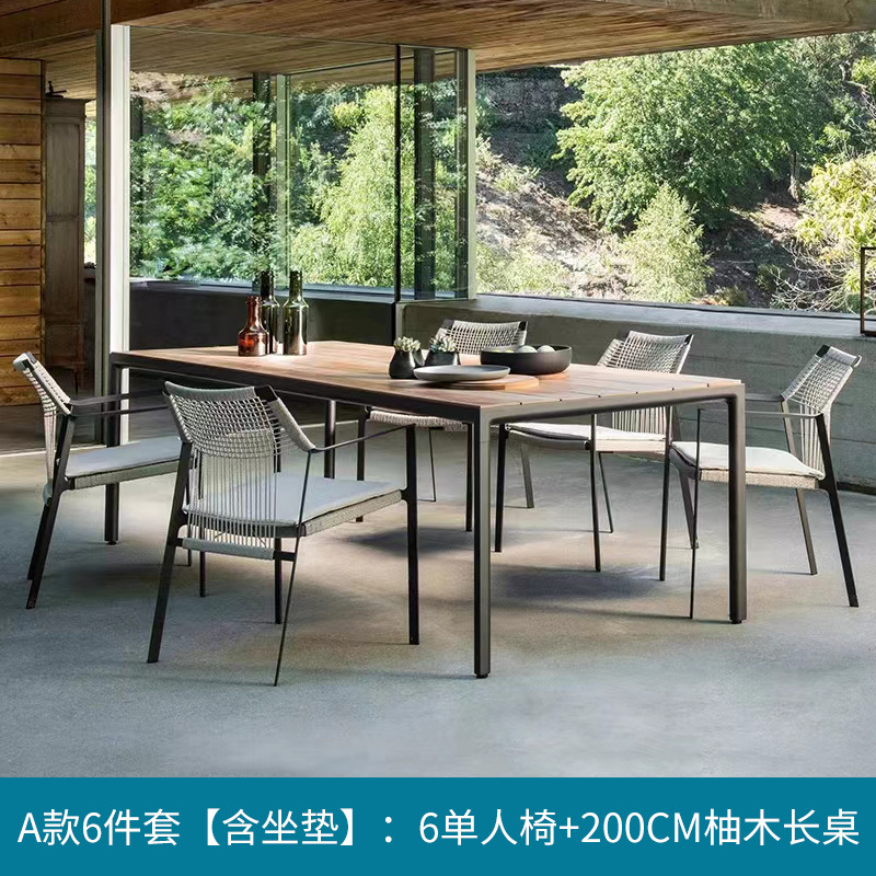 북유럽 스타일 야외 라탄 테이블과 의자, 거실 테라스 식탁, 야외 1인용 소파 의자, 빌라 정원용 긴 테이블