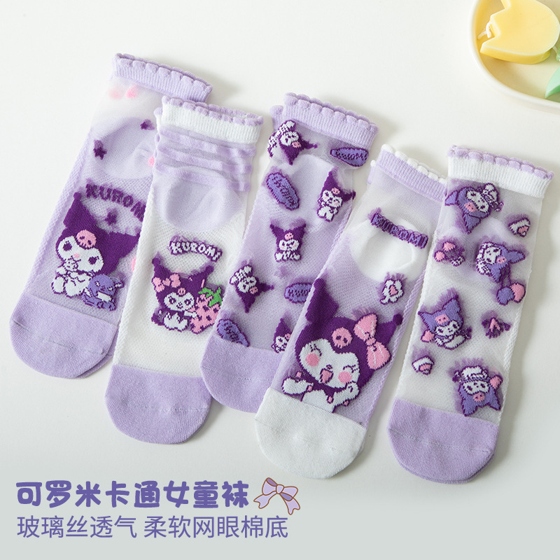 Culomi 여름 얇은 소녀 어린이 면 양말 크리스탈 스타킹 통기성 메쉬 귀여운 공주 아기 양말