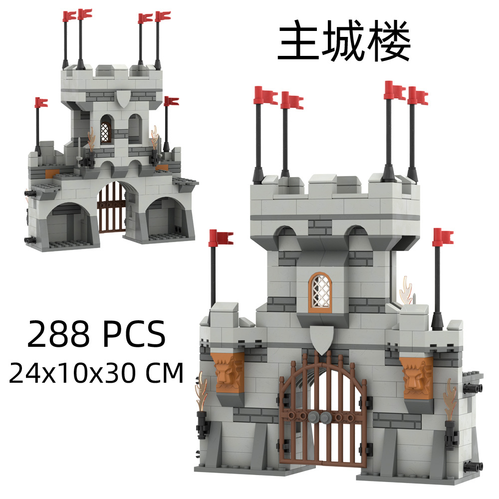 MOC 사자 요새 성 모듈 식 도시 벽 타워 포탑 중세 군사 군인 미치광이 장면 장식품