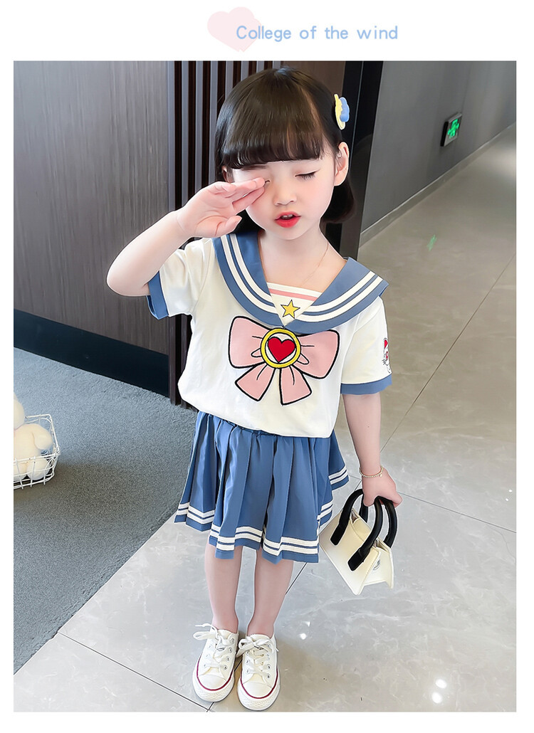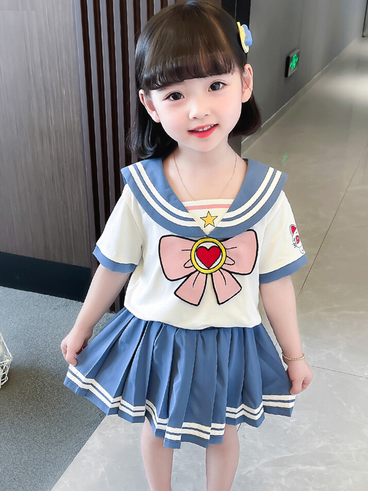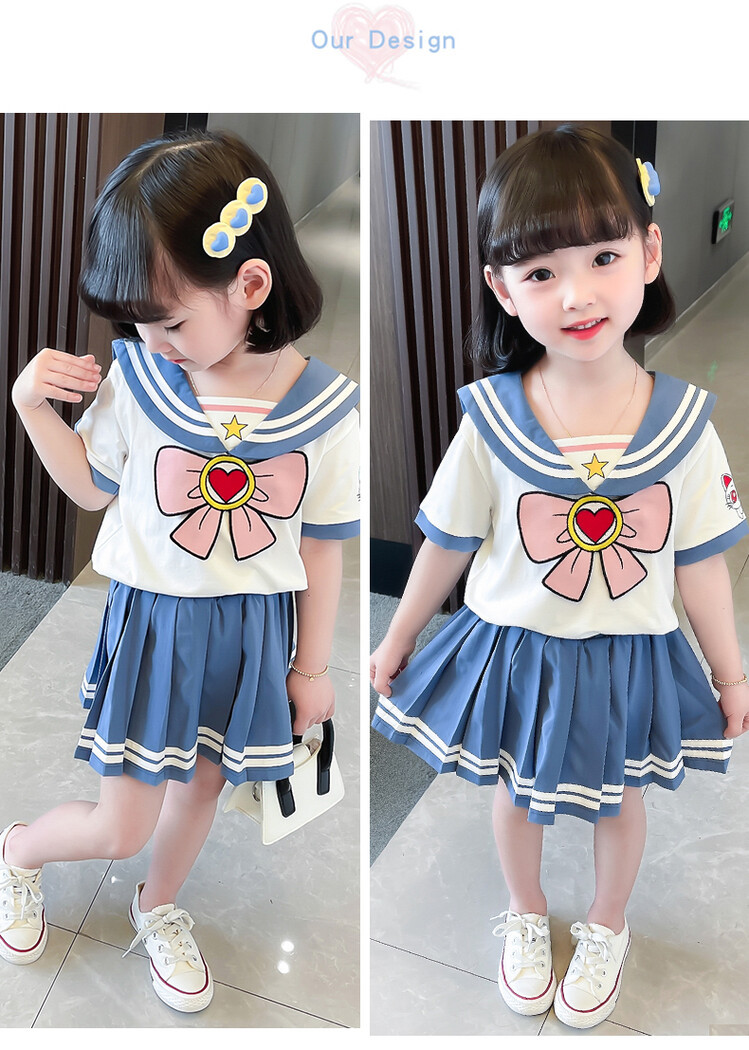 소녀 여름 원피스 아카데미 스타일 세트 JK 유니폼 원피스 어린이 여름 원피스 어린 소녀 아기 주름 치마