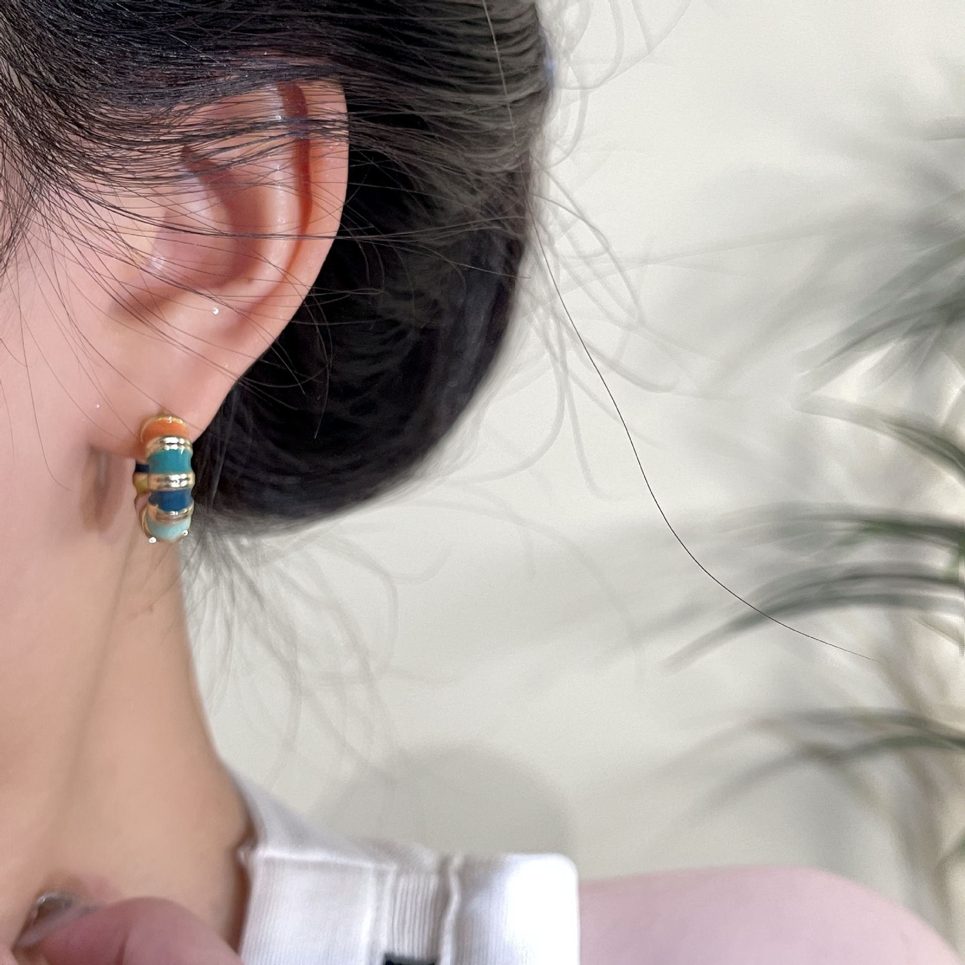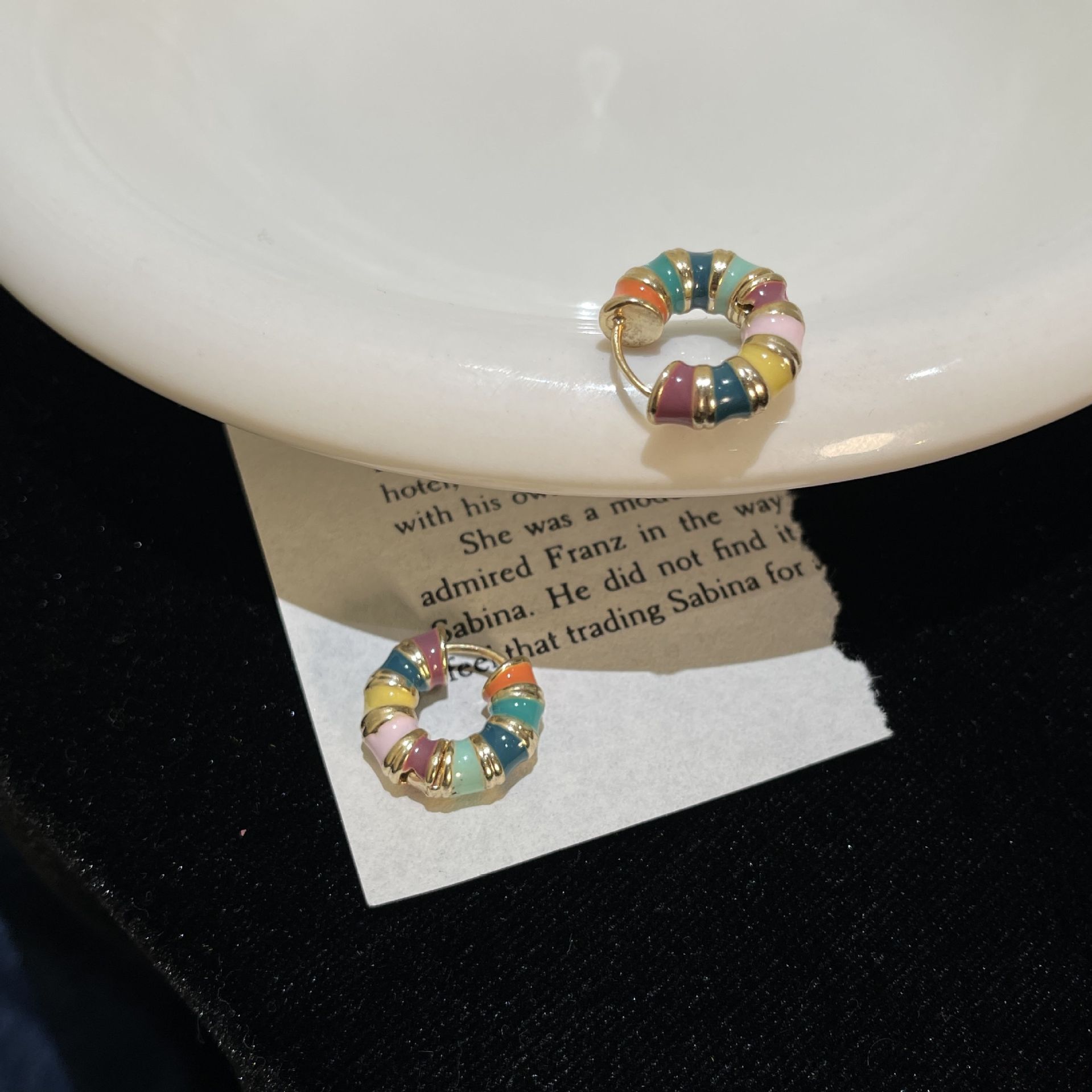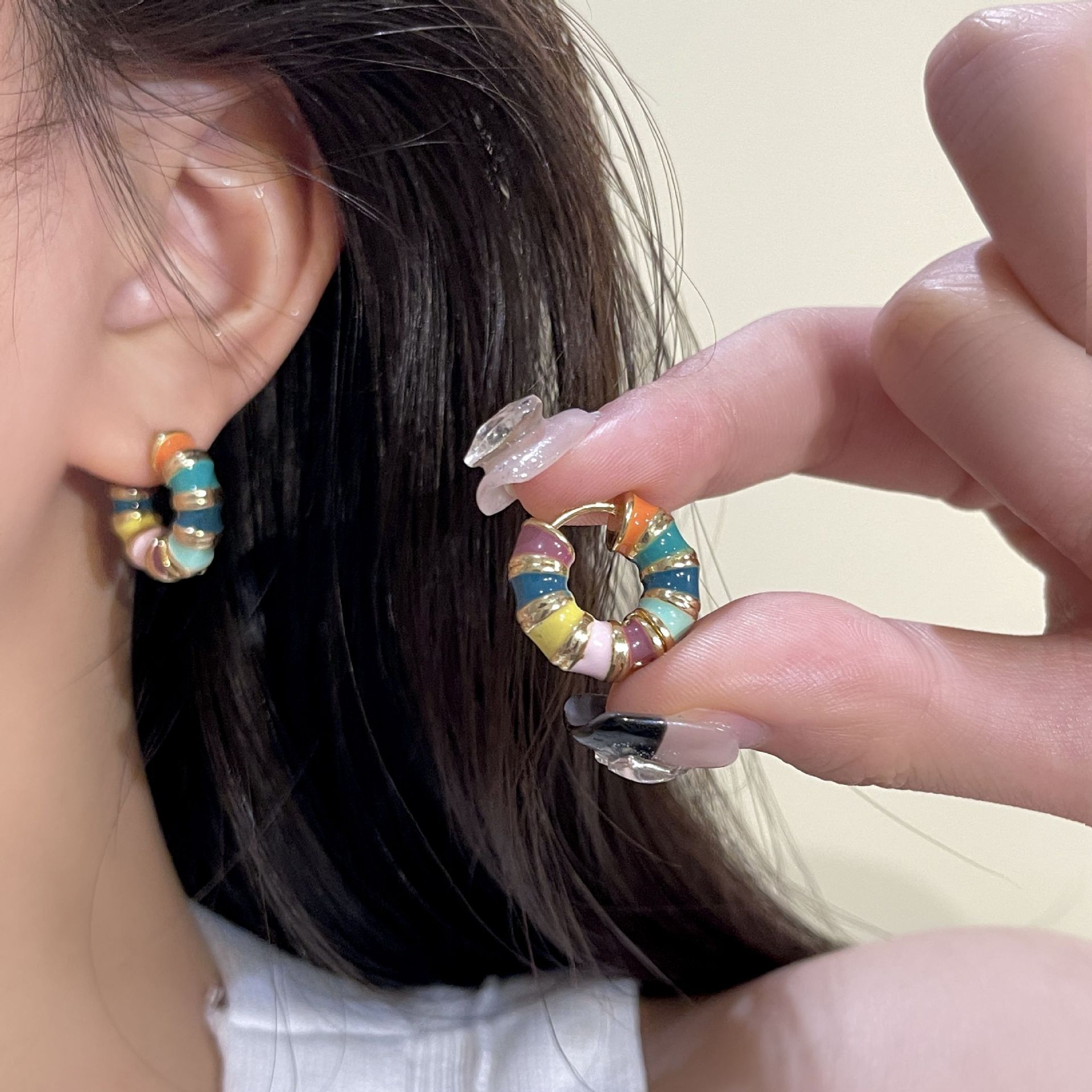 유럽과 미국의 틈새 색상 드롭 유약 링 에나멜 귀 버클 여성 패션 레트로 귀 링이있는 그물 빨강 도매