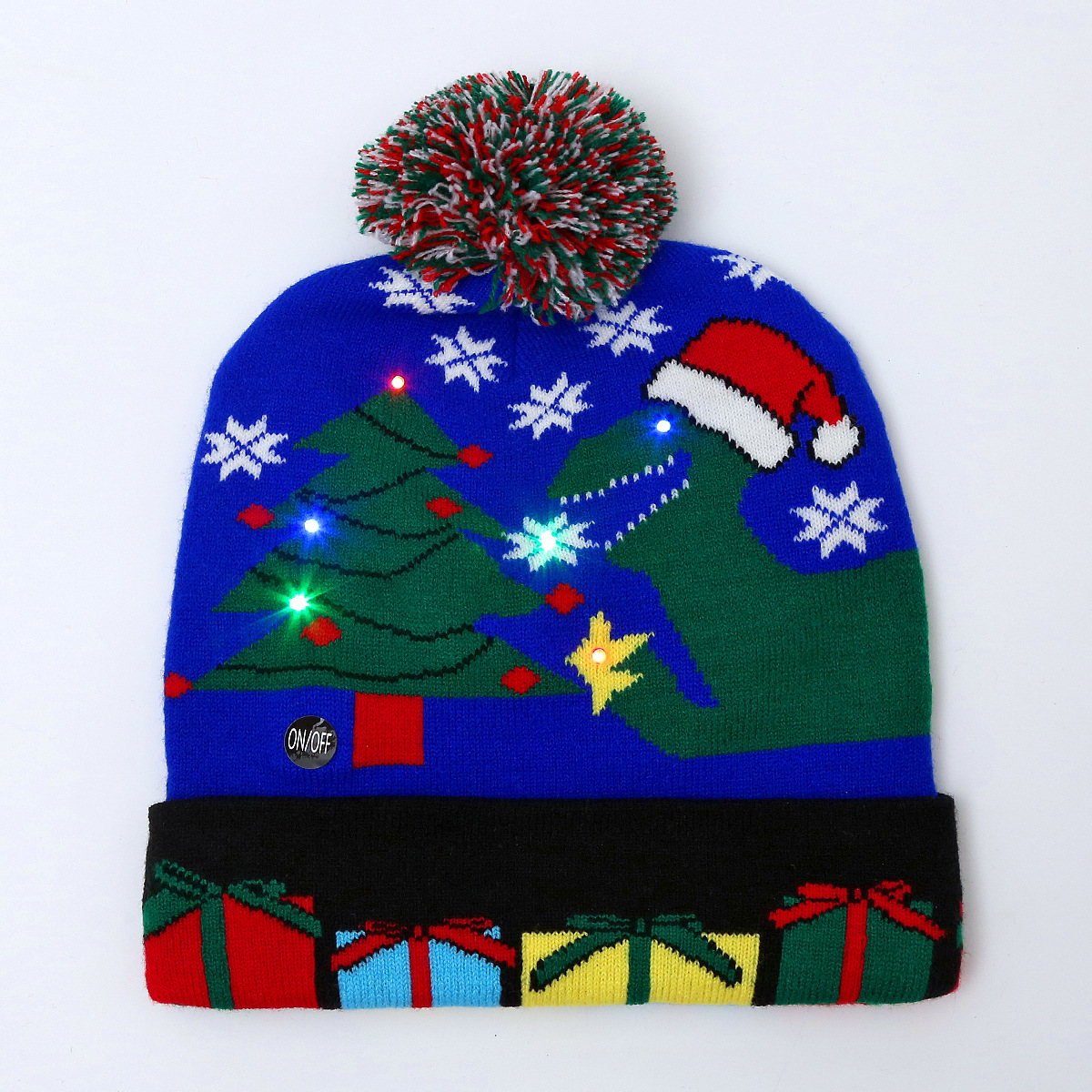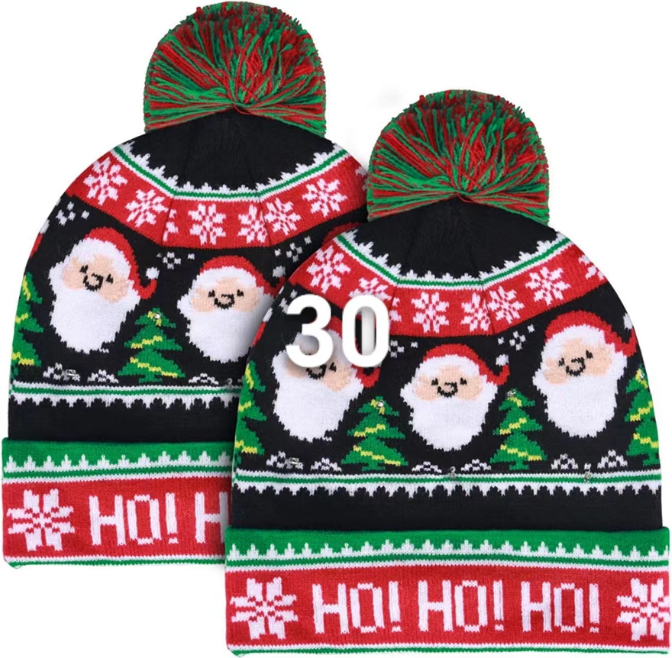 정품 원사 전체 아크릴 자카드 LED 크리스마스 모직 모자 가을, 겨울 따뜻한 니트 크리스마스 모자스토어 가기