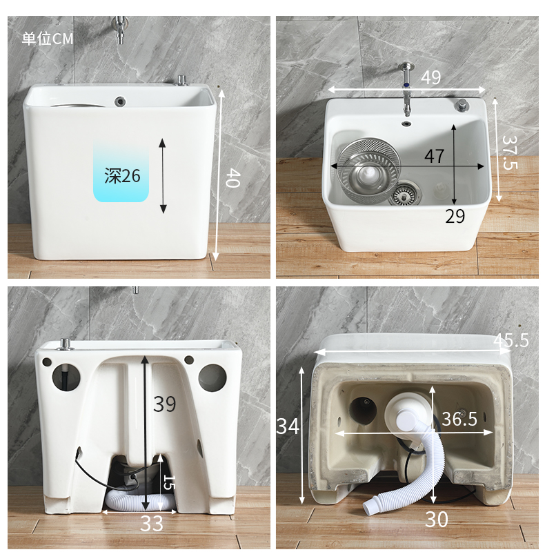 새로운 듀얼 드라이브 걸레 수영장 발코니 가정용 걸레 수영장 바닥 분지 욕실 세라믹 걸레 바닥 걸레 수영장 대형