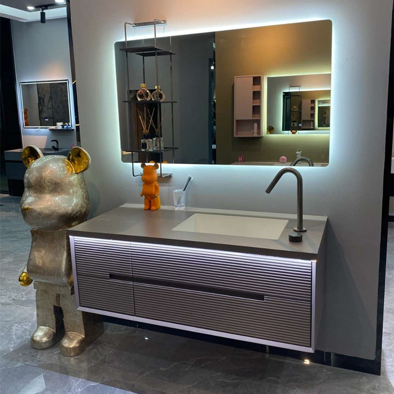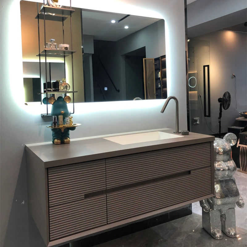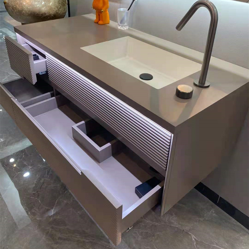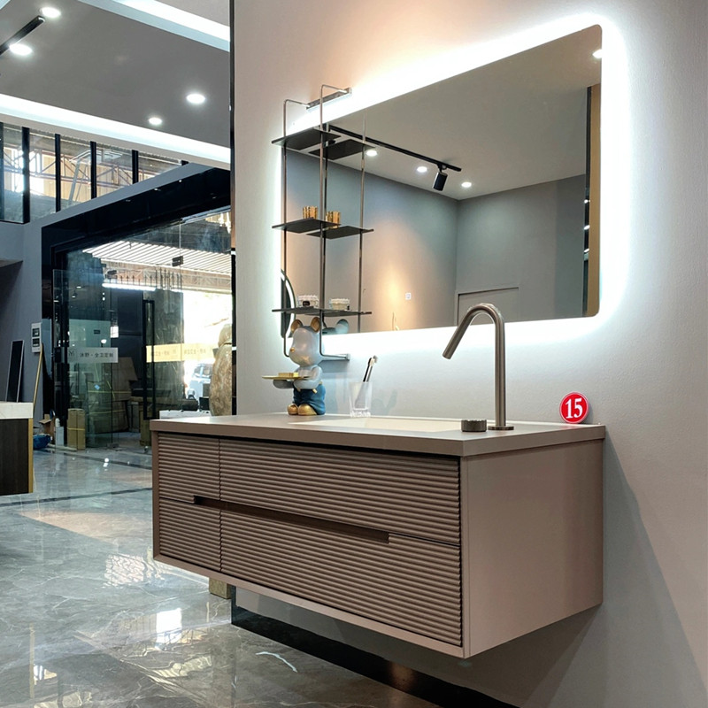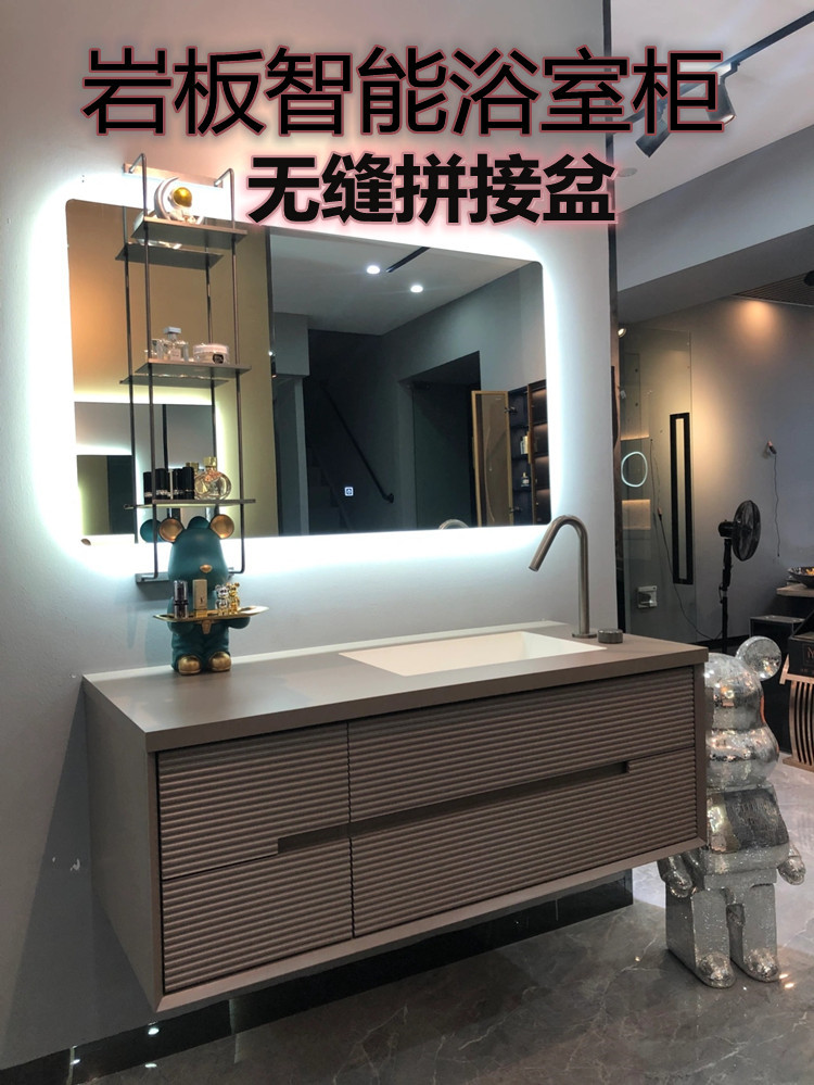 간단한 현대 바위 보드 원활한 통합 분지 오크 욕실 캐비닛 조합 욕실 얼굴 세척 테이블 분지스토어 가기