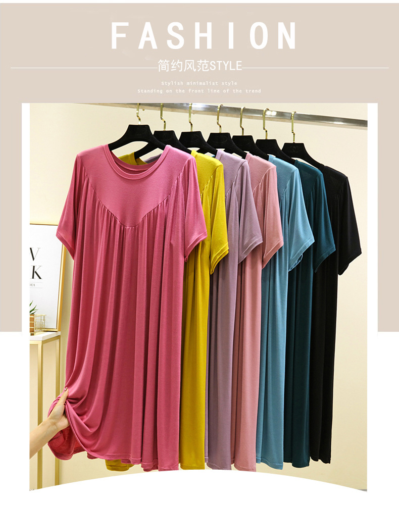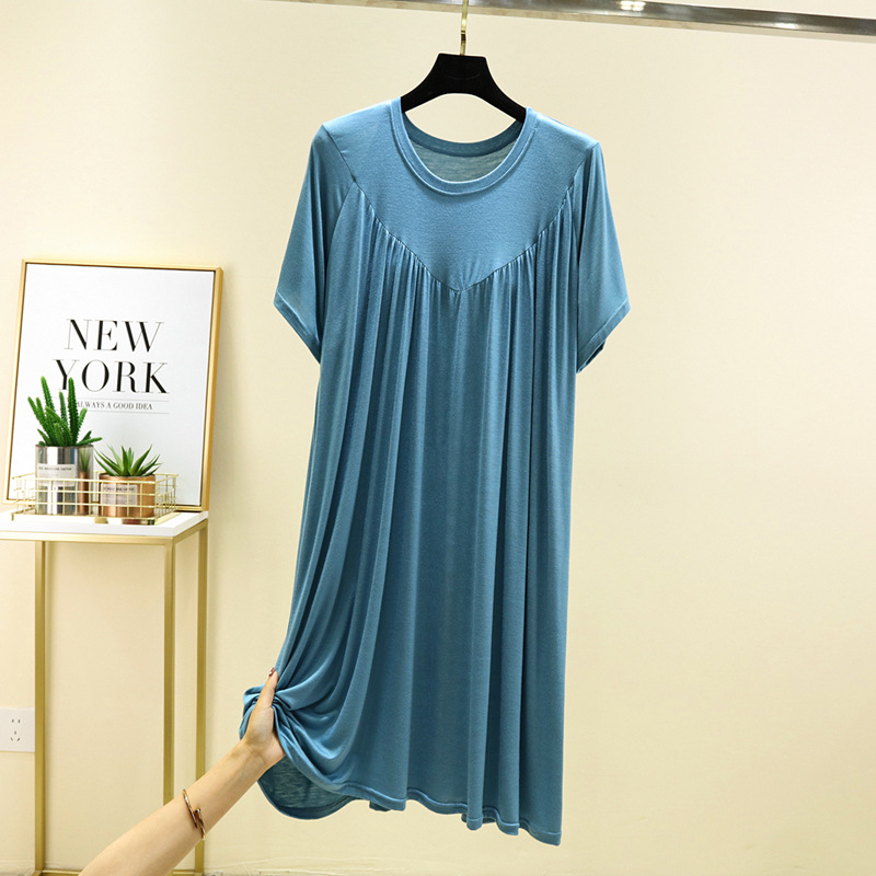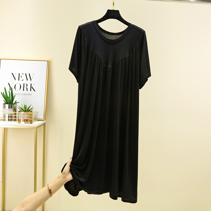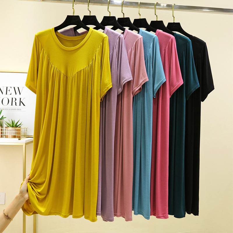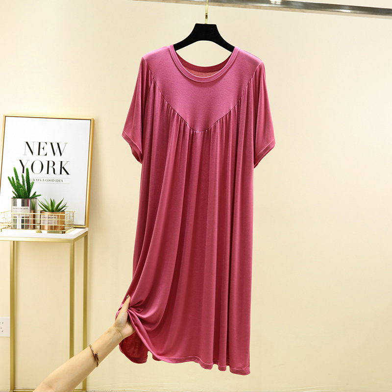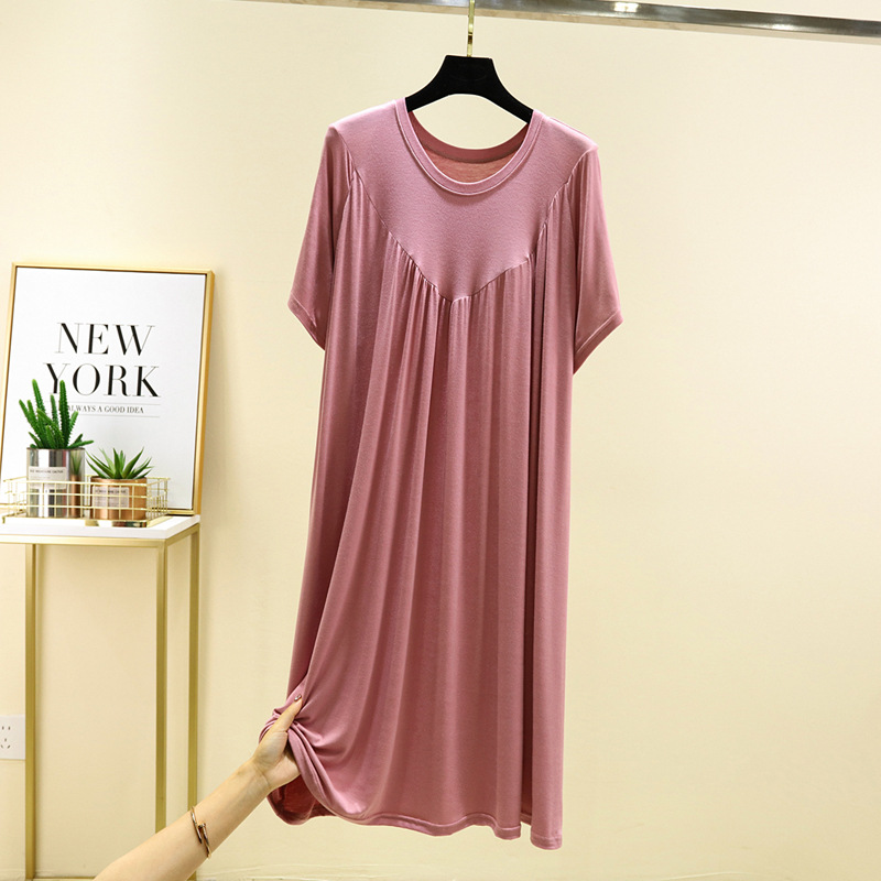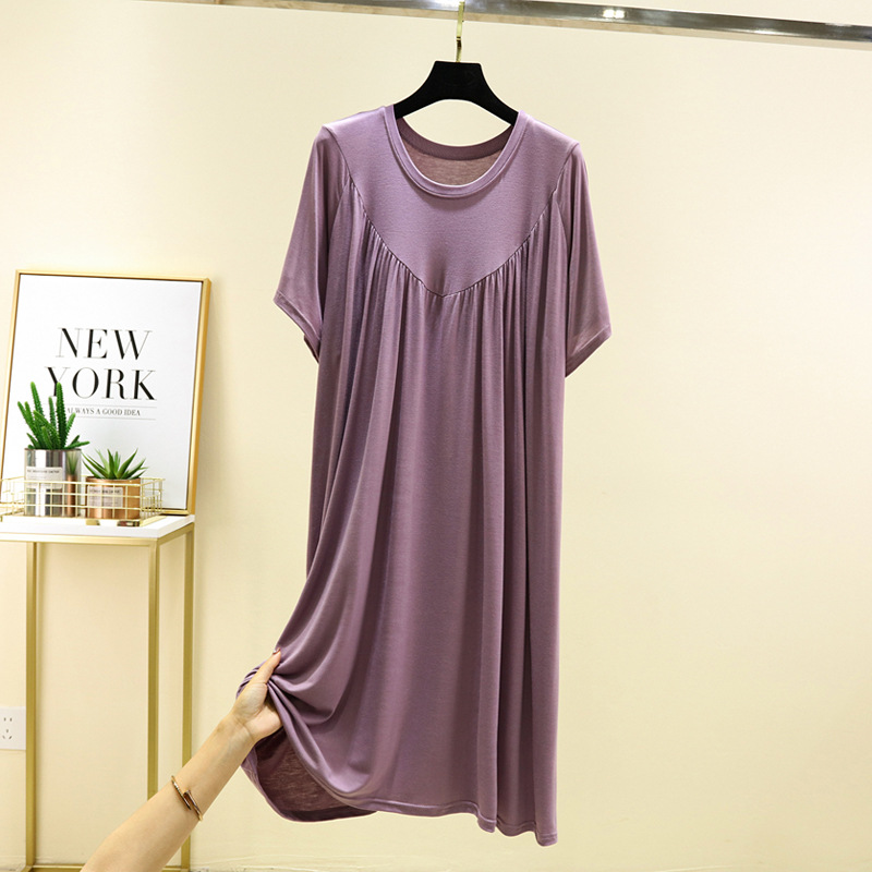 여자의 여름 새로운 얇은 비 브래지어 잠옷 가슴 패드 모달 느슨한 플러스 사이즈 주름 반팔 가정 의류스토어 가기