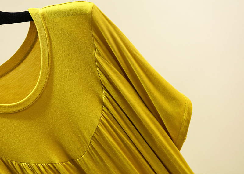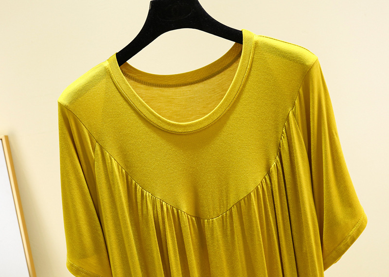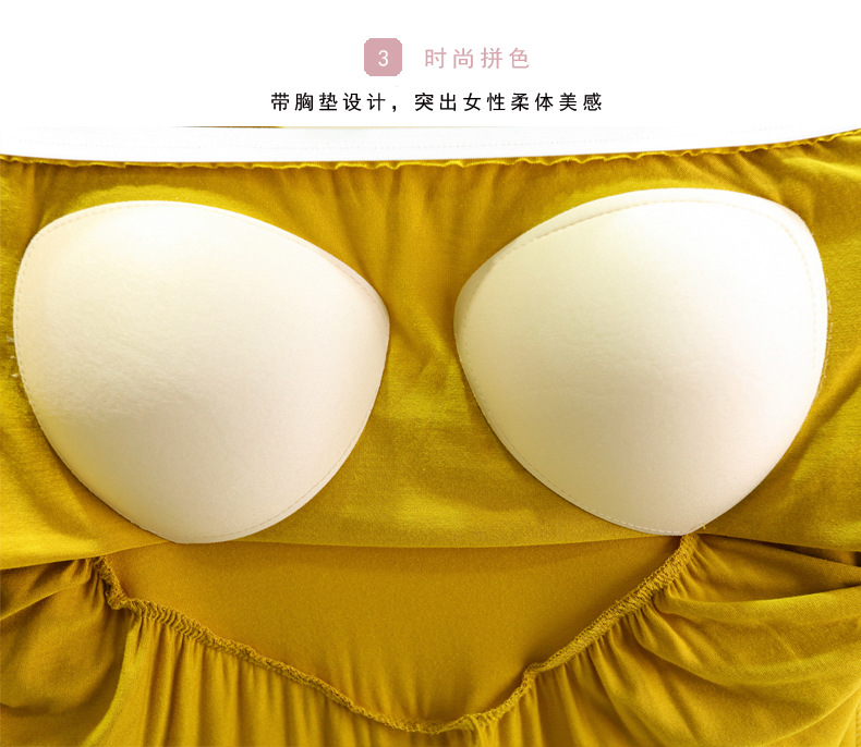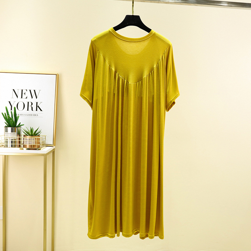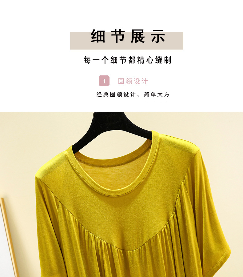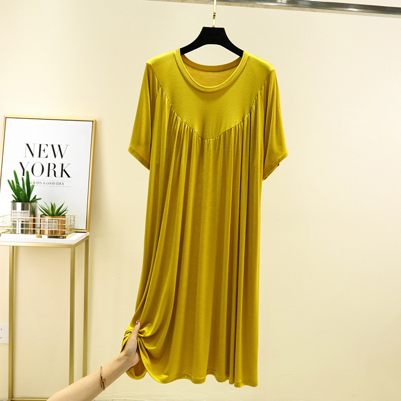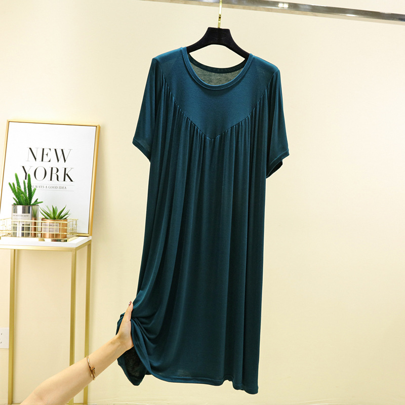 여자의 여름 새로운 얇은 비 브래지어 잠옷 가슴 패드 모달 느슨한 플러스 사이즈 주름 반팔 가정 의류스토어 가기