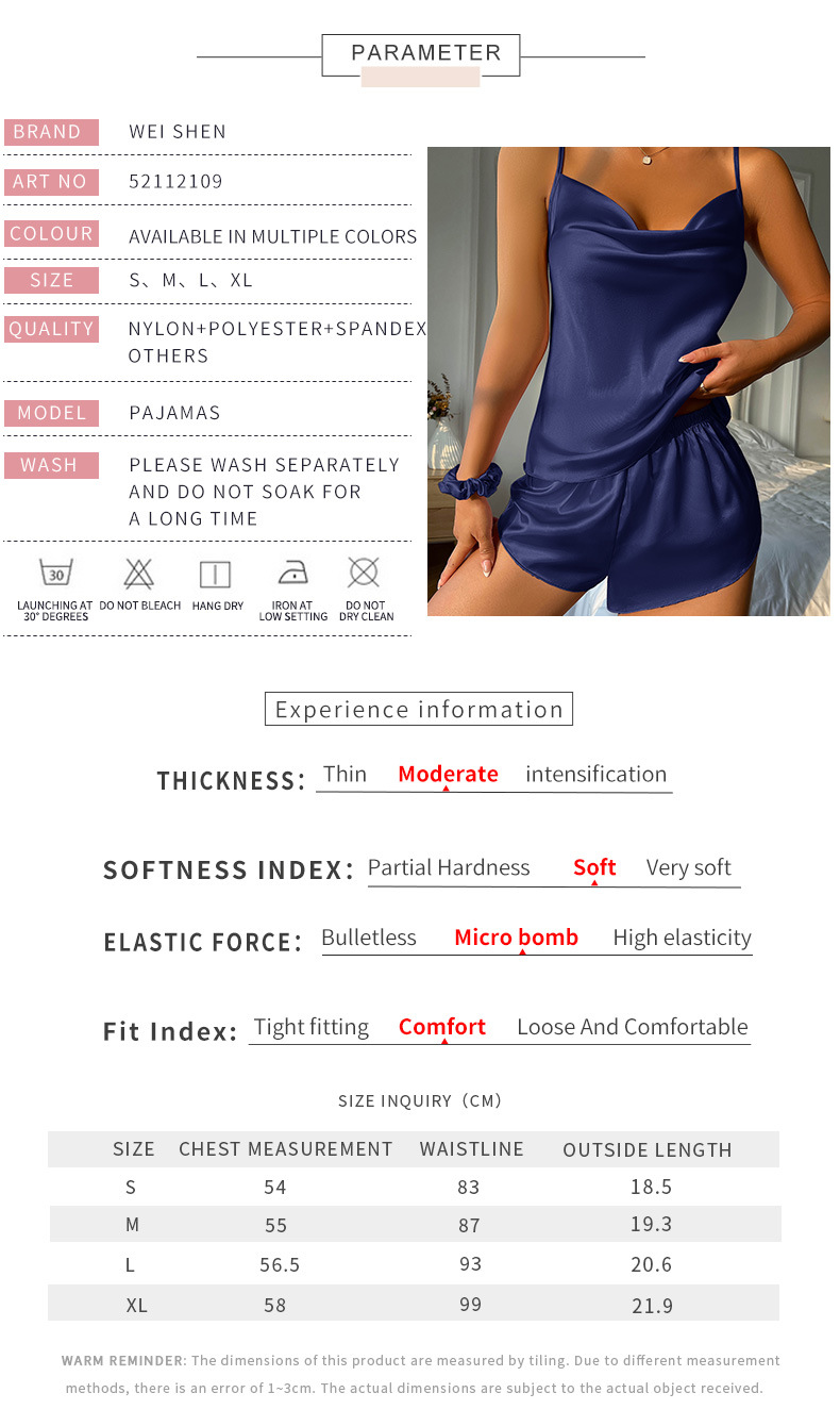 국경 숙녀 홈웨어 3 피스 세트 등이없는 서스펜더 반바지 정장 섹시한 봄, 여름 여성을위한 간단한 얼음 실크 잠옷