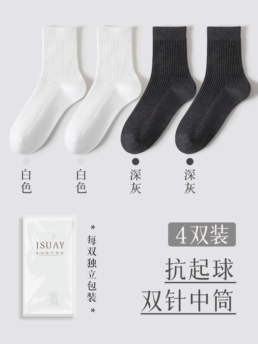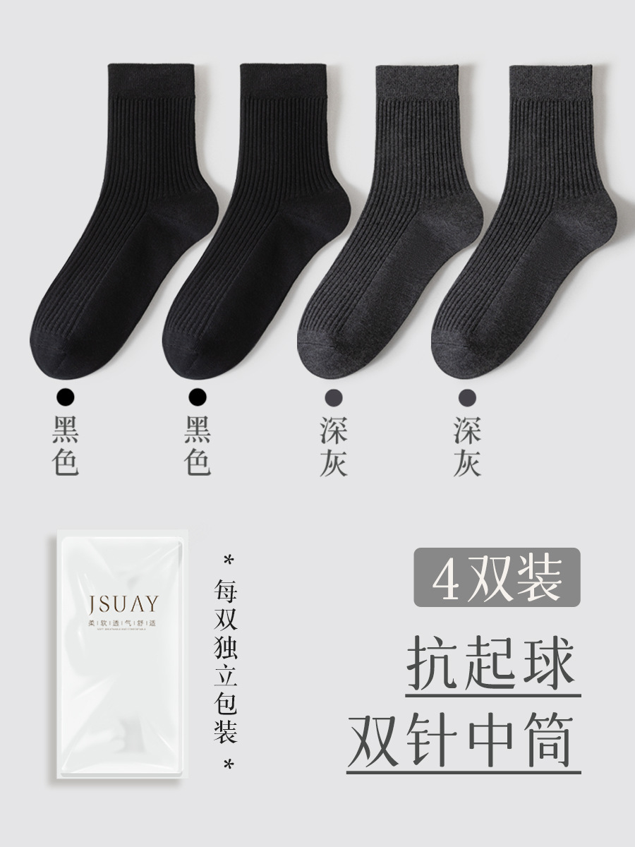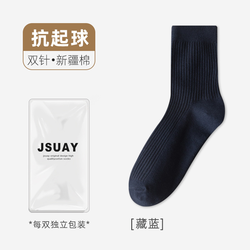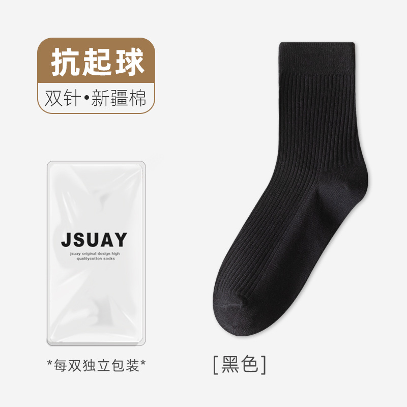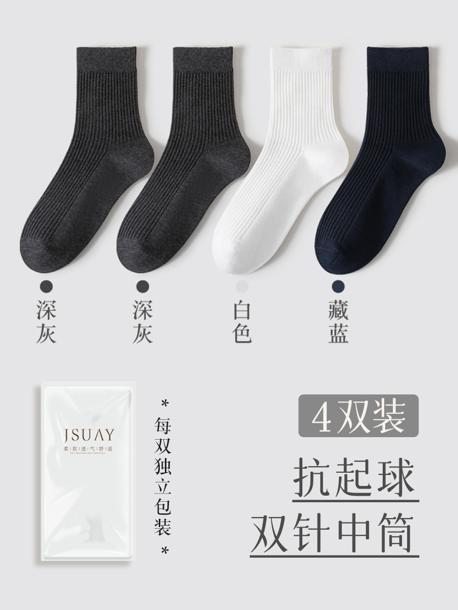 남성용 가을 면양말, 이중 바늘 단색 비즈니스 중목 양말, 일본 스타일 다용도 땀 흡수 통기성 캐주얼 양말 도매스토어 가기