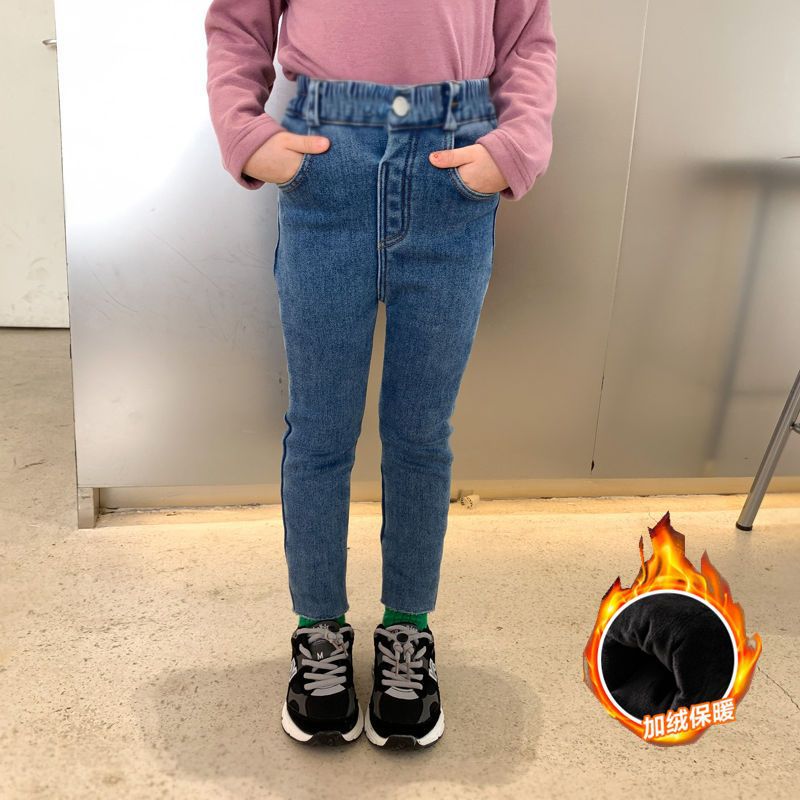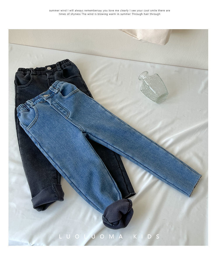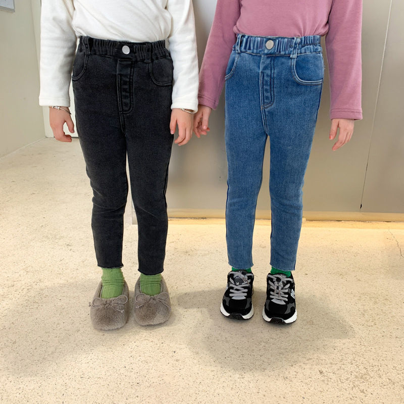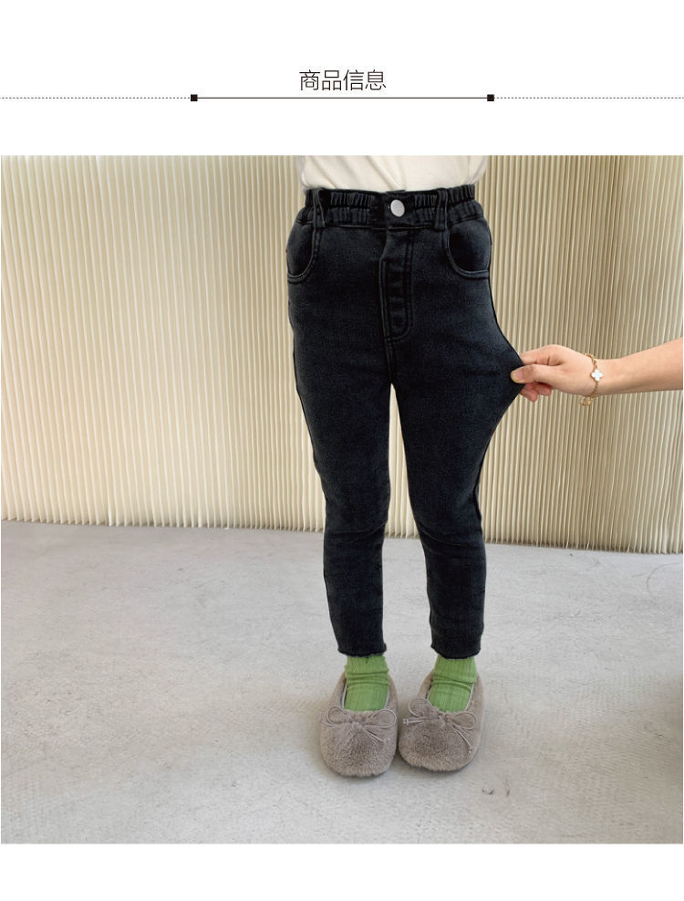 여아 블랙 기모 원피스 양털 슬림핏 소프트 진 가을 겨울 2023 신형 아동 발 바지 트렌디 아우터