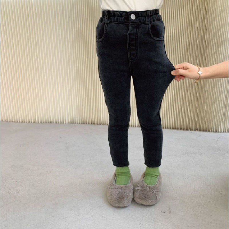 여아 블랙 기모 원피스 양털 슬림핏 소프트 진 가을 겨울 2023 신형 아동 발 바지 트렌디 아우터스토어 가기