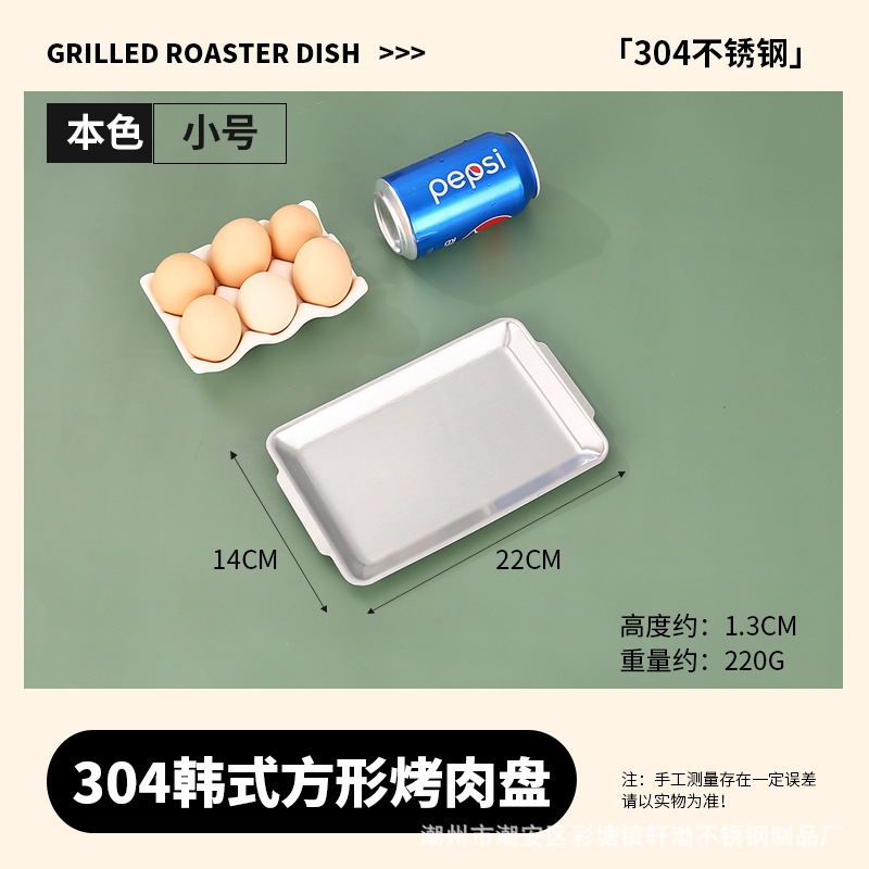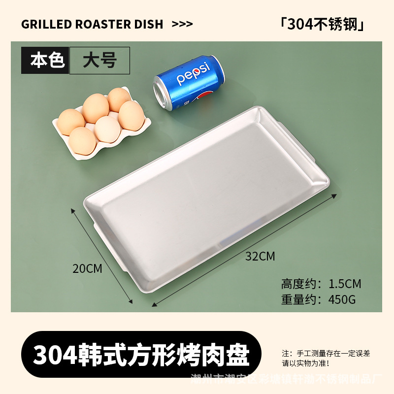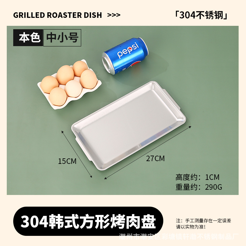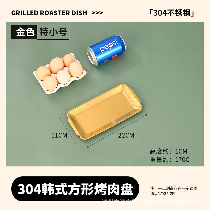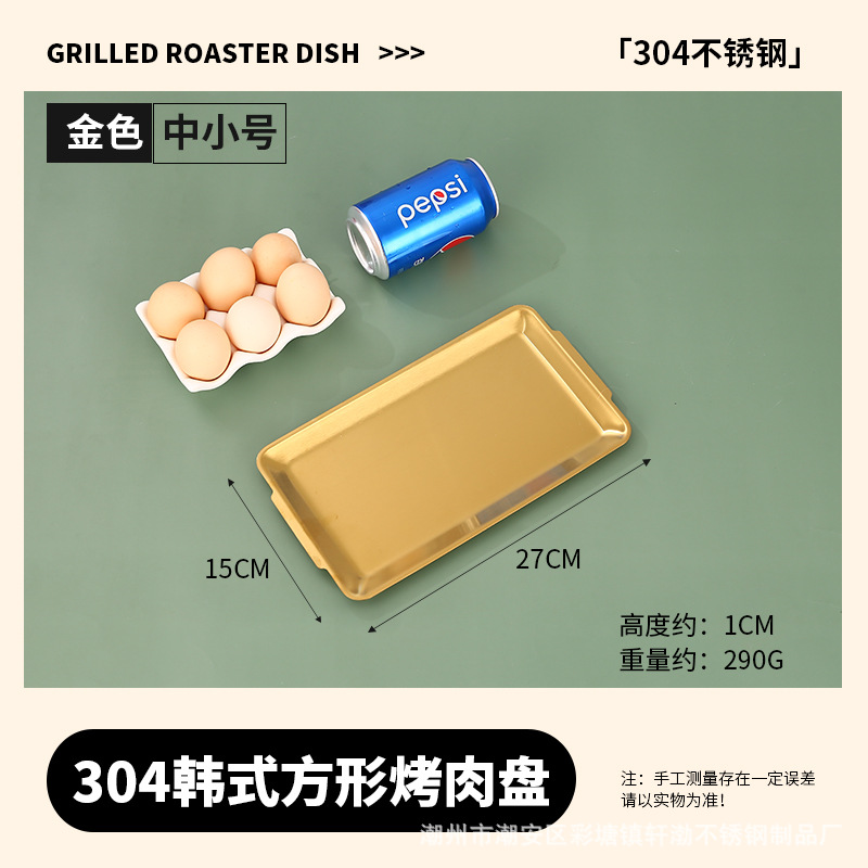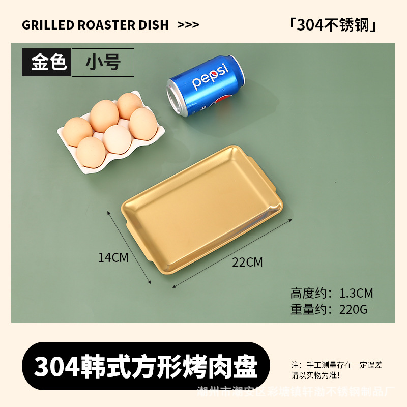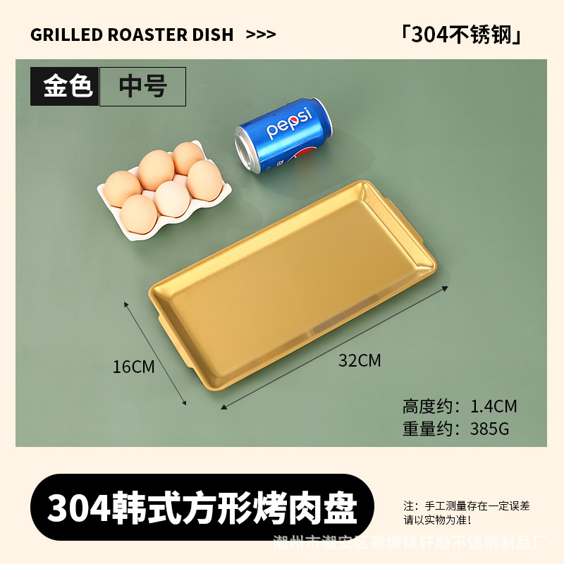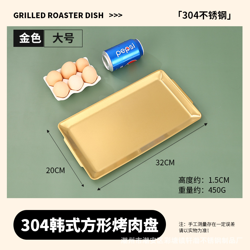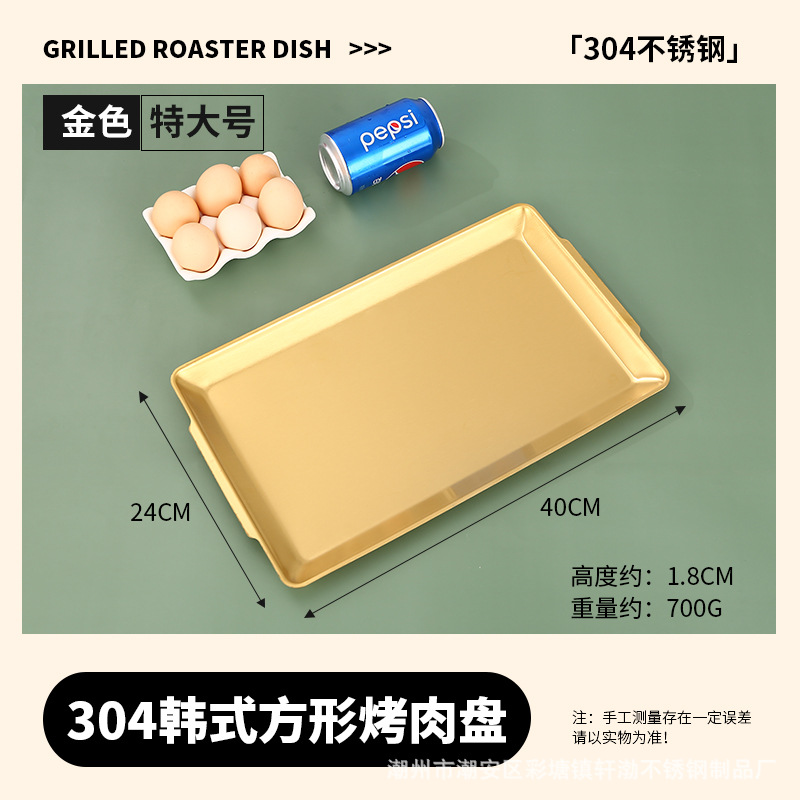 한국식 304 스테인레스 스틸 직사각형 바베큐 접시 상업용 바베큐 접시 스시 접시 골든 트레이 두꺼운 저장 접시