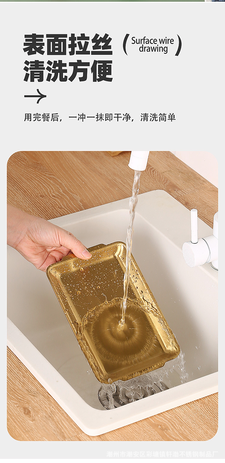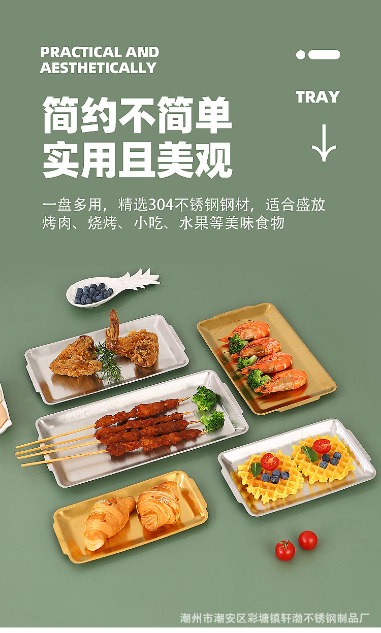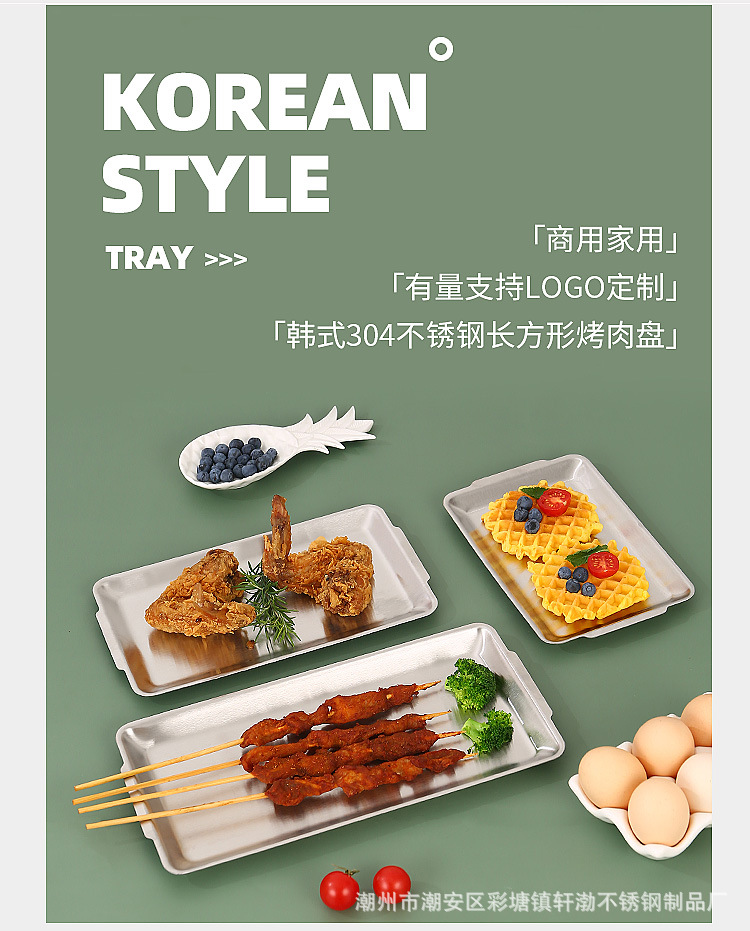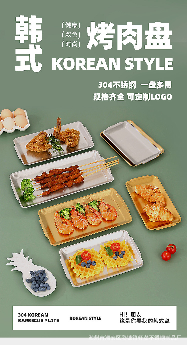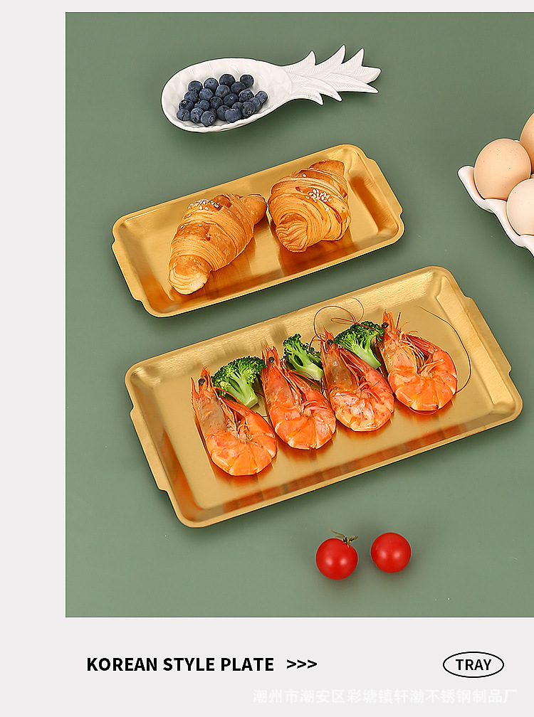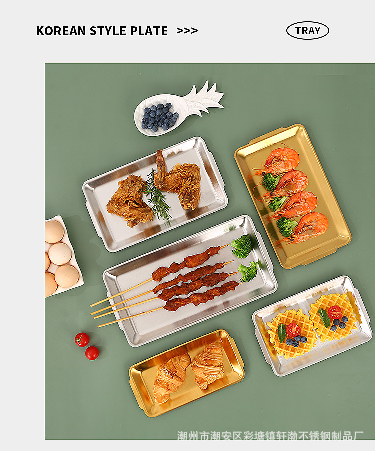 한국식 304 스테인레스 스틸 직사각형 바베큐 접시 상업용 바베큐 접시 스시 접시 골든 트레이 두꺼운 저장 접시