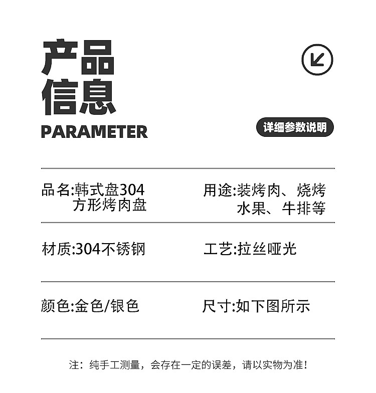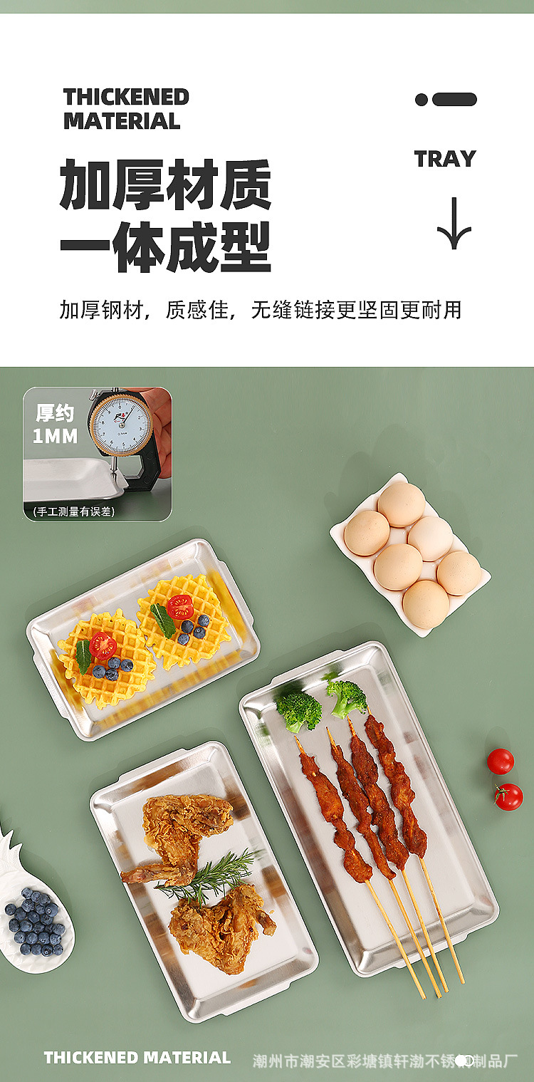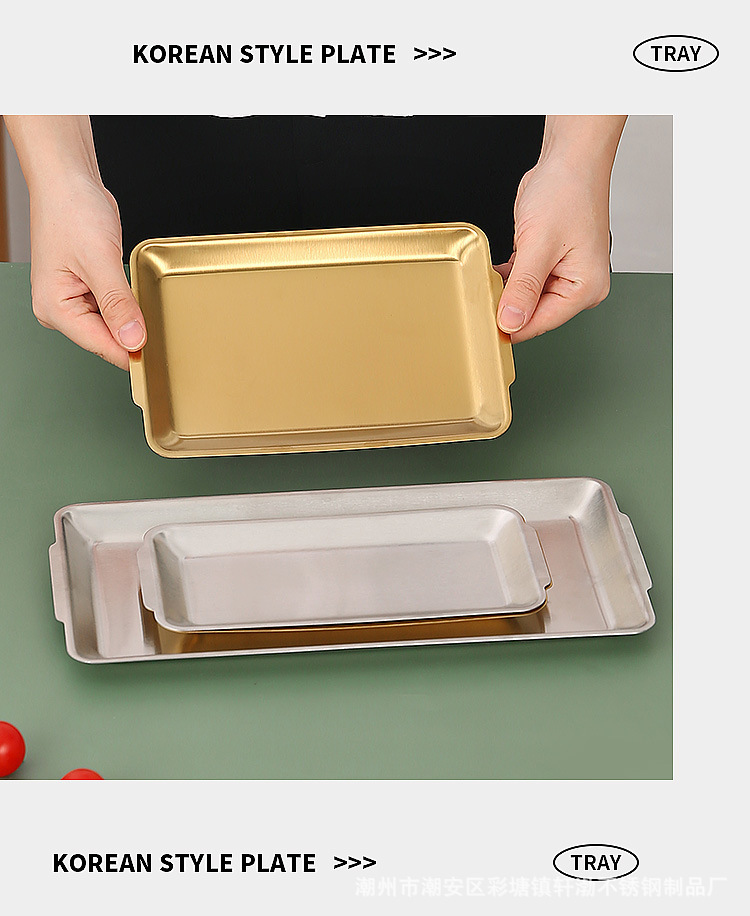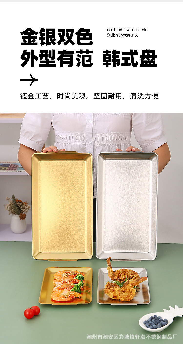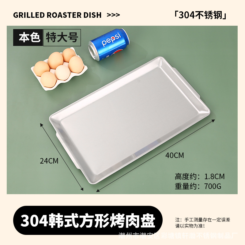 한국식 304 스테인레스 스틸 직사각형 바베큐 접시 상업용 바베큐 접시 스시 접시 골든 트레이 두꺼운 저장 접시스토어 가기