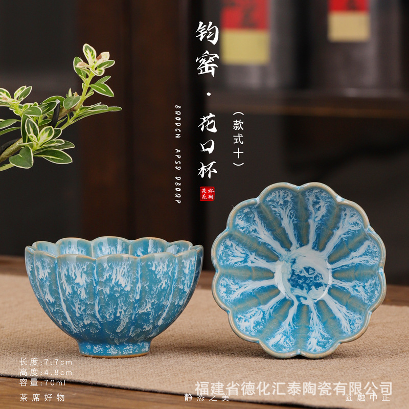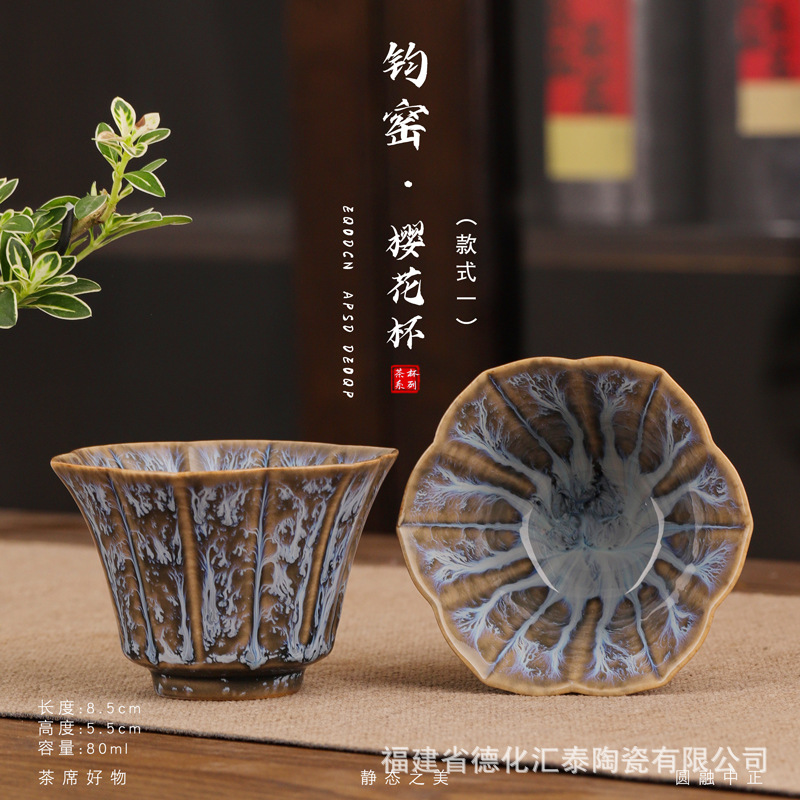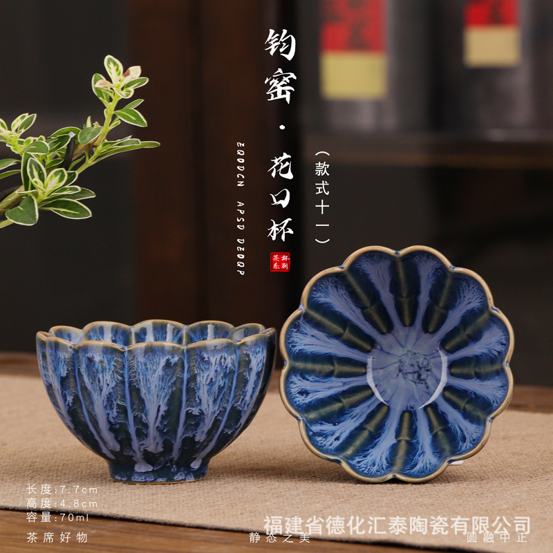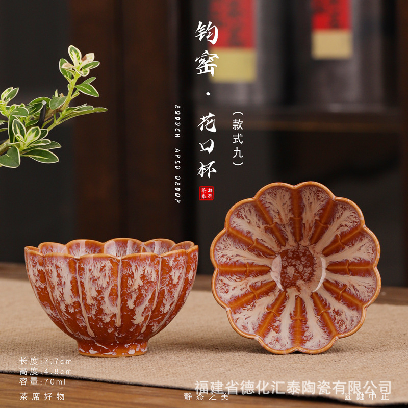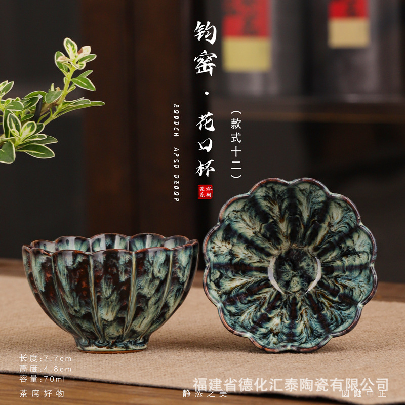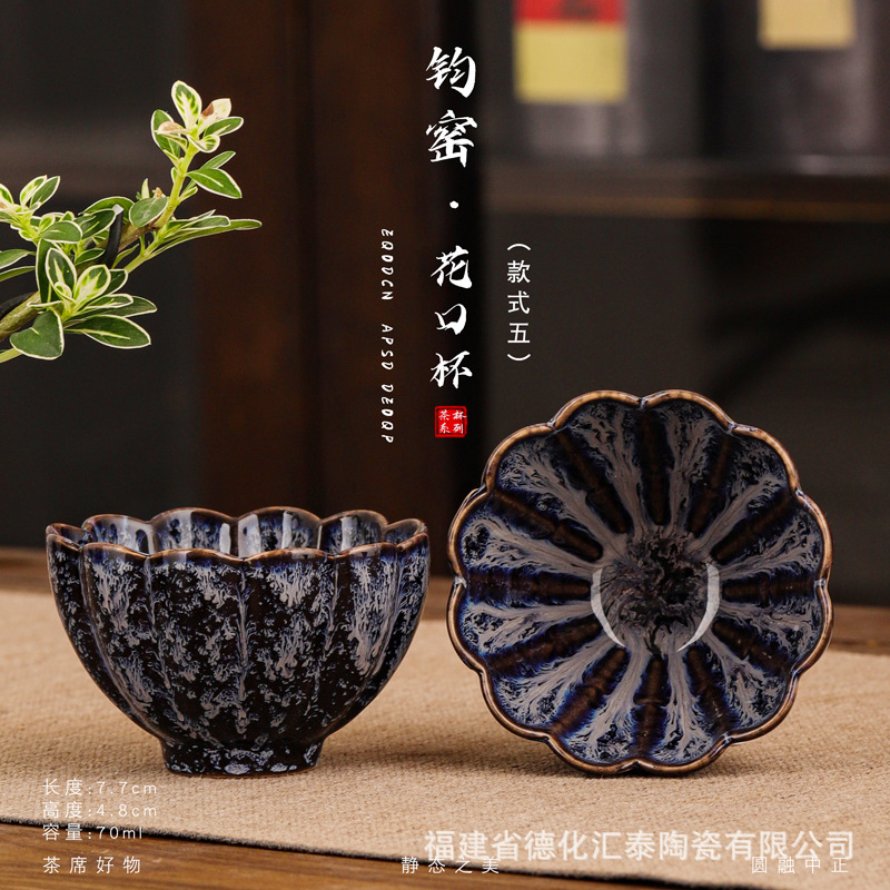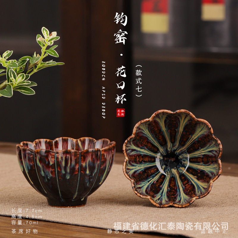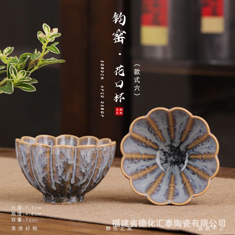 공장 내장 램프 가마 변경 차 컵 세라믹 컵 꽃잎 마스터 컵 차 싱글 컵 세라믹 와이어 드로잉 컵 특수 모양의 차 그릇스토어 가기