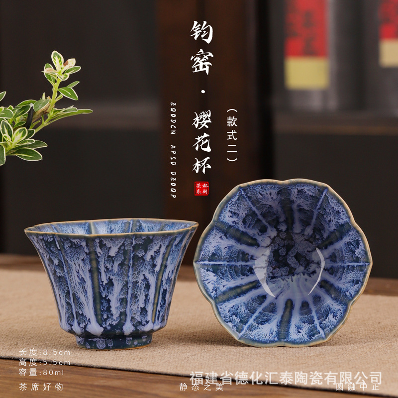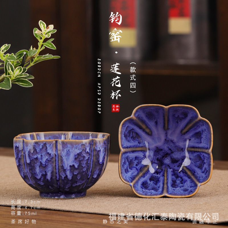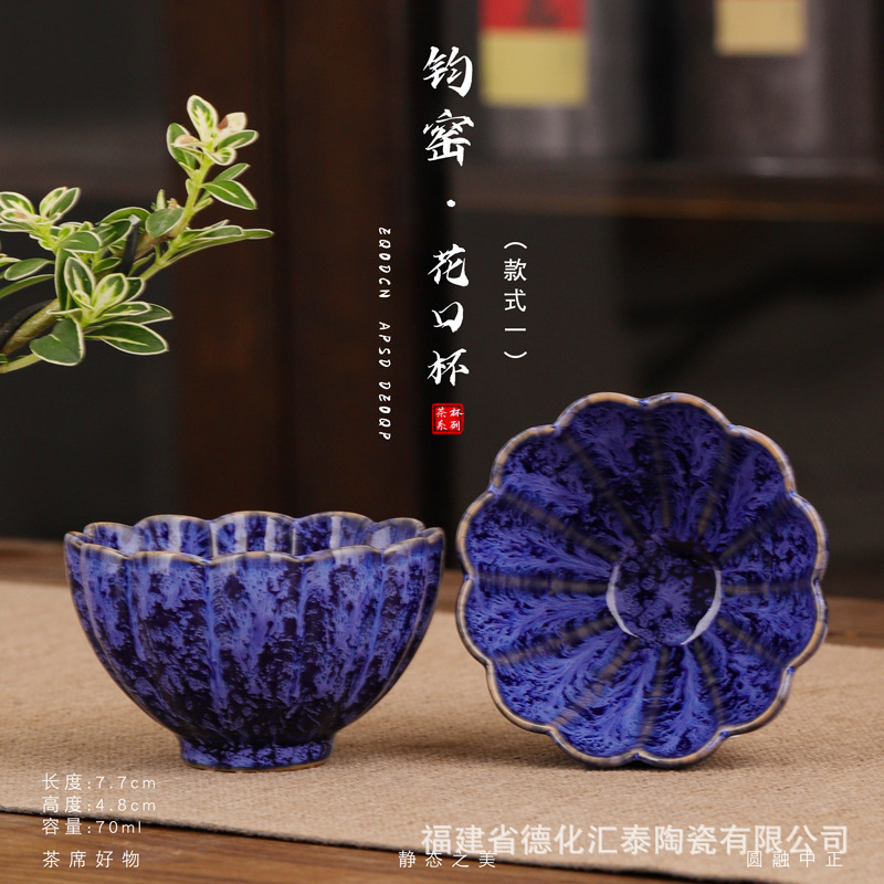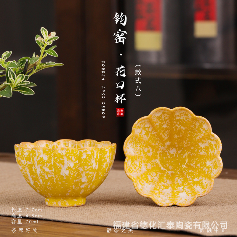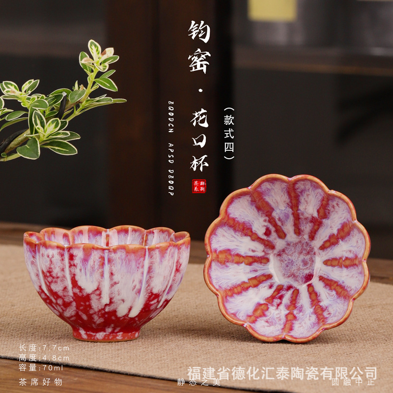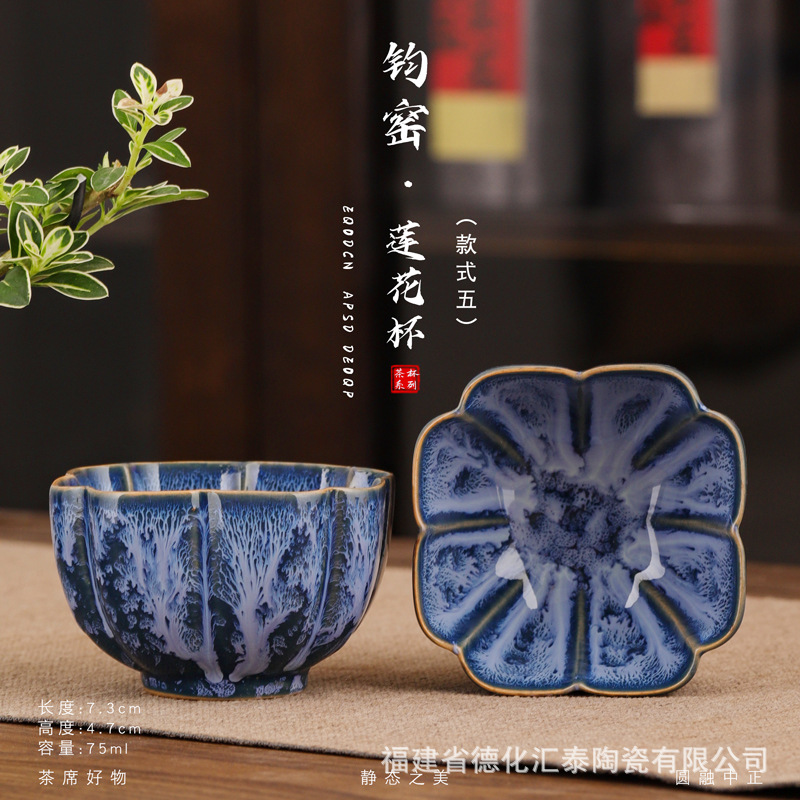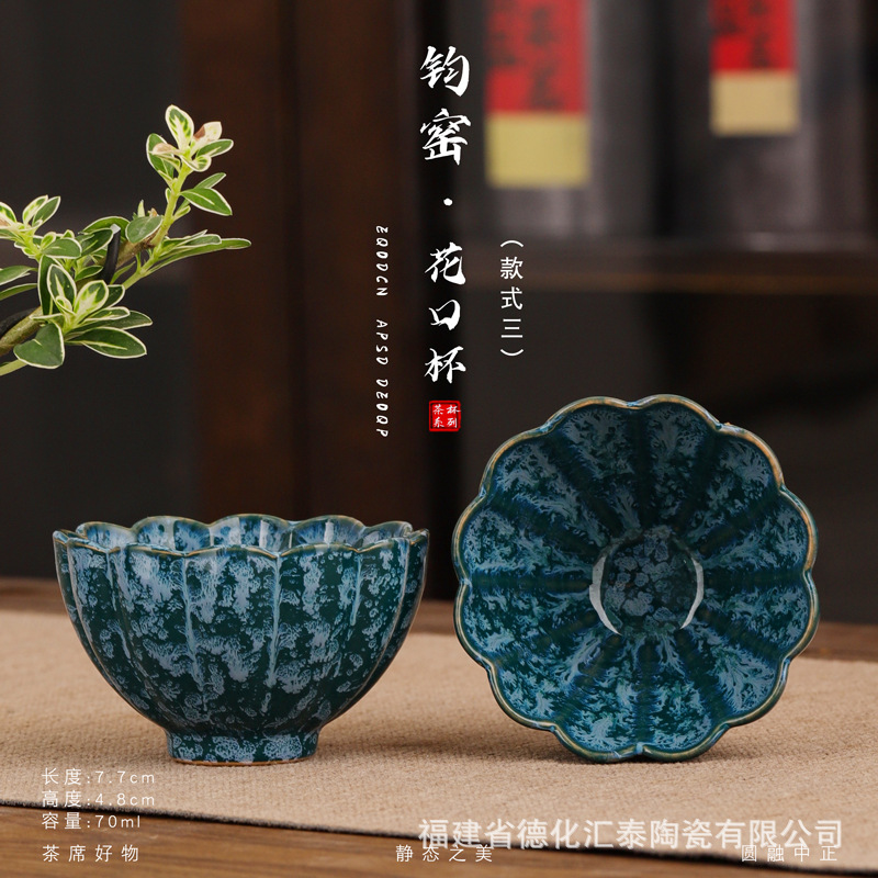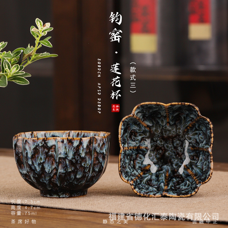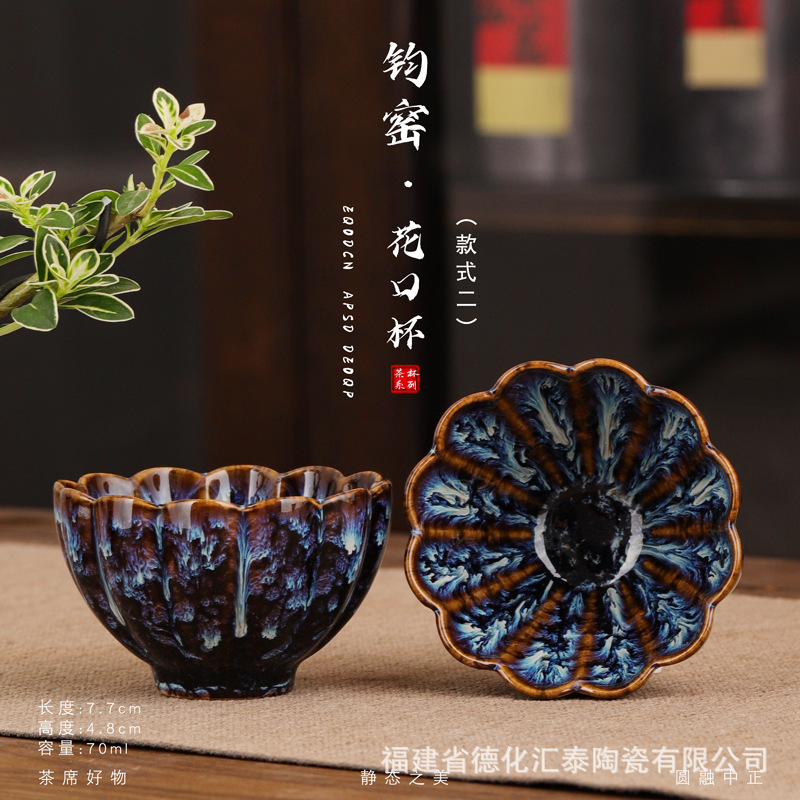 공장 내장 램프 가마 변경 차 컵 세라믹 컵 꽃잎 마스터 컵 차 싱글 컵 세라믹 와이어 드로잉 컵 특수 모양의 차 그릇스토어 가기