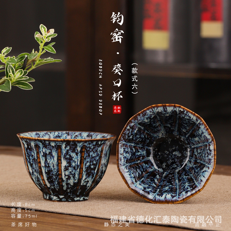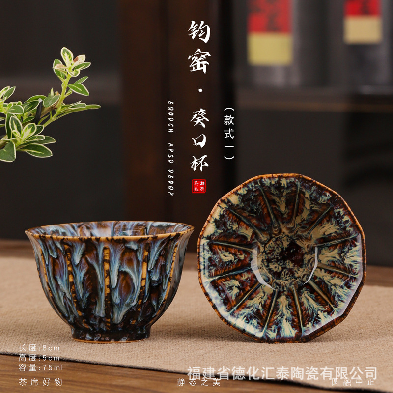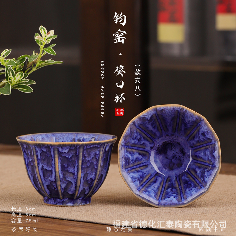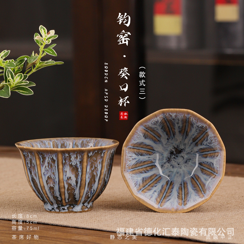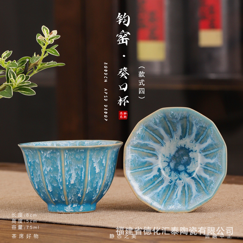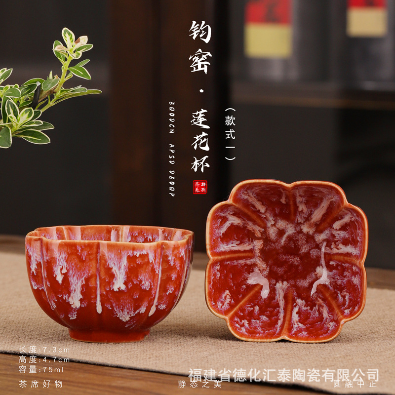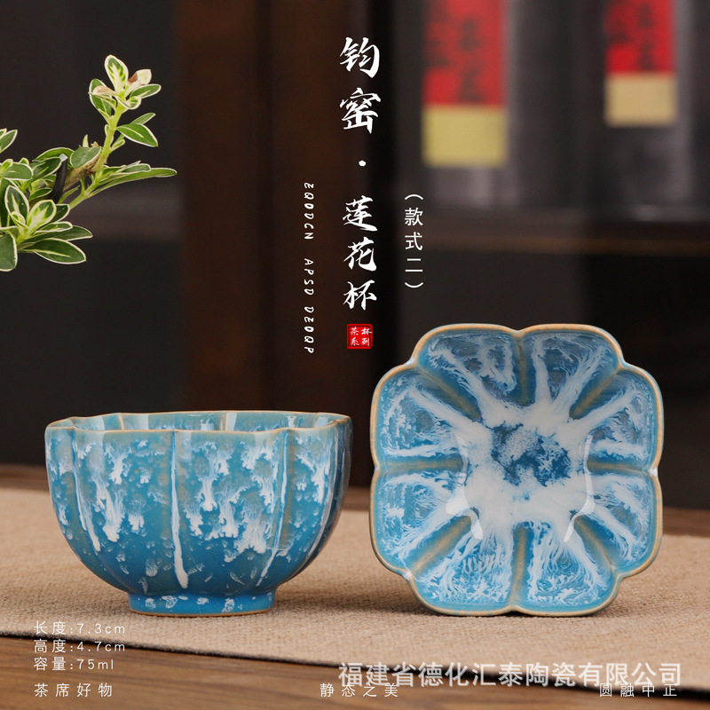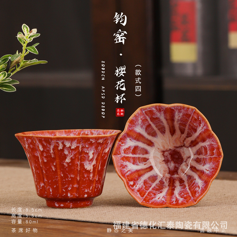 공장 내장 램프 가마 변경 차 컵 세라믹 컵 꽃잎 마스터 컵 차 싱글 컵 세라믹 와이어 드로잉 컵 특수 모양의 차 그릇스토어 가기