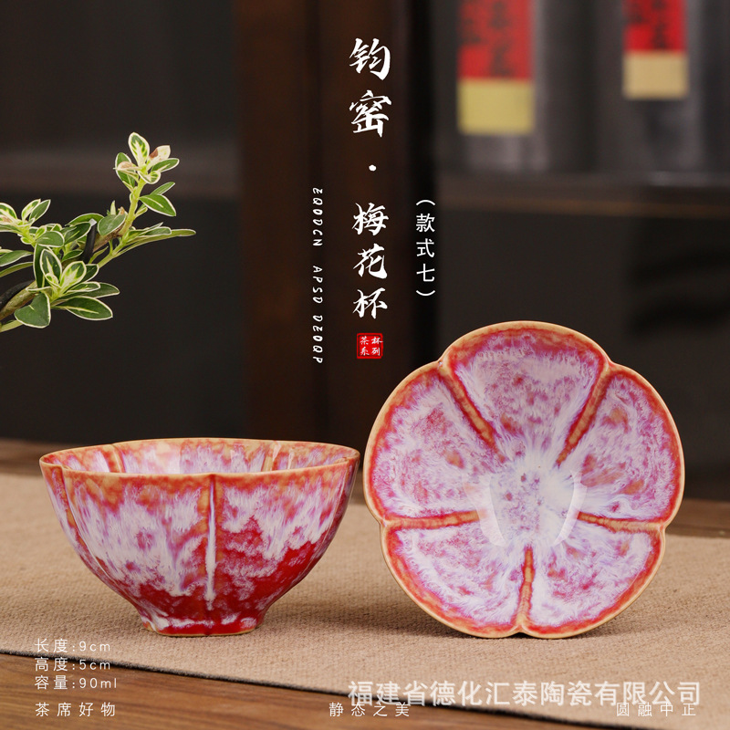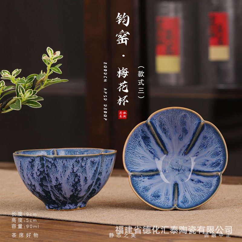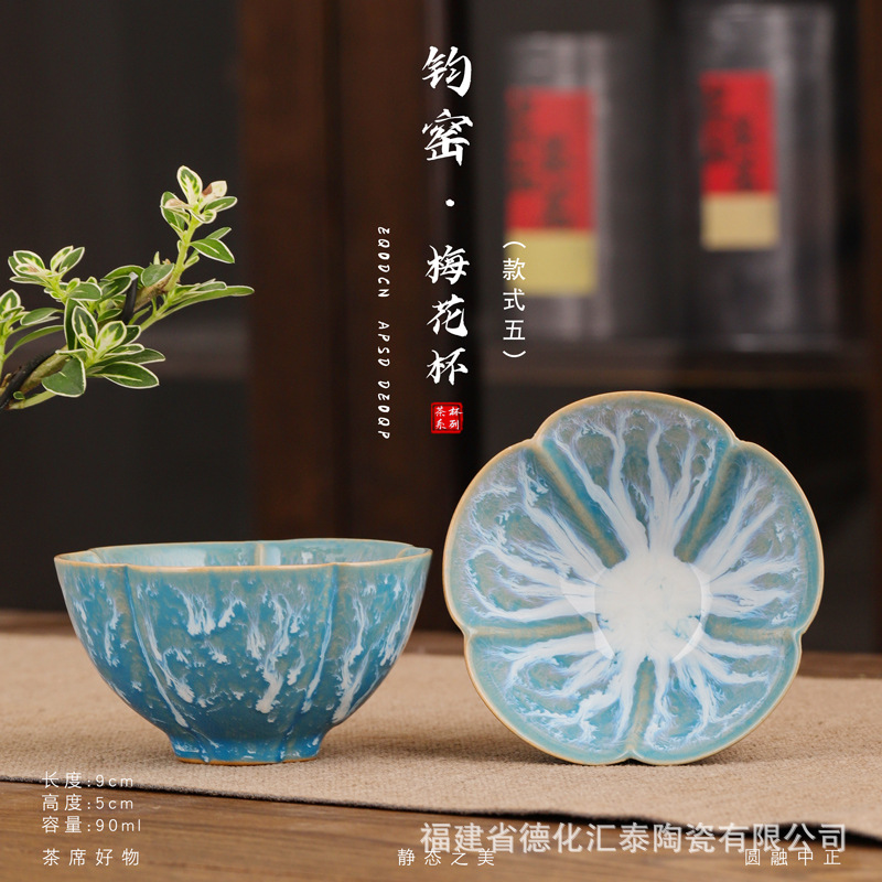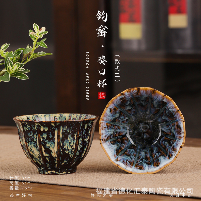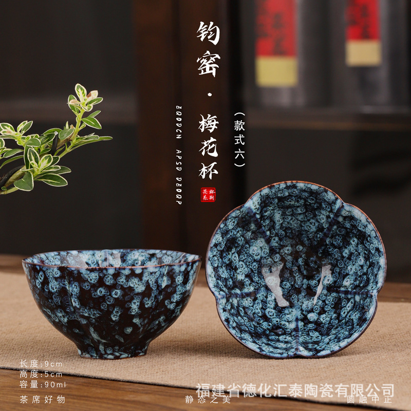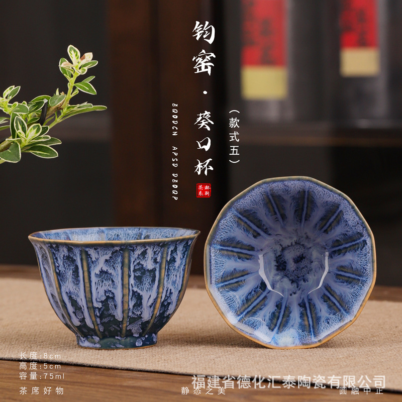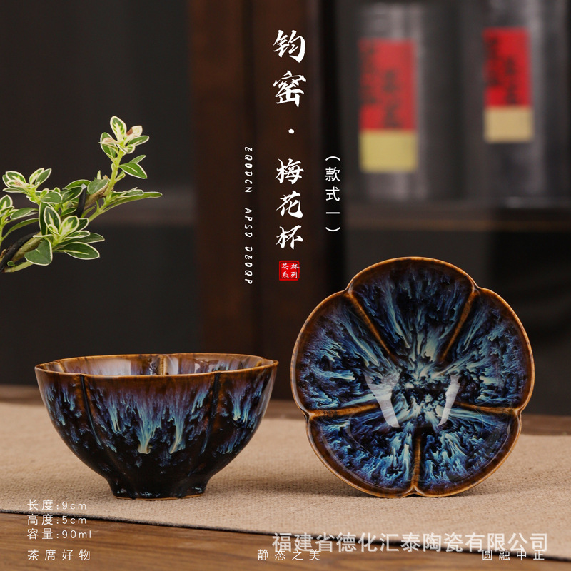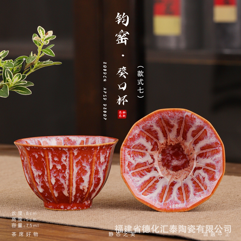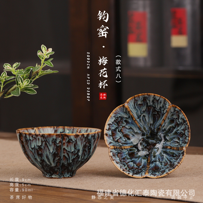 공장 내장 램프 가마 변경 차 컵 세라믹 컵 꽃잎 마스터 컵 차 싱글 컵 세라믹 와이어 드로잉 컵 특수 모양의 차 그릇스토어 가기