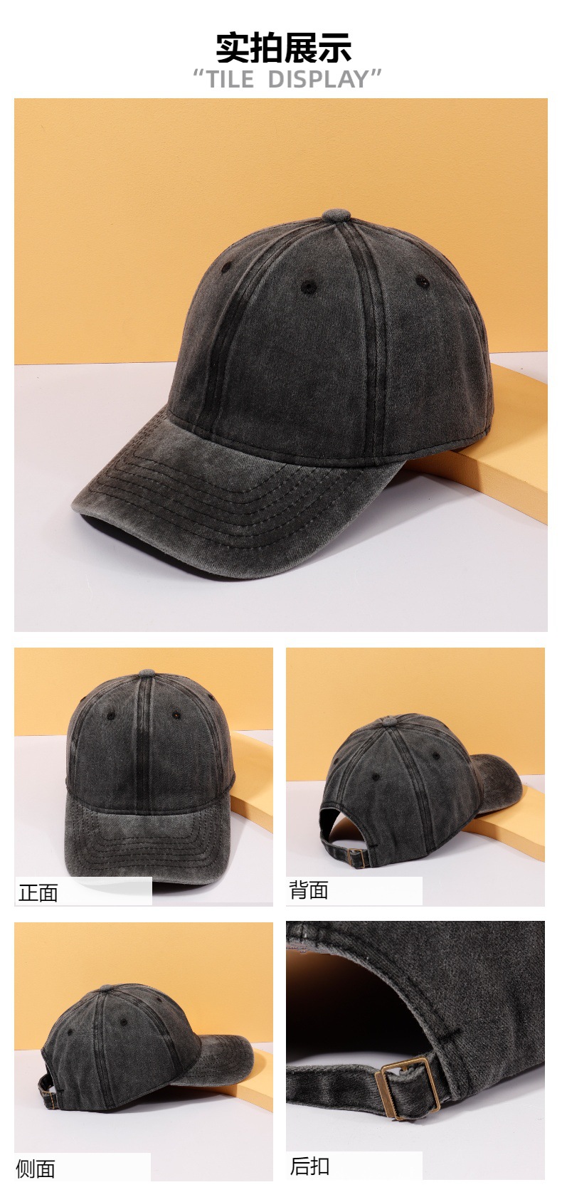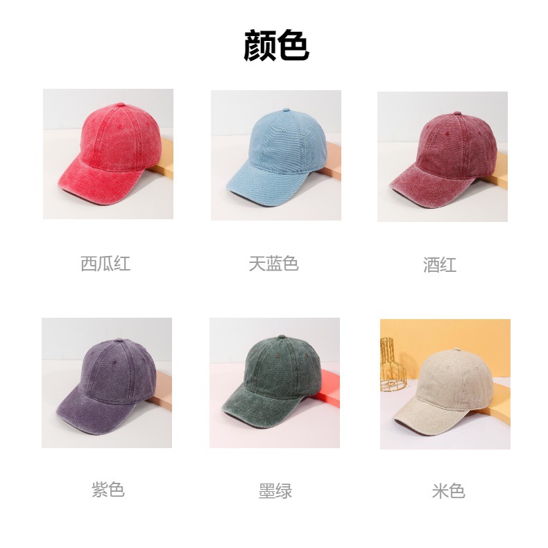 유럽 및 미국 스타일의 워싱 및 빈티지 처리된 소프트탑 레트로 야구 모자, 차양 기능이 있는 심플한 디자인의 블랙 캡, 로고 추가 가능스토어 가기