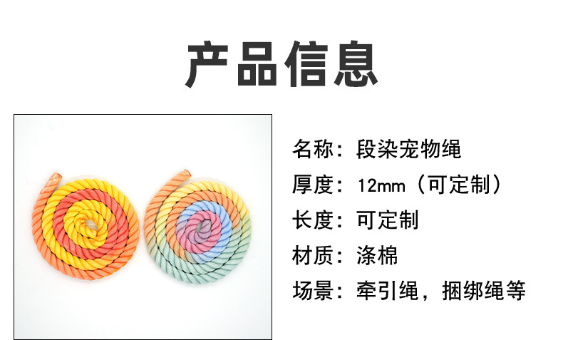 12mm 세그먼트 염색 강아지 목줄 레인보우 러닝 애완동물 목줄 그라데이션 색상 삼중 꼬임 줄 애완동물 목줄 산책줄