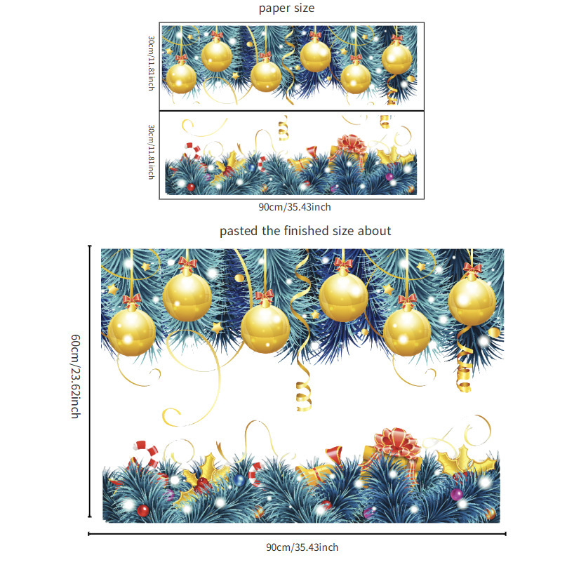 Yiyao 새로운 크리스마스 트리 벨 벽 스티커 쇼핑몰 창 유리 크리스마스 이동식 장식 방습 자체 접착 스티커스토어 가기