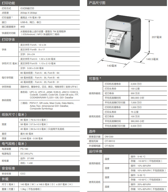 엡손 TM-L100 바닥없는 종이 열 라벨 프린터 우유 차 영수증 기계